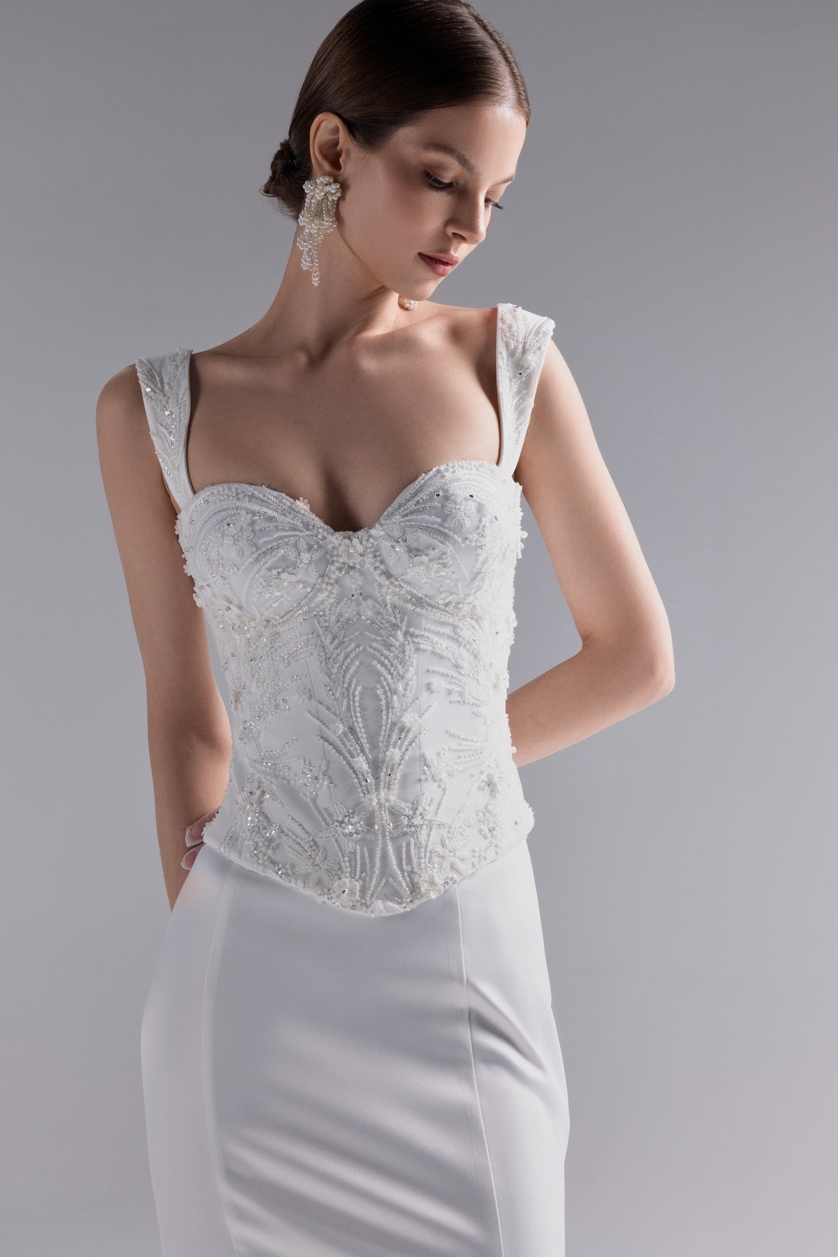 Two-Piece Wedding Dress Diva | Satin Skirt & Beaded Lace Corset