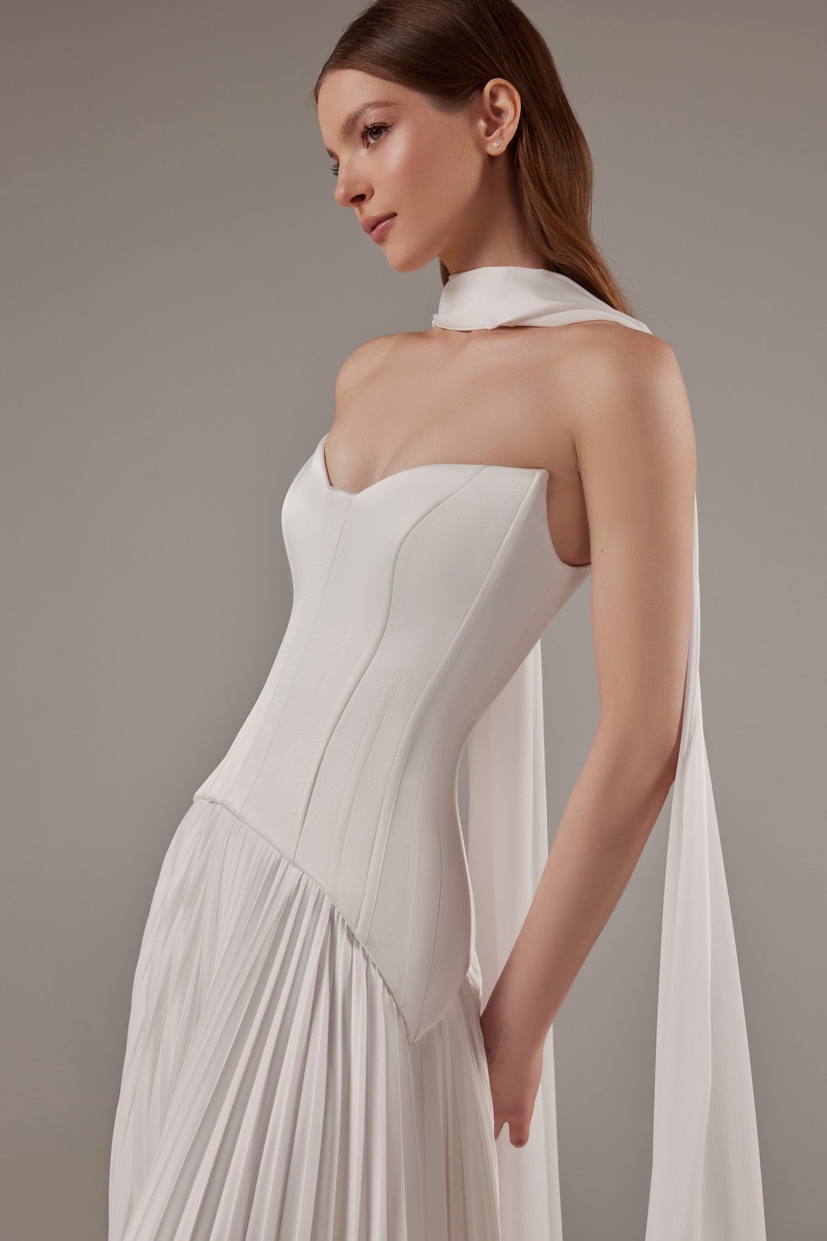 Pleated Skirt & Mikado Strapless Corset | Modern Minimalist Wedding Dress - Bridal Set Ellora