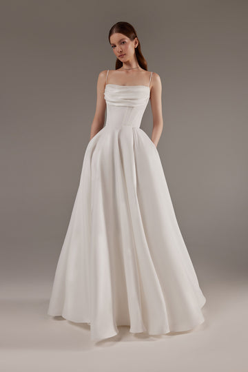 Satin Wedding Dress With Basque Waist And Square Neck Casia