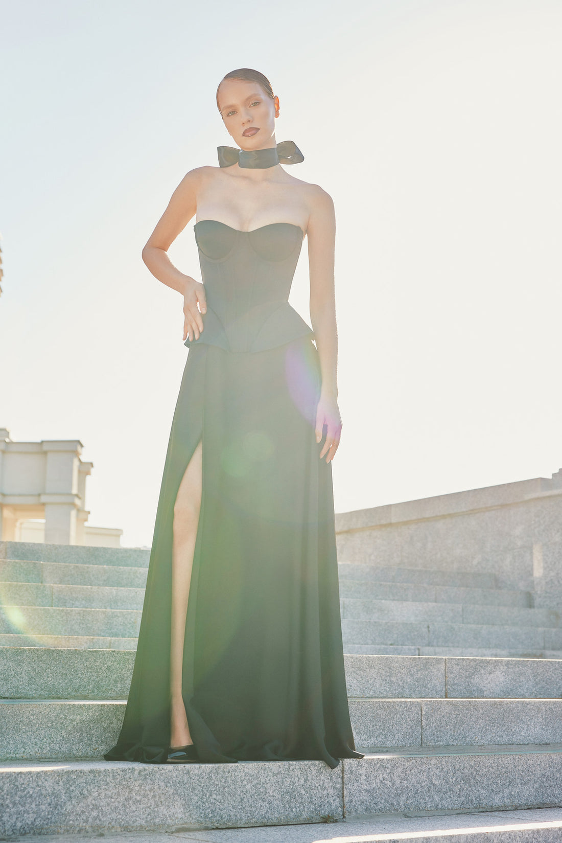 Two Piece Formal Dress Aurelia | Silk A-line Skirt With Strapless Peplum Corset