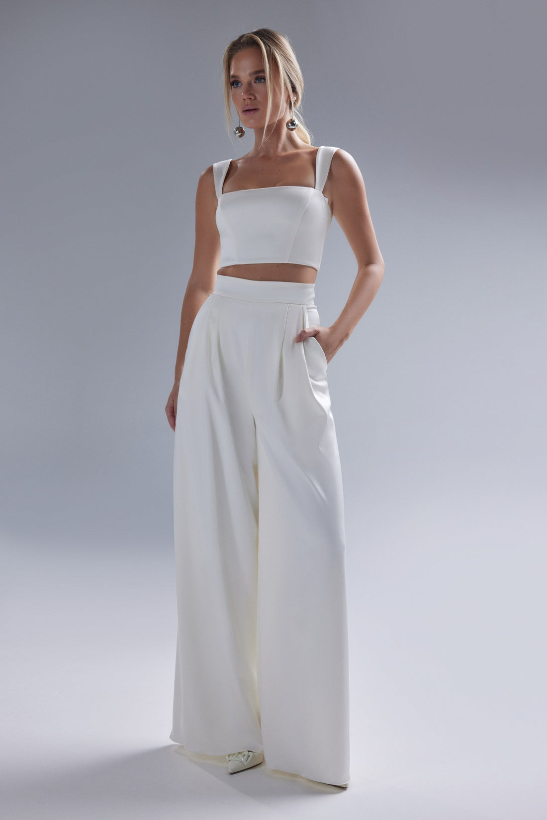 Bridal Satin Palazzo Pants With Pockets Andrea