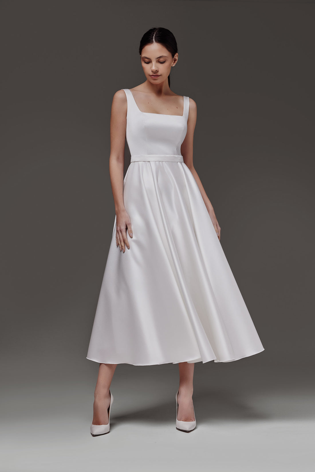 Satin Midi Wedding Dress With Square Neckline Vlada midi