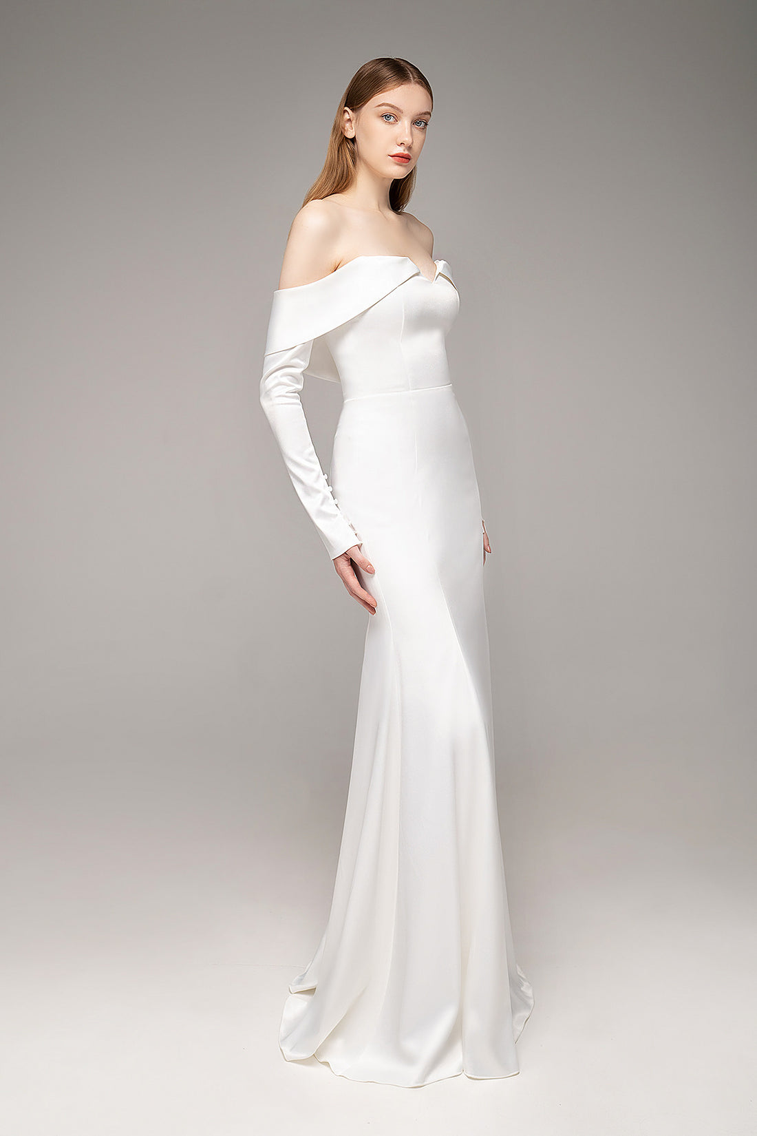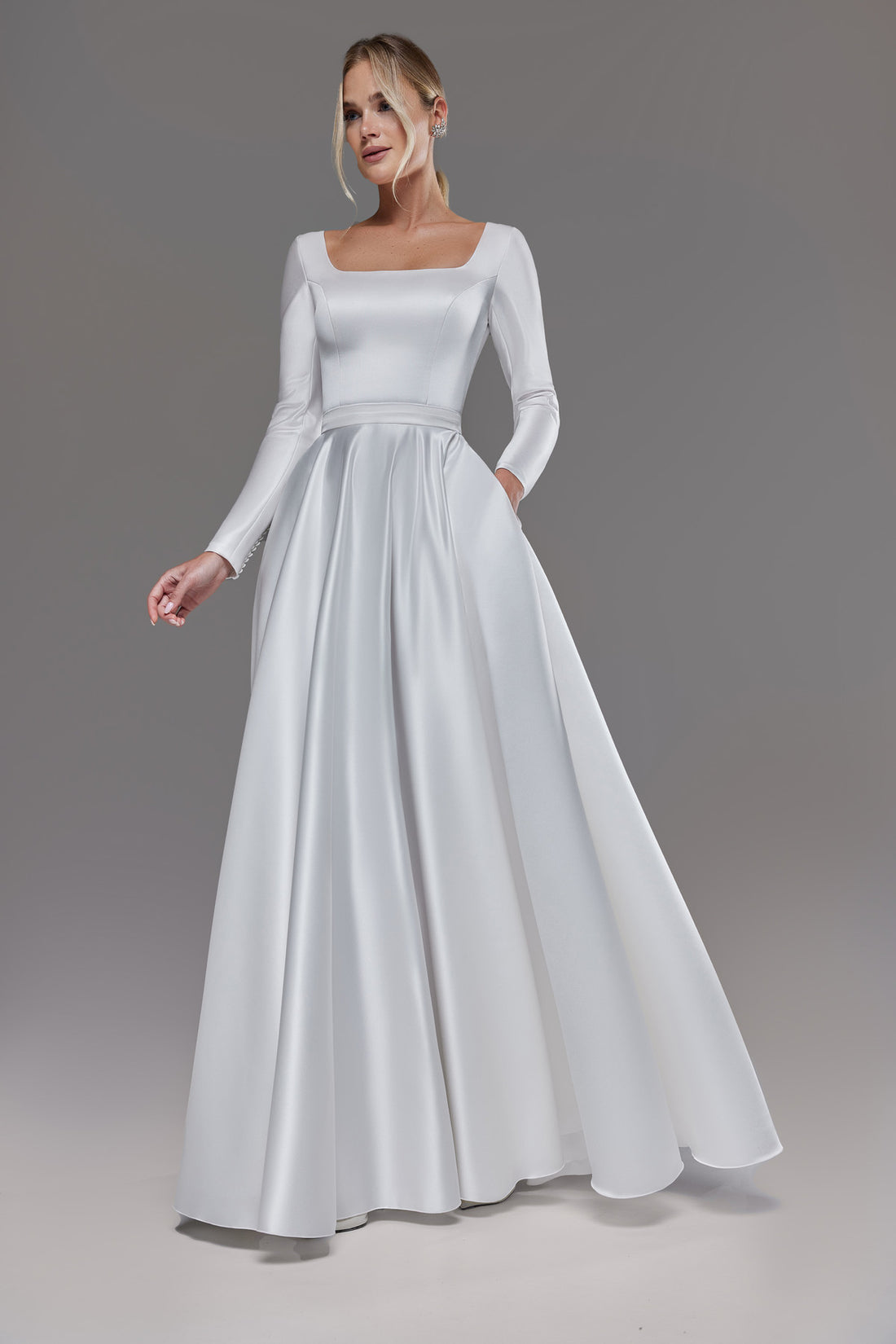 Classy Satin Wedding Dress With Long Sleeves Elizabeth