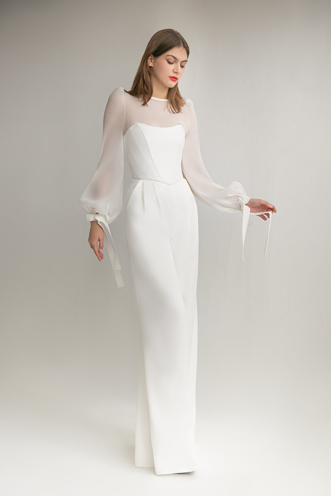 Modern Bridal Outfit Wedding Suit With Palazzo Pants And Sleeves Alex