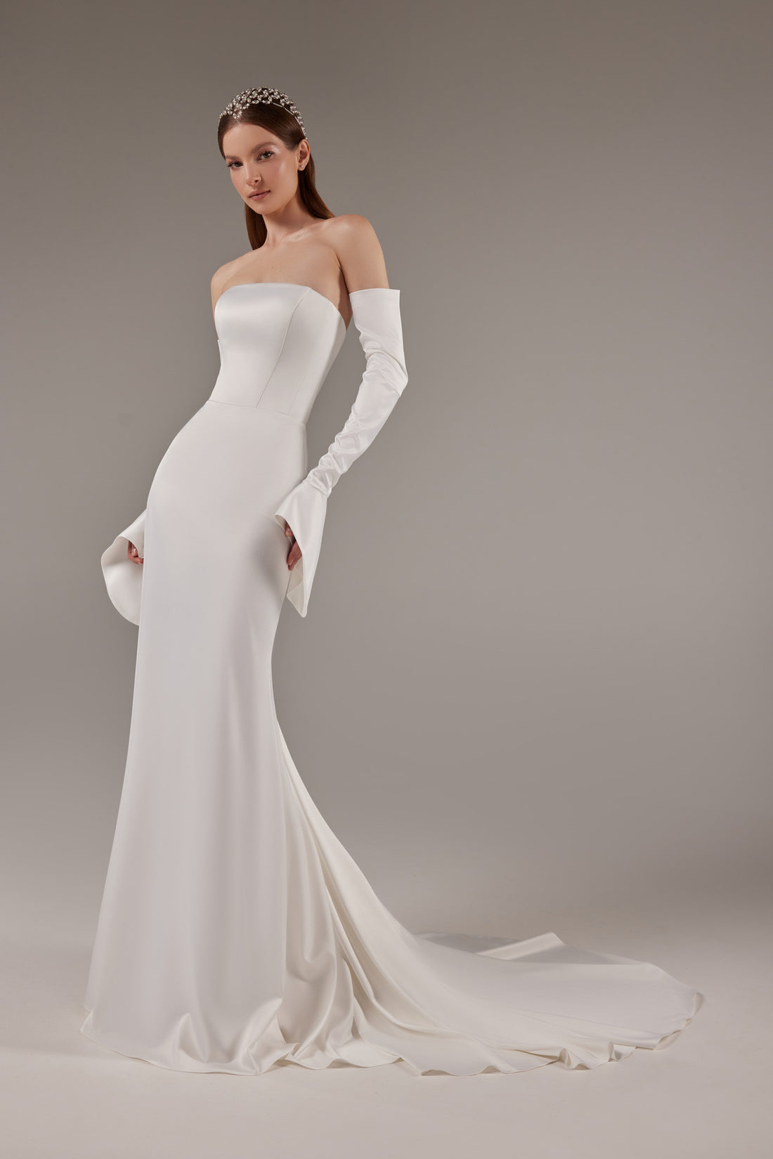 Satin Corset Wedding Dress Serena with Detachable sleeves and Chapel train
