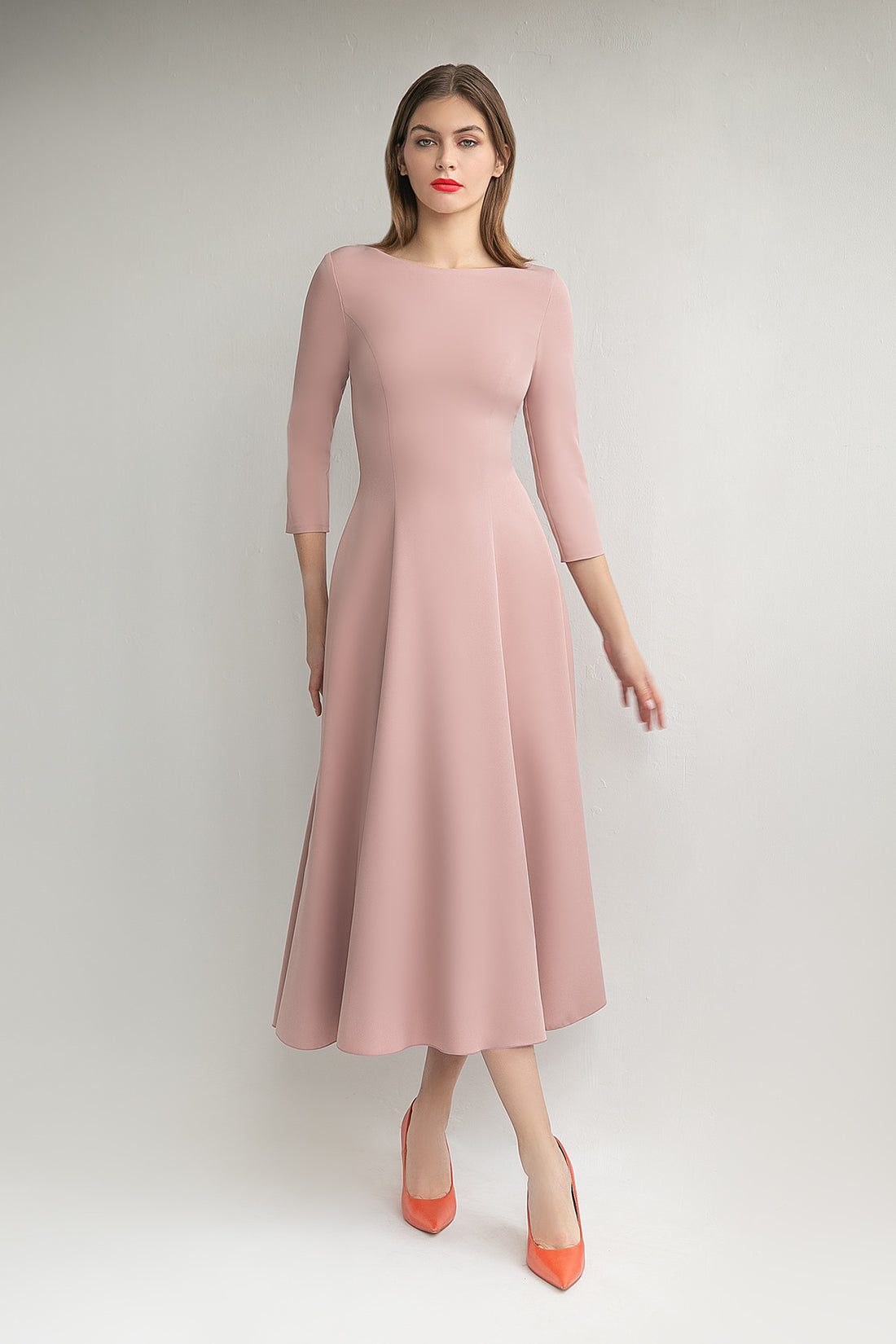 Formal Crepe Tea Length Long Sleeve Dress Viola
