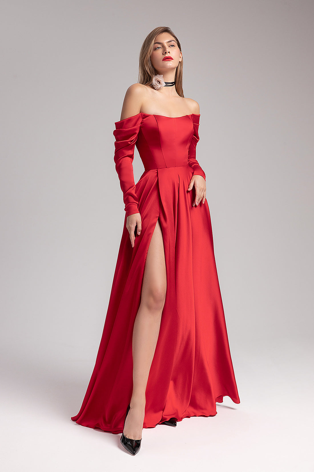 Off-Shoulder Red Maxi Evening Gown Tiana