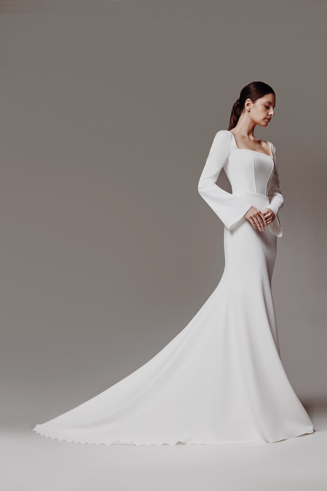 Crepe Fit & Flare Silhouette Wedding Dress With Long Long Sleeves Roksolana