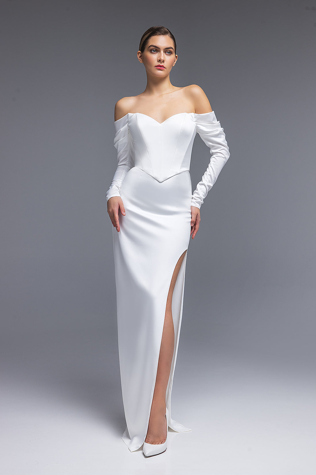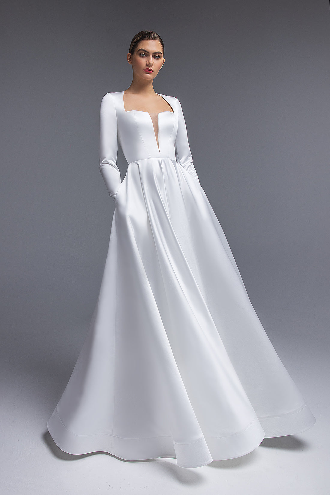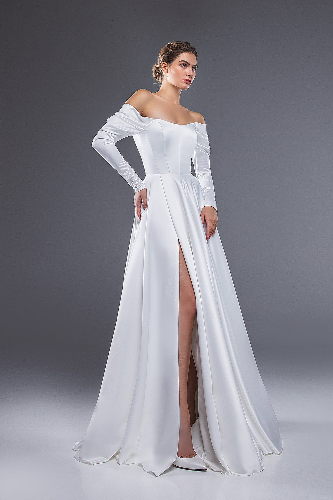 Classy Satin Wedding Dress With Long Sleeves Elizabeth