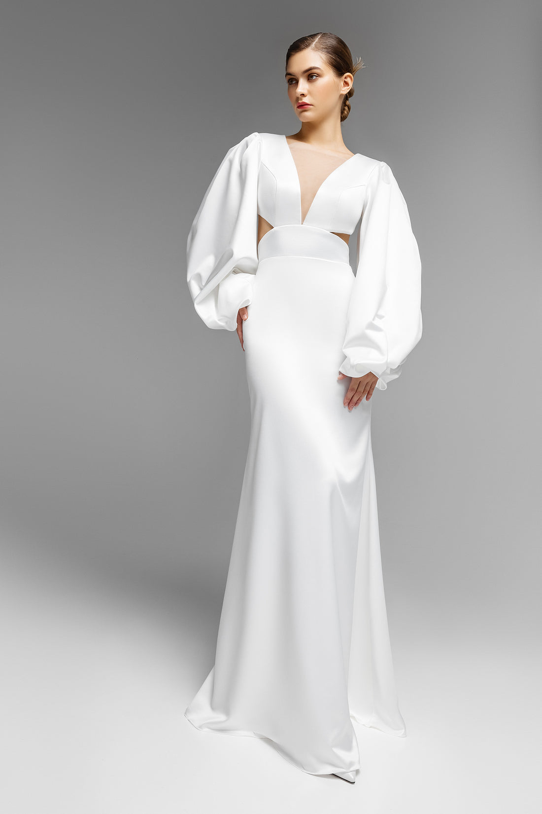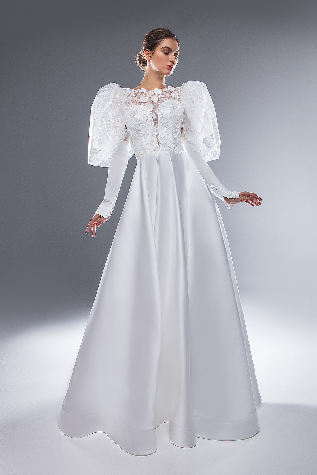 Satin Wedding Dress with Long Puff Sleeves Lucelia