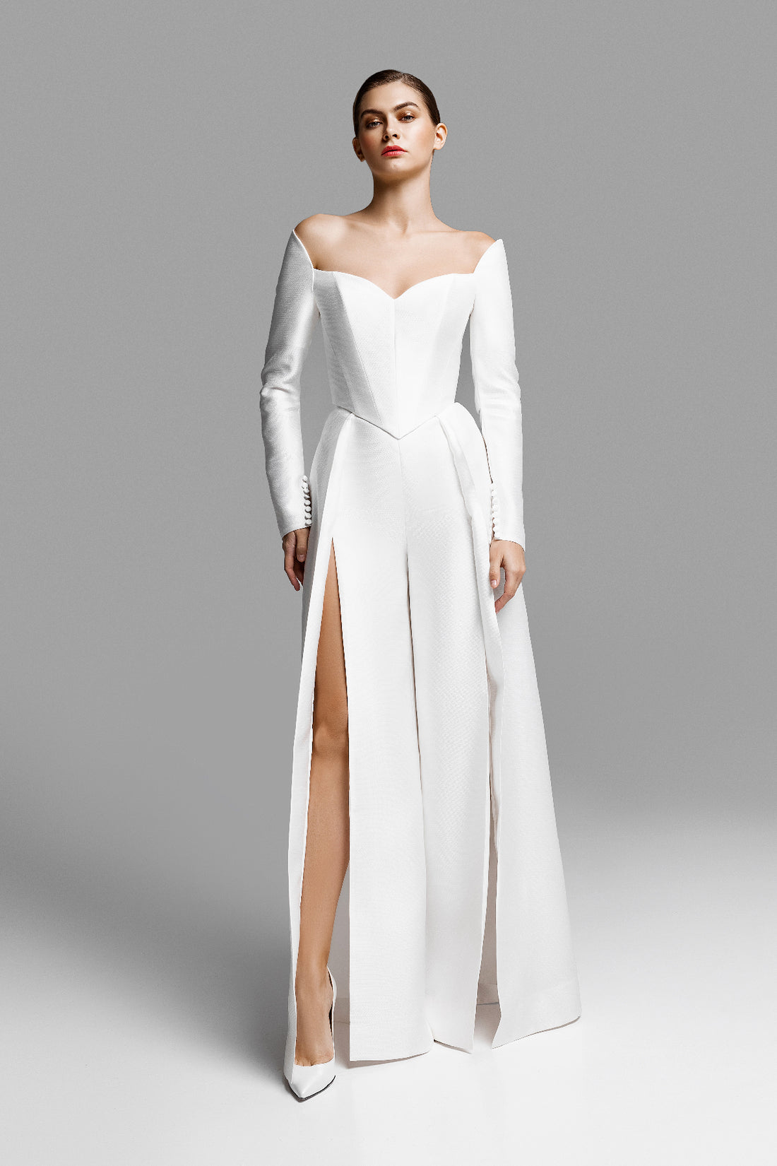 Bridal Palazzo Pants With Long Sleeve Corset Top Roxana