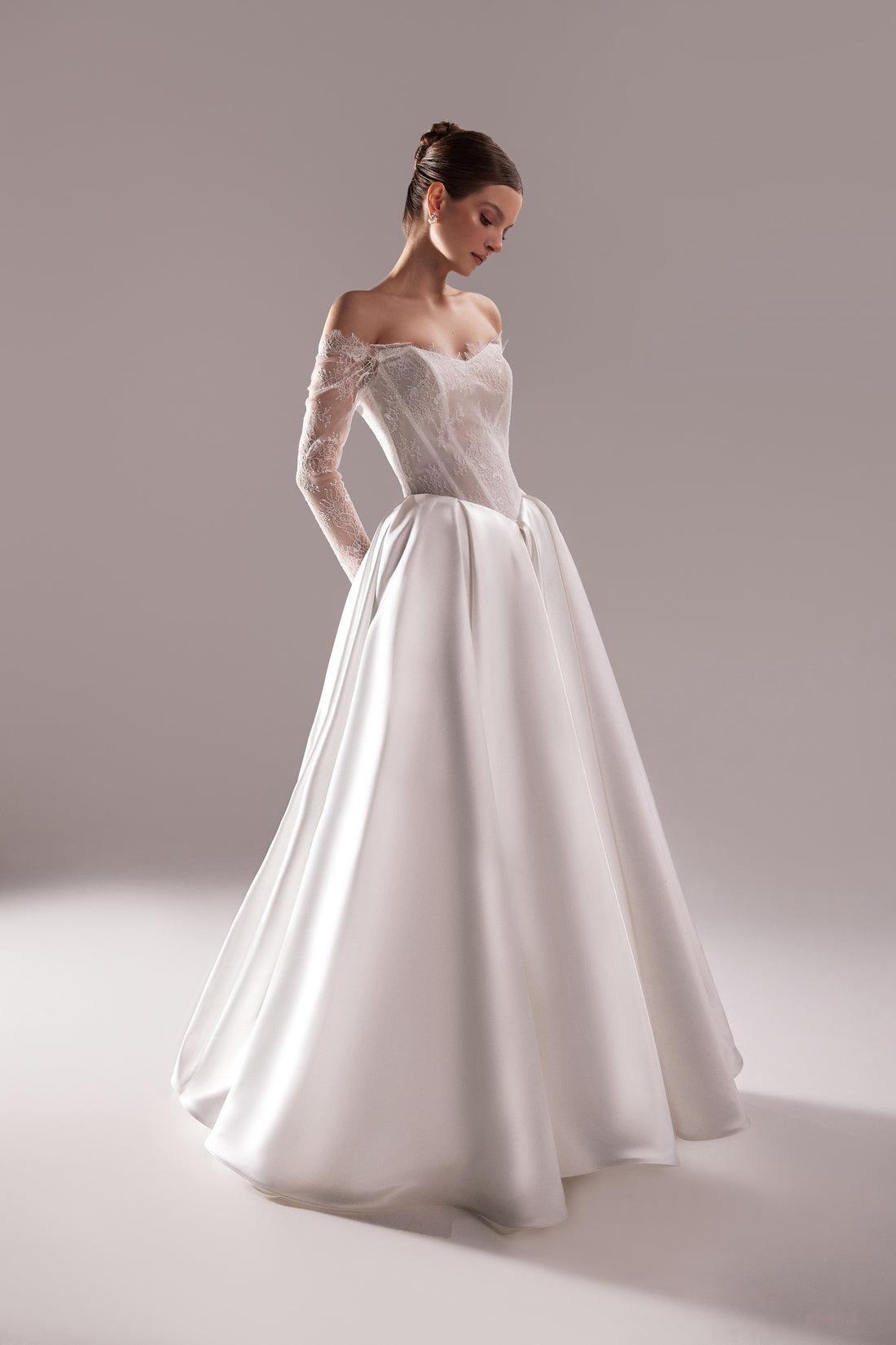 Satin & Lace Wedding Dress Evelyn with Detachable Sleeves and Cathedral Train | Ball Gown Classy Wedding Dress