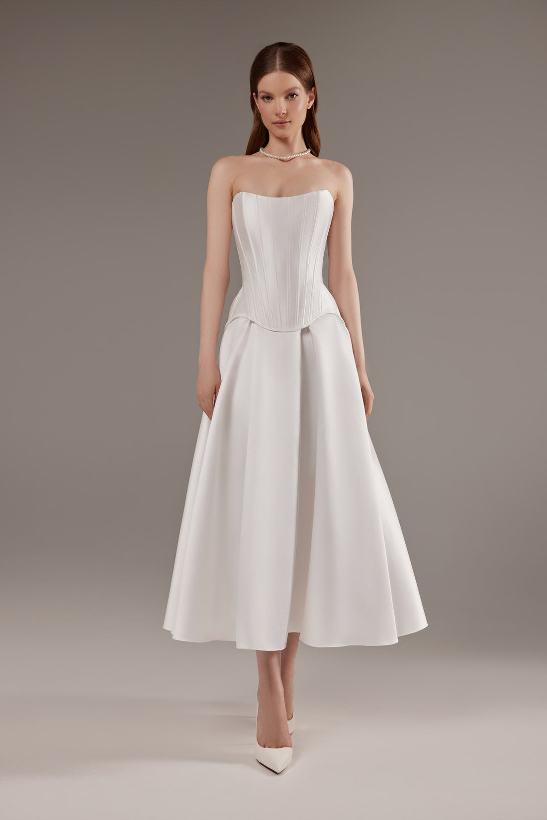 Satin White Corset Wedding Gown Tori | Two-Piece A-Line Dress with Train