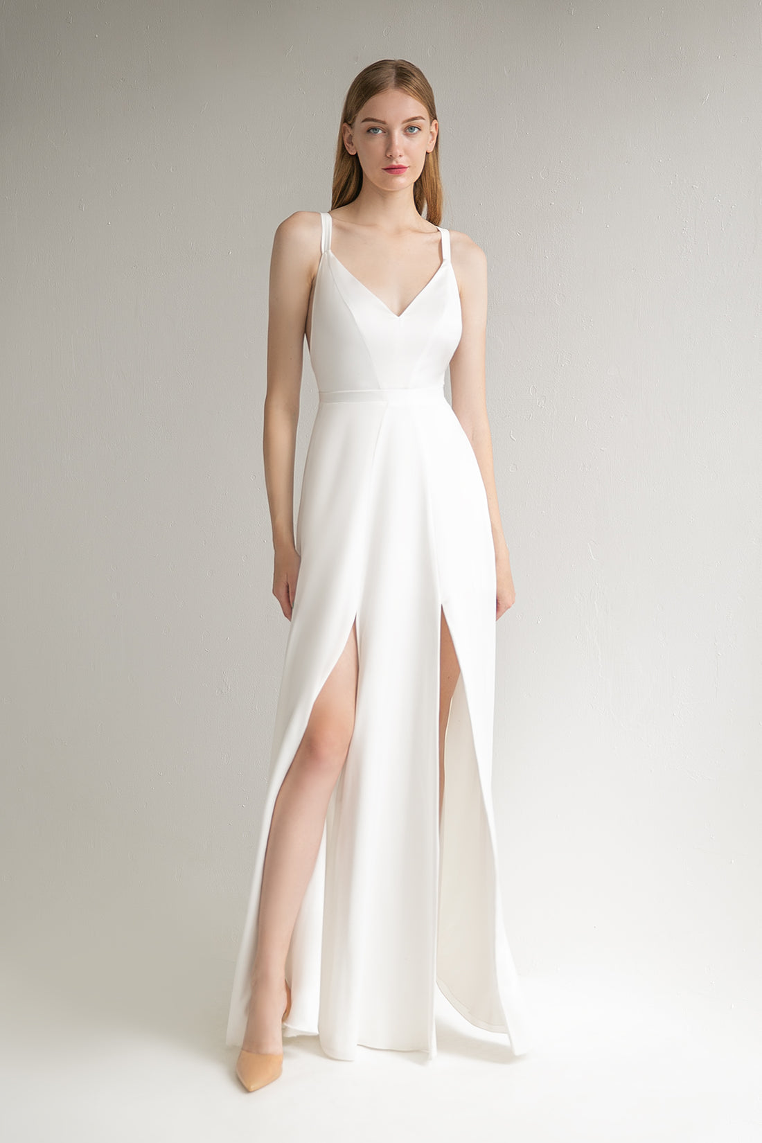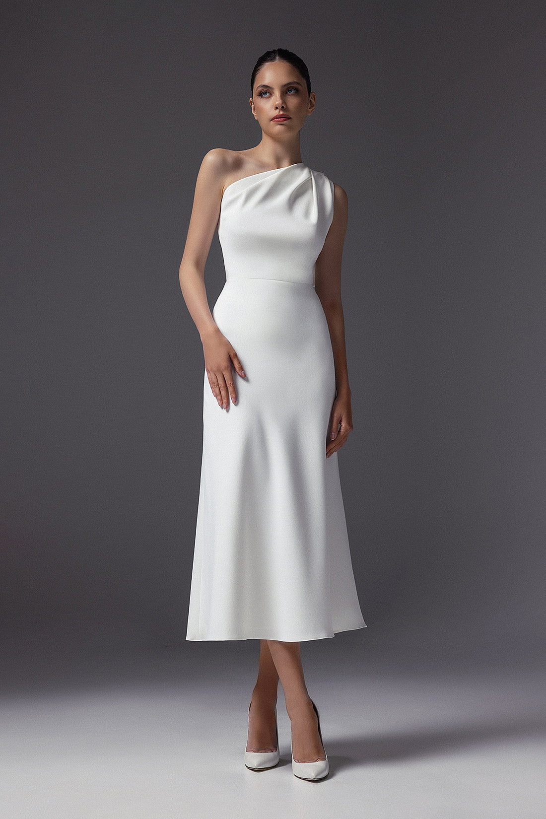 Crepe One Shoulder Minimalist Wedding Dress Julia midi