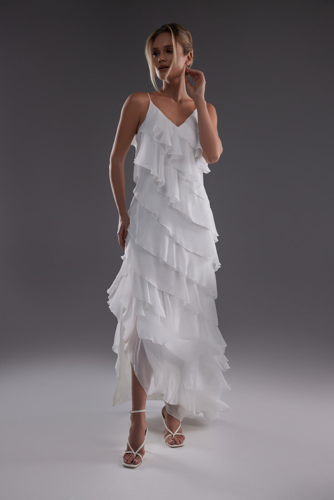 Simple Chiffon Sheath Open Back Wedding Dress With Ruffles Susanna