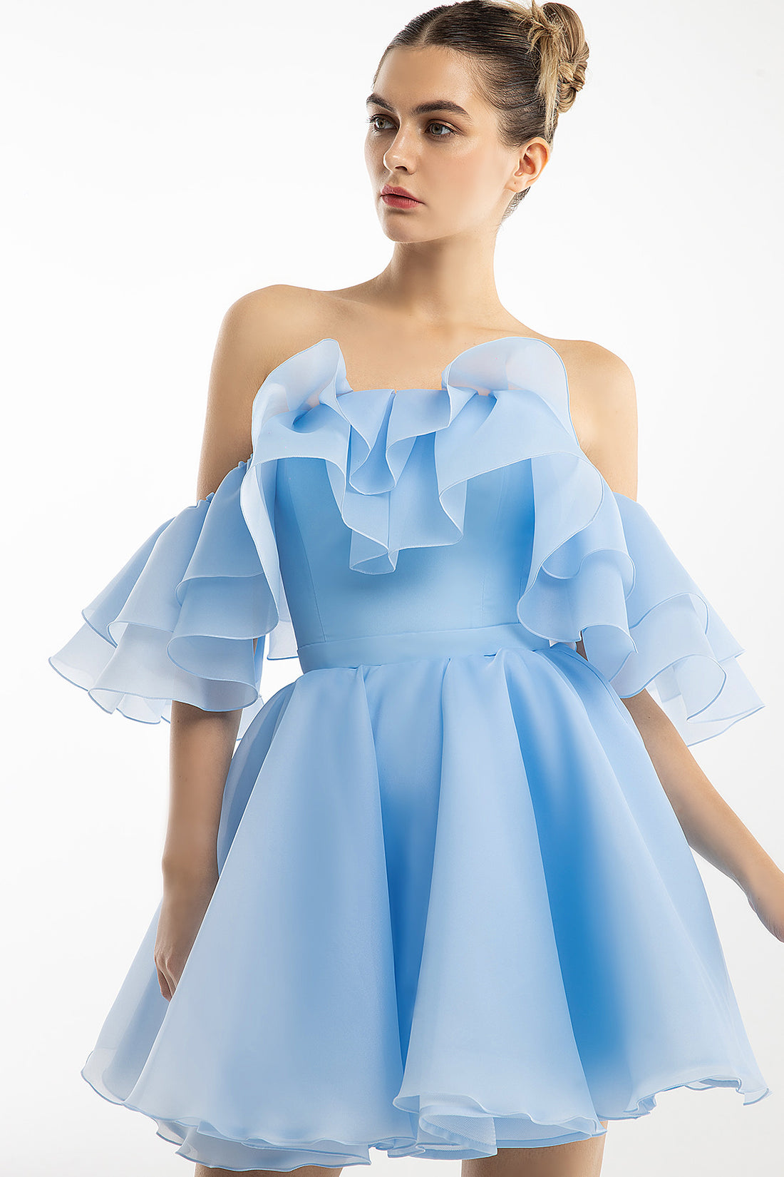Satin Short Evening Dress With Voluminous Skirt Malika