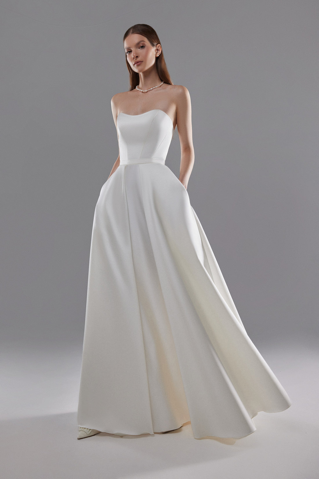 A-Line White Satin Wedding Dress Lizzie | Strapless Corset Gown