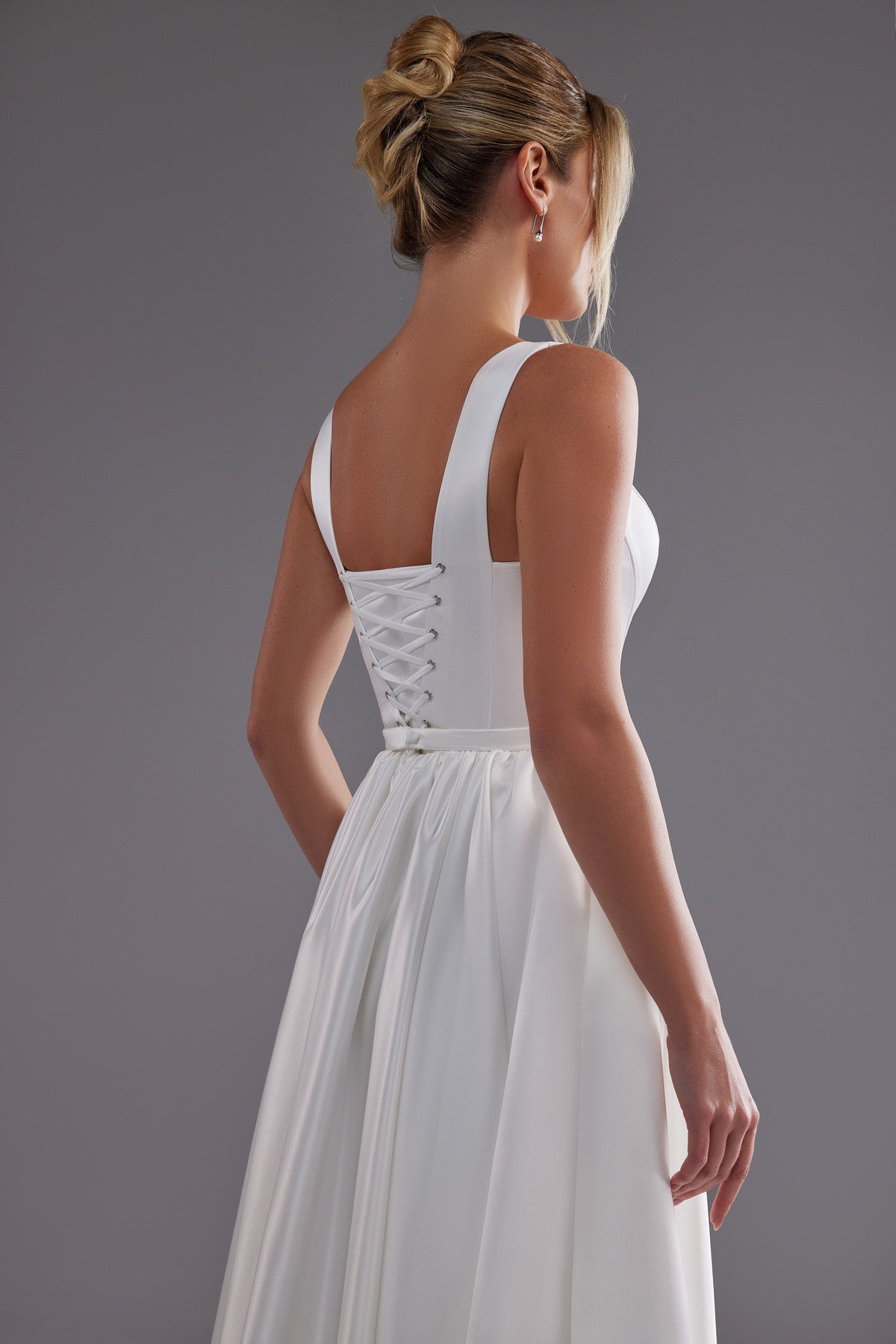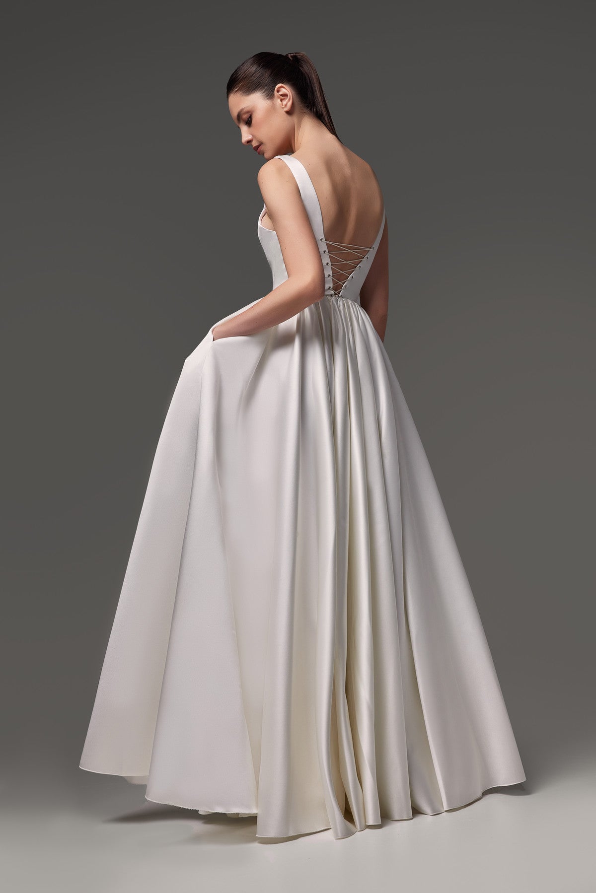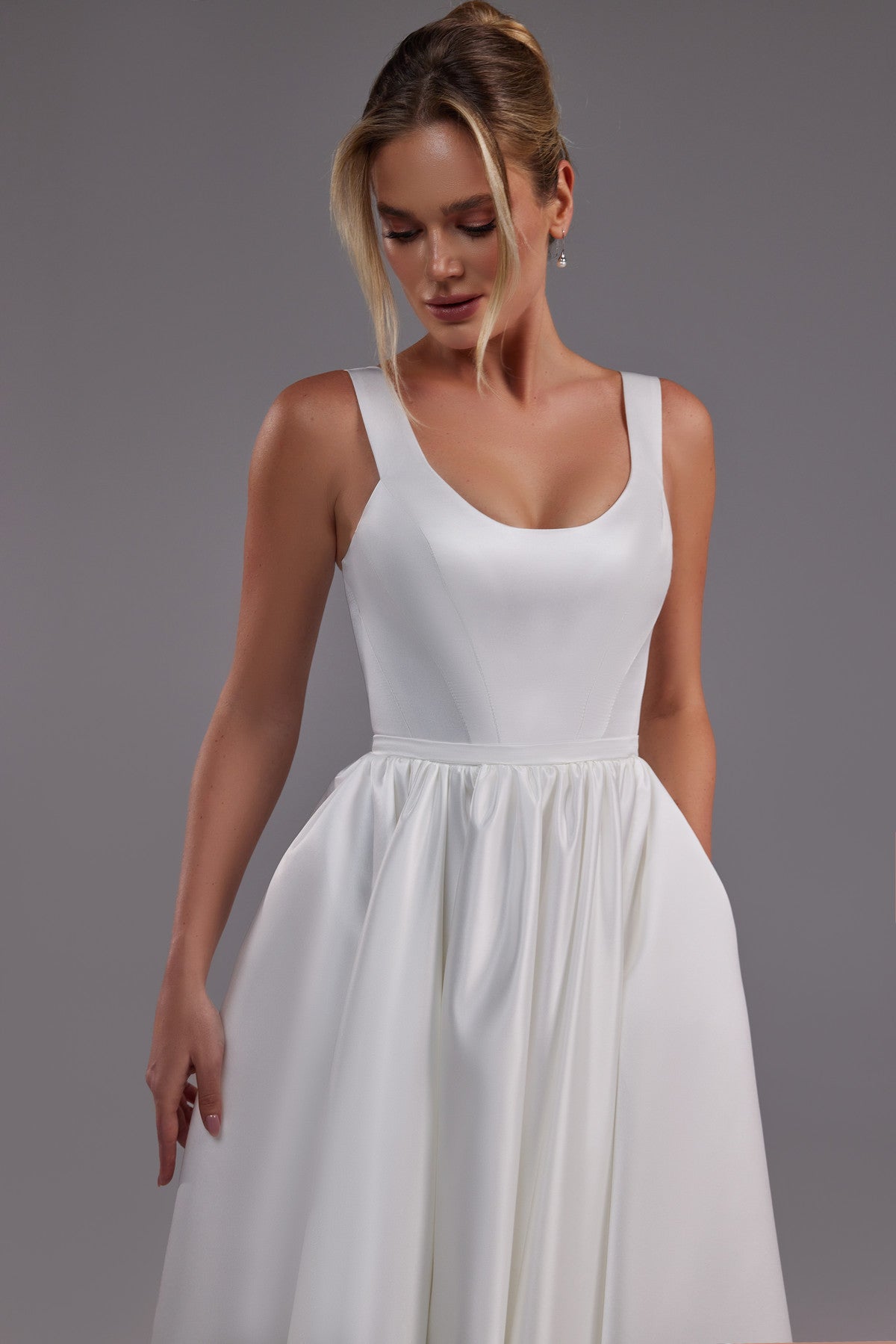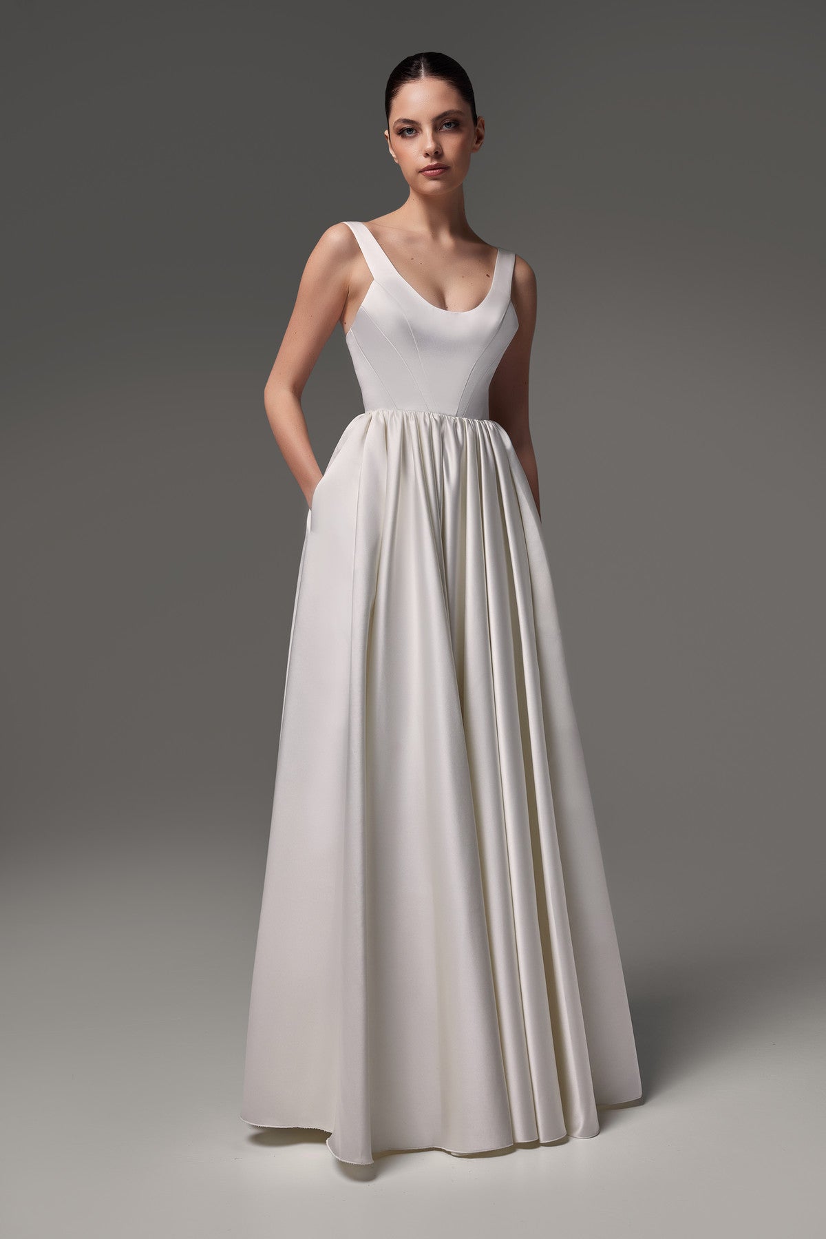 Long Satin Wedding Dress With Scoop Neckline Barbara