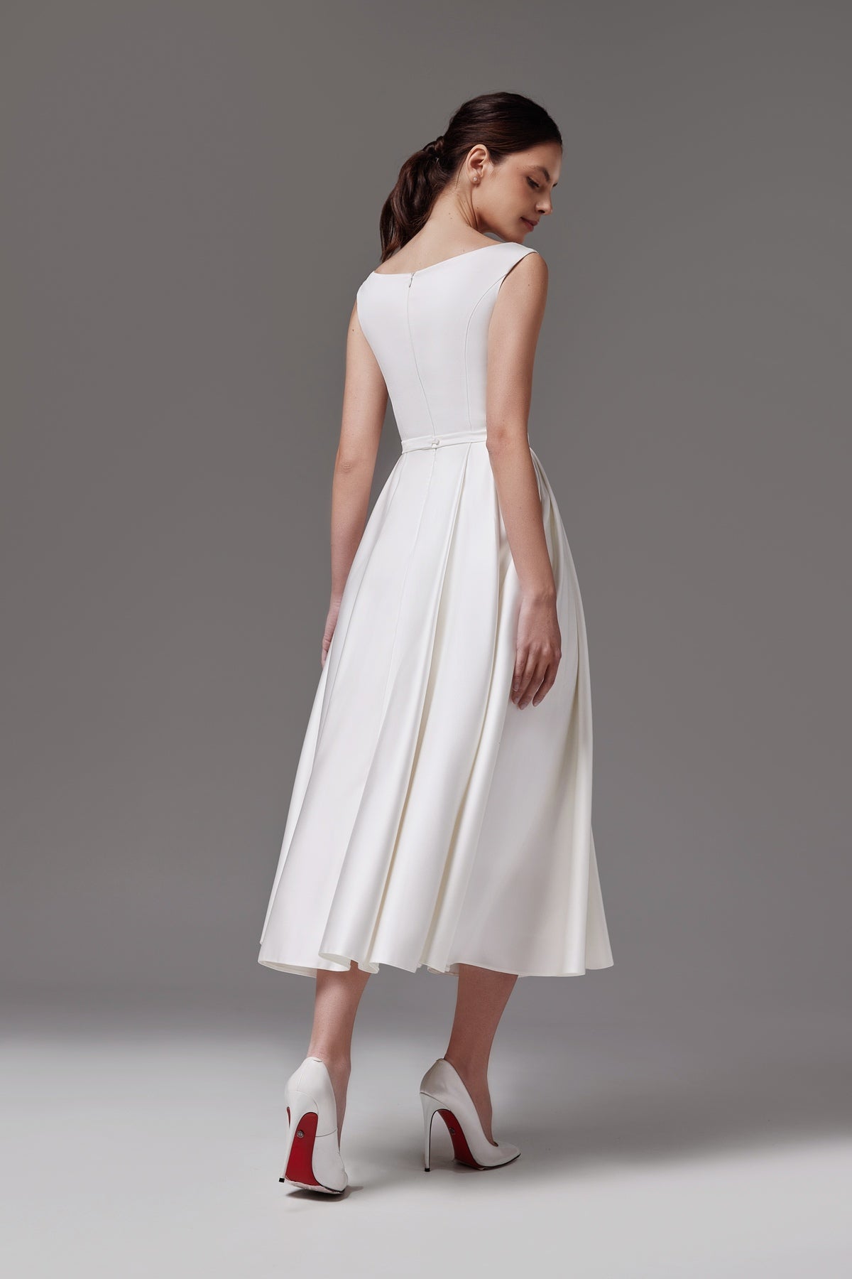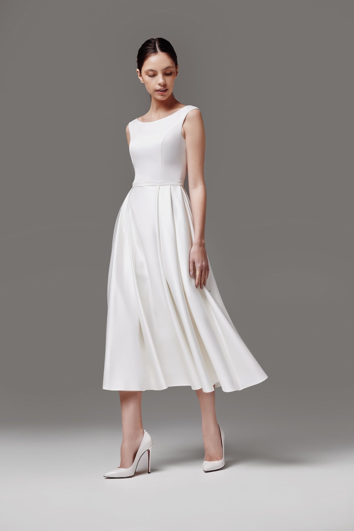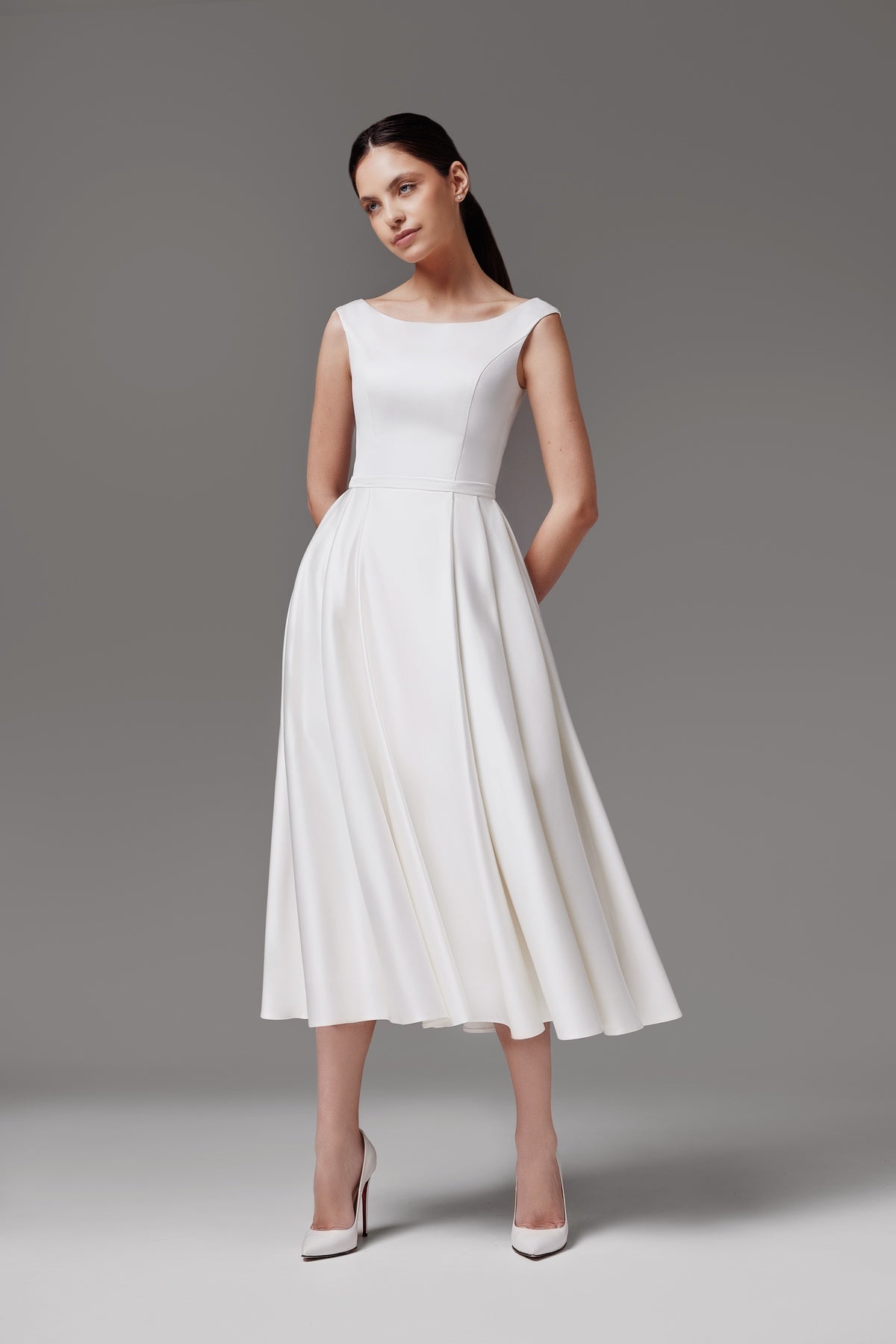 Midi Satin Wedding Dress With Boat Neck Brianna midi
