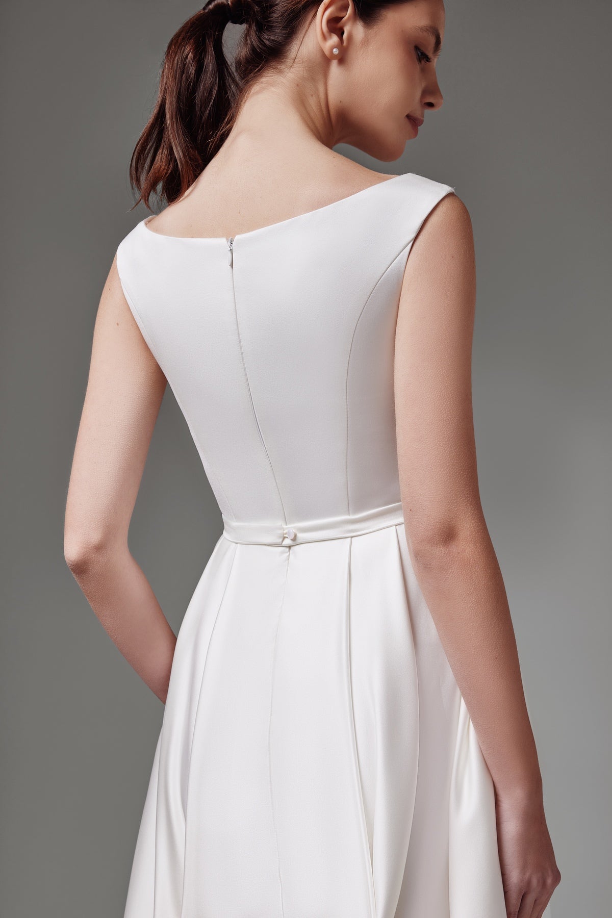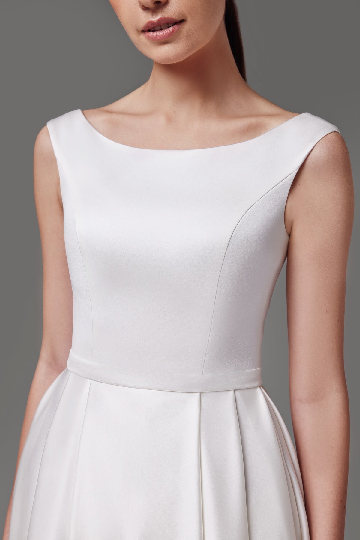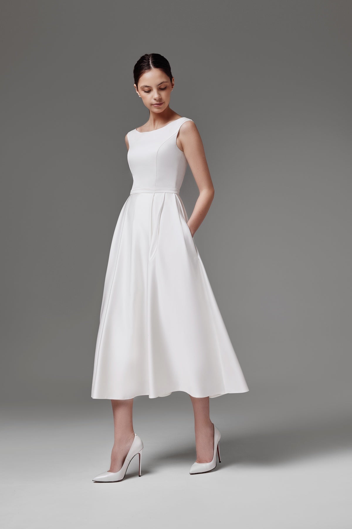 Midi Satin Wedding Dress With Boat Neck Brianna midi