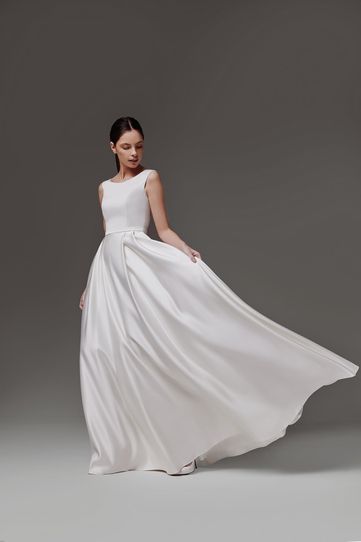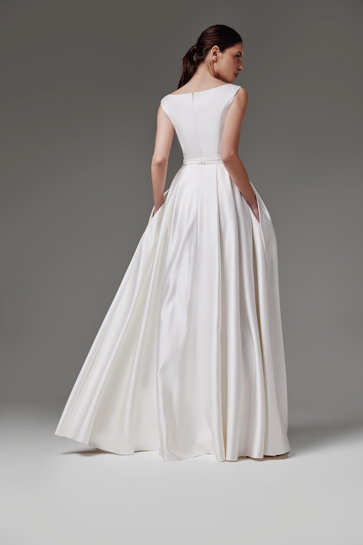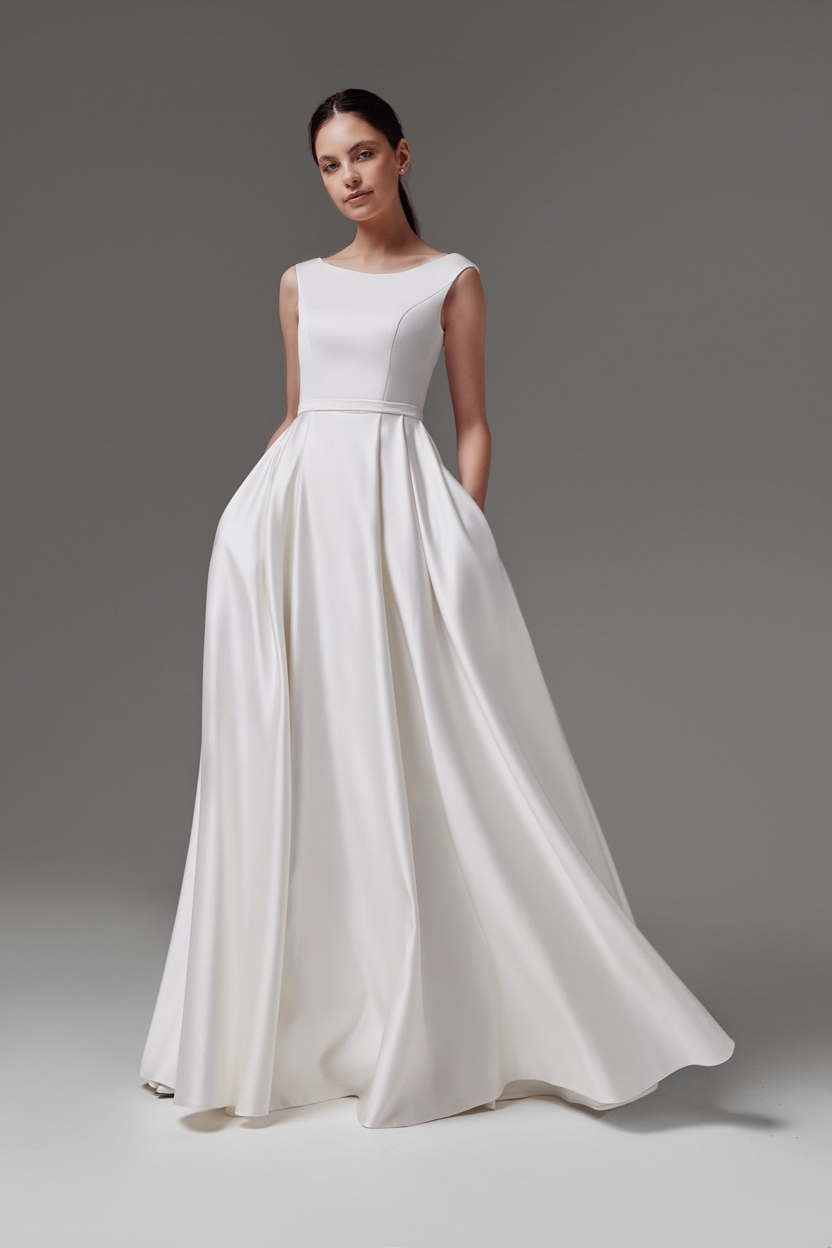 Long Satin Bridal Gown With Classy Boat Neck Brianna