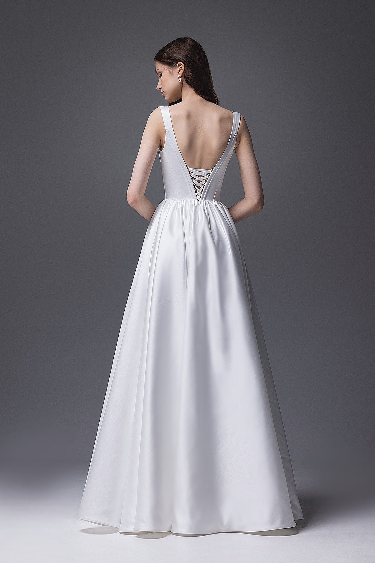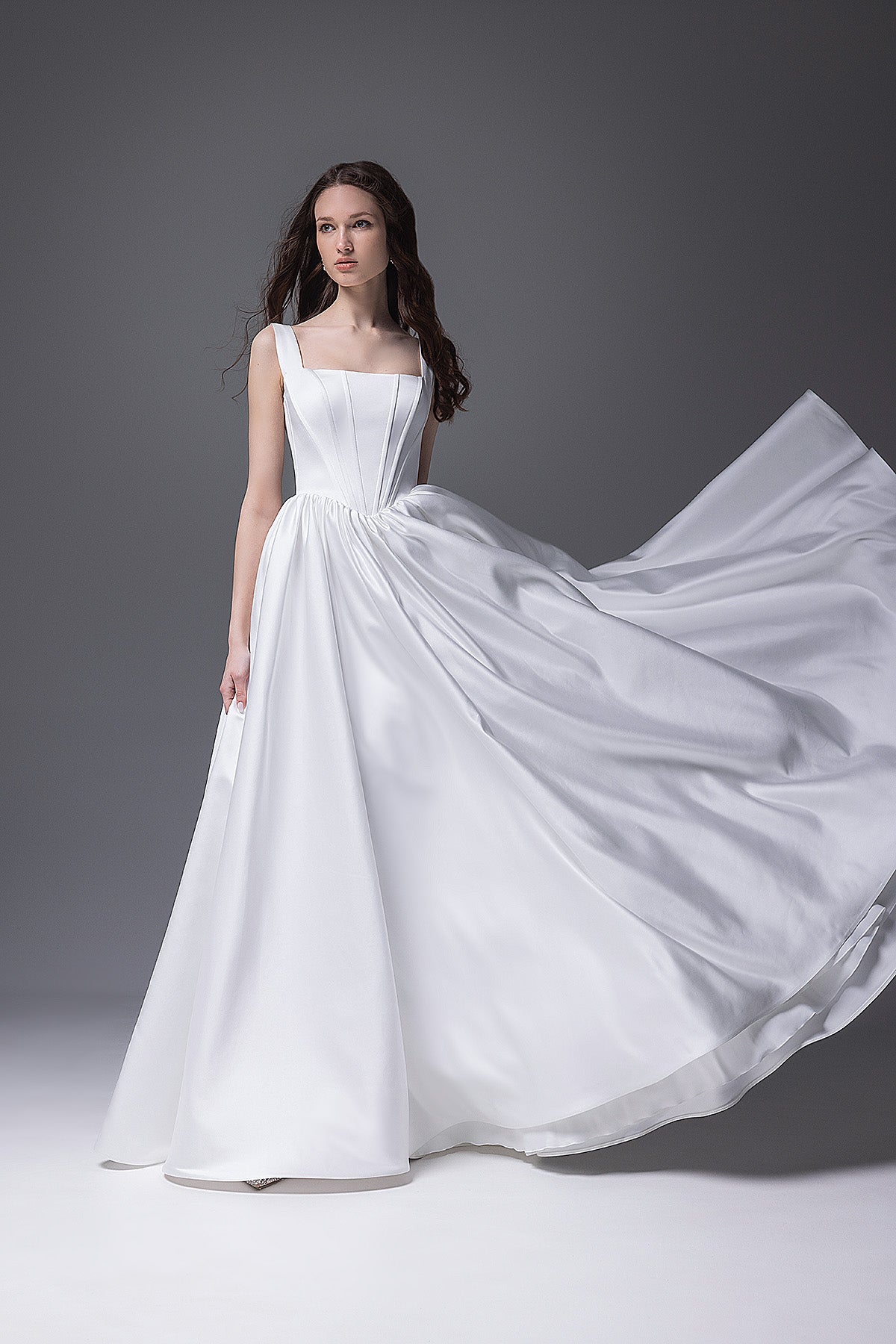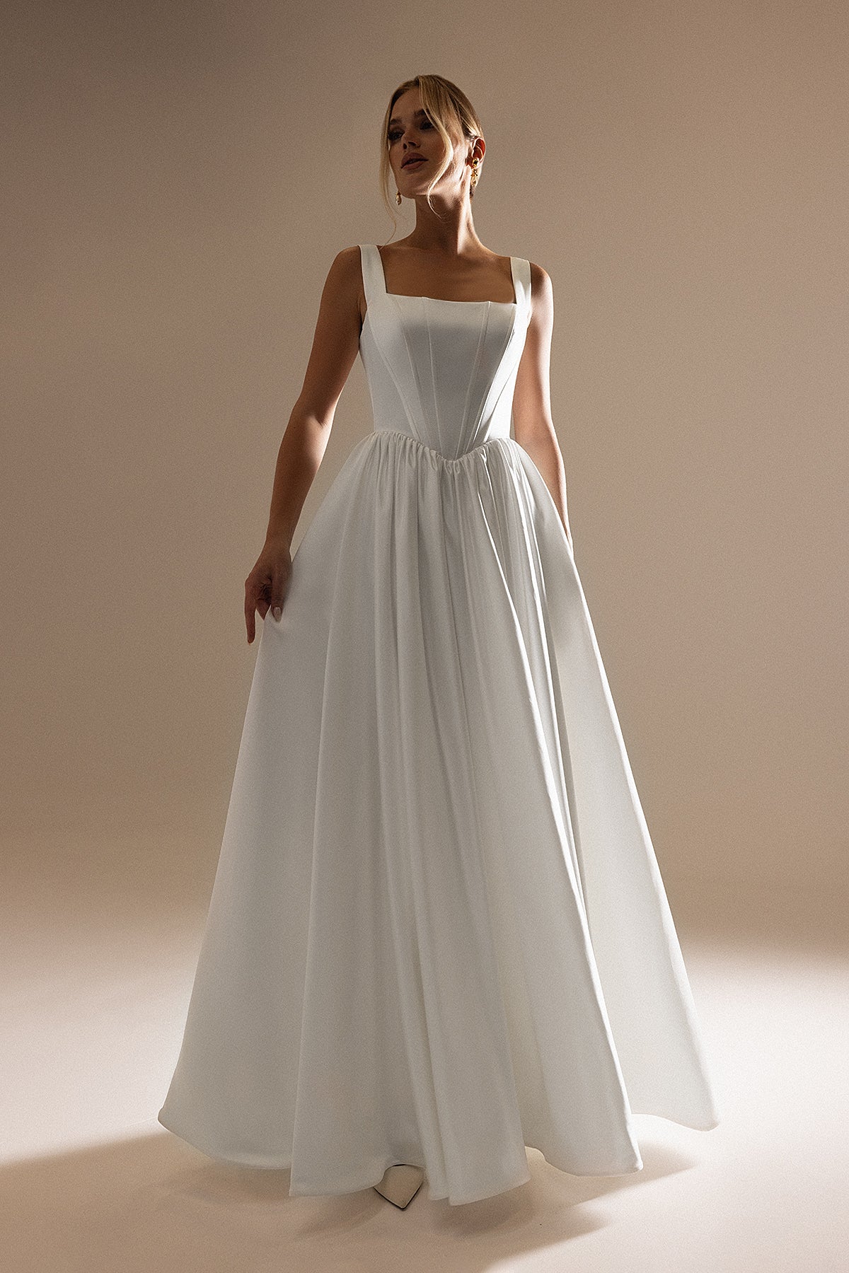 Satin Wedding Dress With Basque Waist And Square Neck Casia