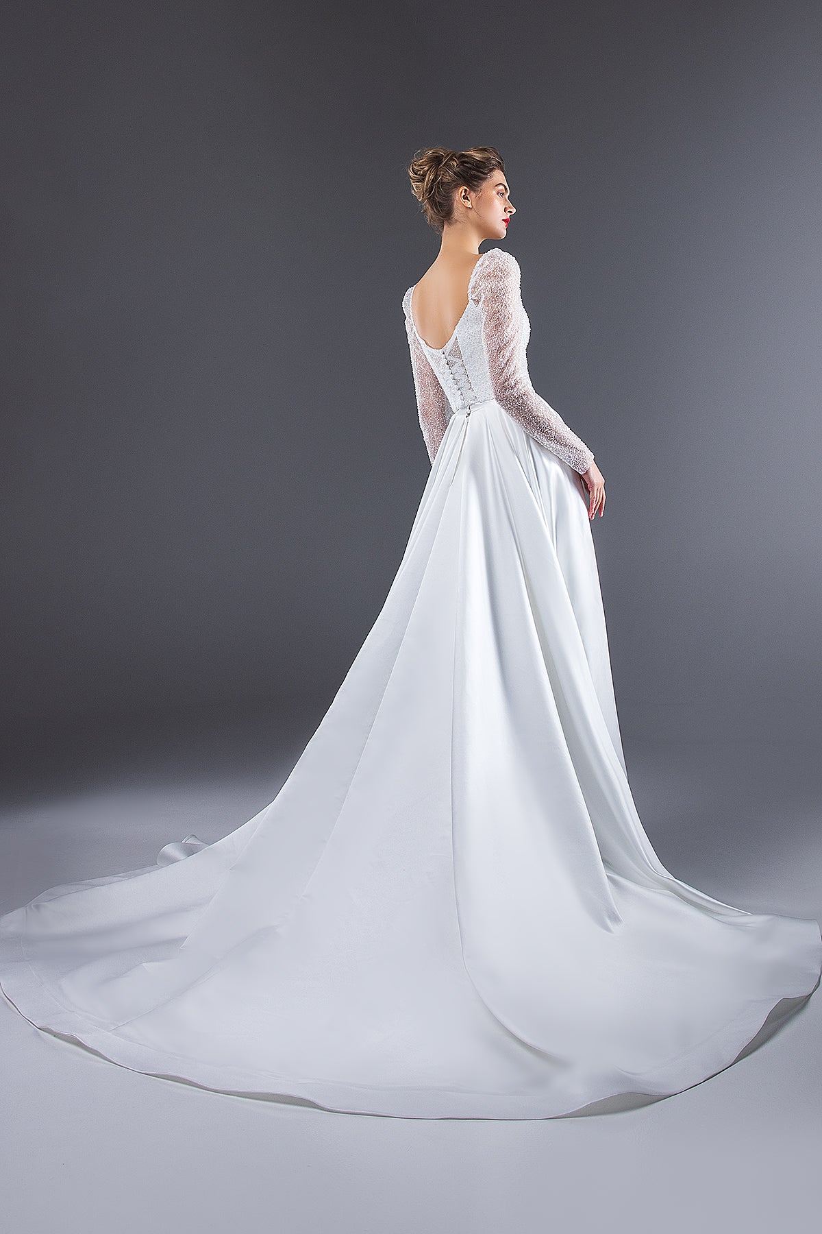 Custom-size gown is created based on customer measurements. To ensure a better fit, we recommend ordering the Custom Size option. Your dress will be individually tailor-made to fit your body shape. Our easy-to-use online Measurement Guide will help you set up your measurement profile within 10-15 minutes. Our tailors will review each measurement profile and alert you if any adjustments are needed. Please note that our custom sizing options should provide you with a good fit, especially for brides who are in between sizes. However, anticipate needing some local alterations for the perfect fit, whether you are purchasing a Standard size or a Custom size gown.