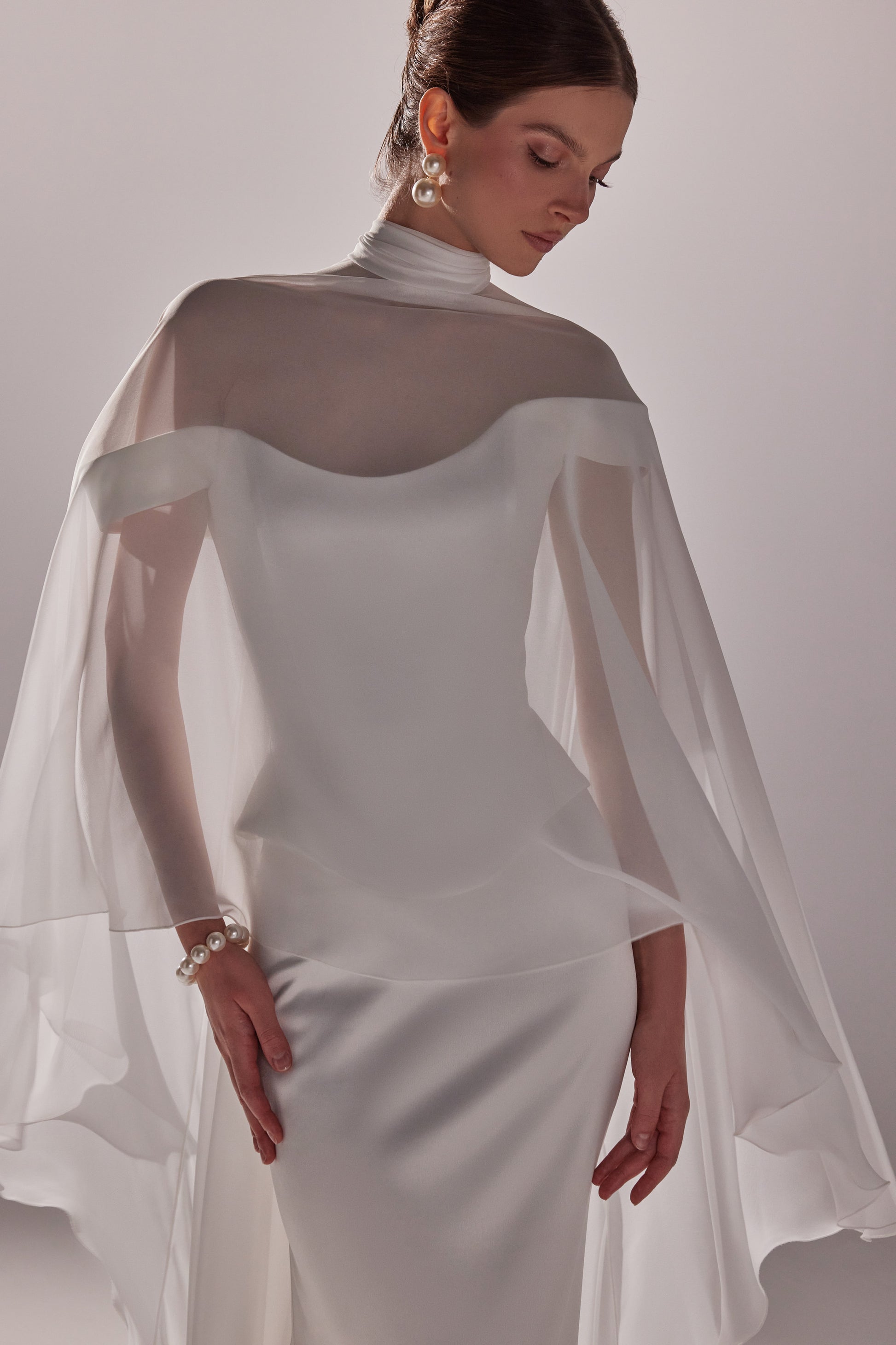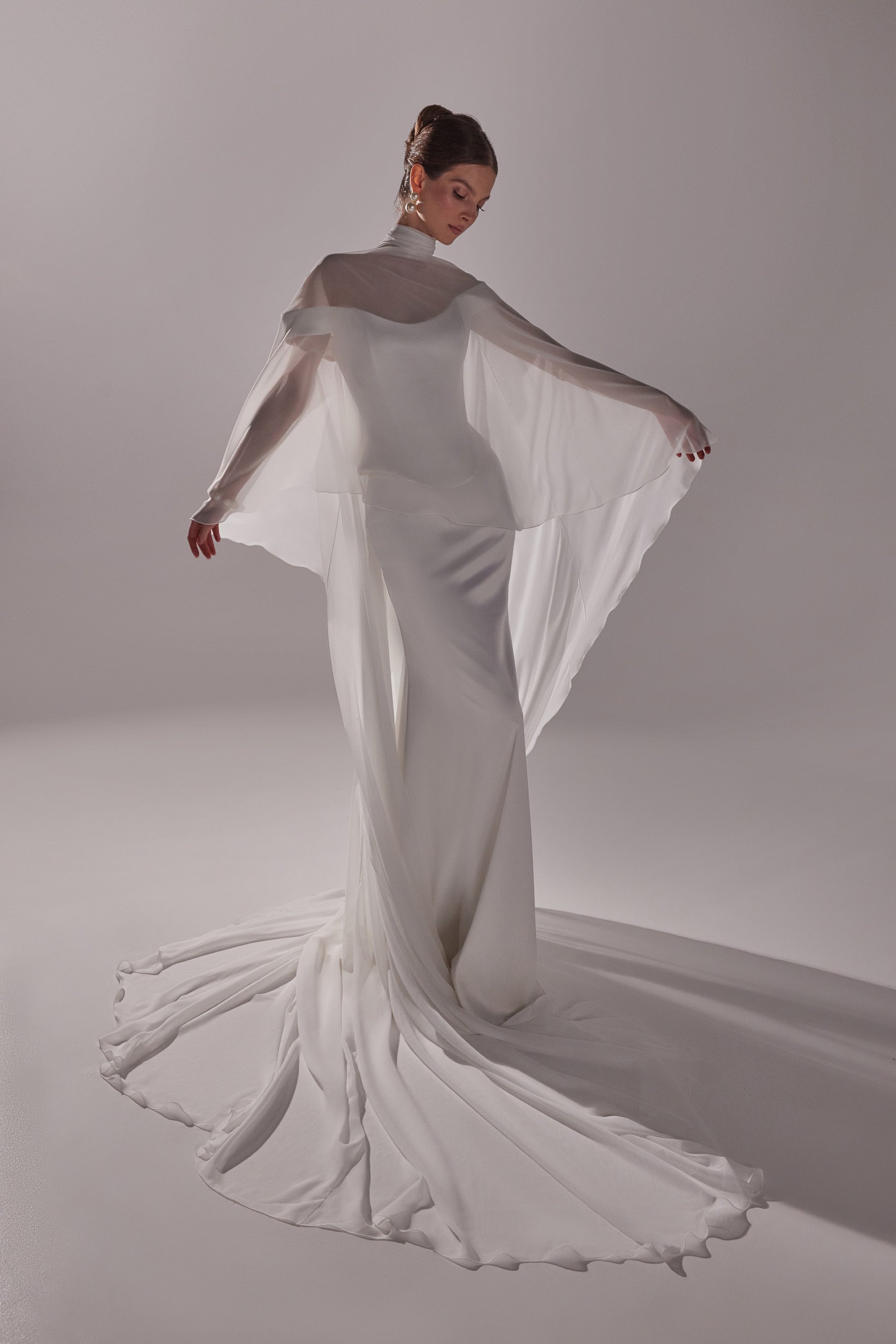 Chiffon Bridal Cape Naila | Modern Wedding Dress Topper With Train