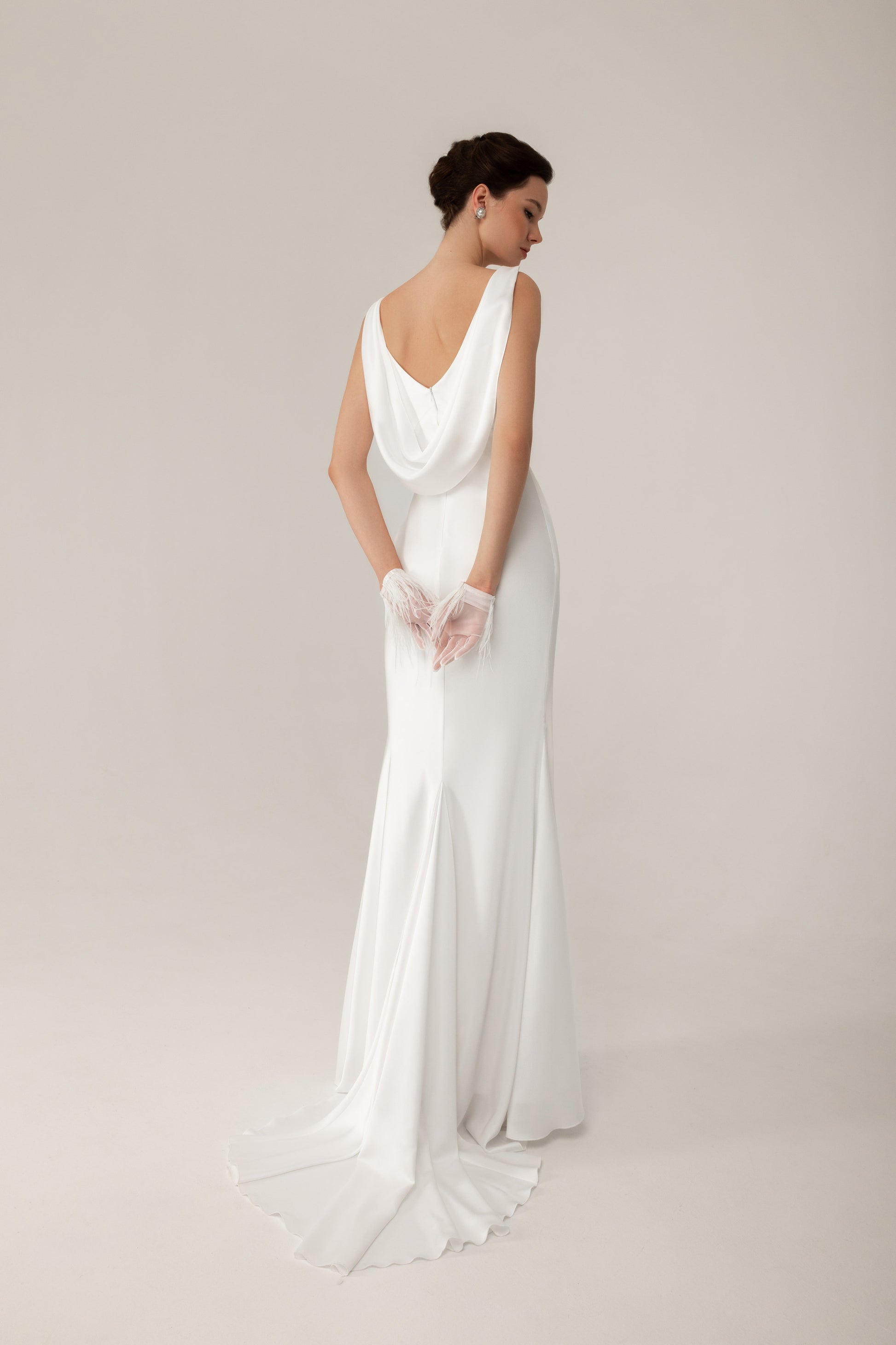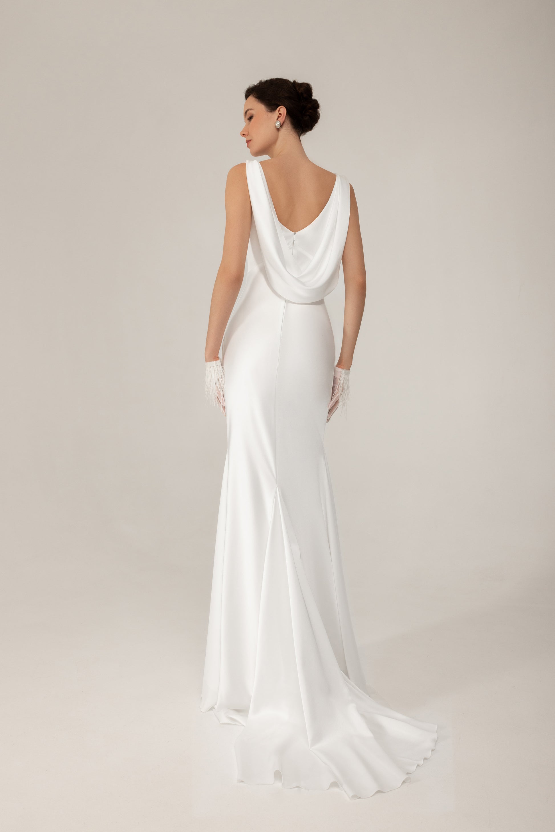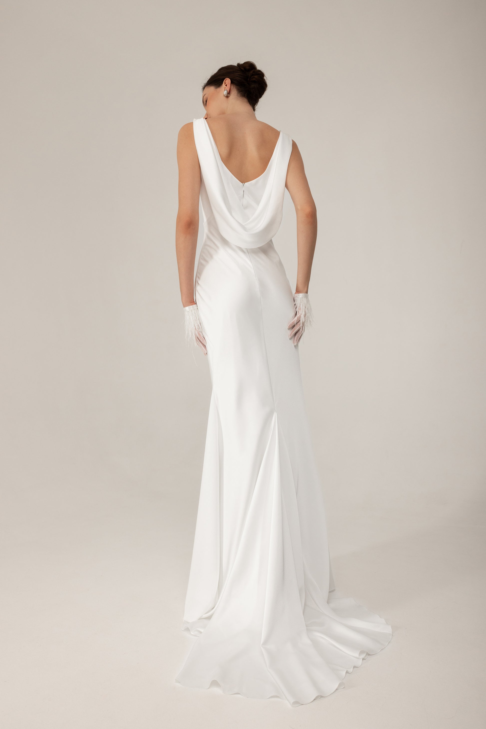 Cowl Neck White Satin Wedding Dress Lea | Fit & Flare Minimalist Gown