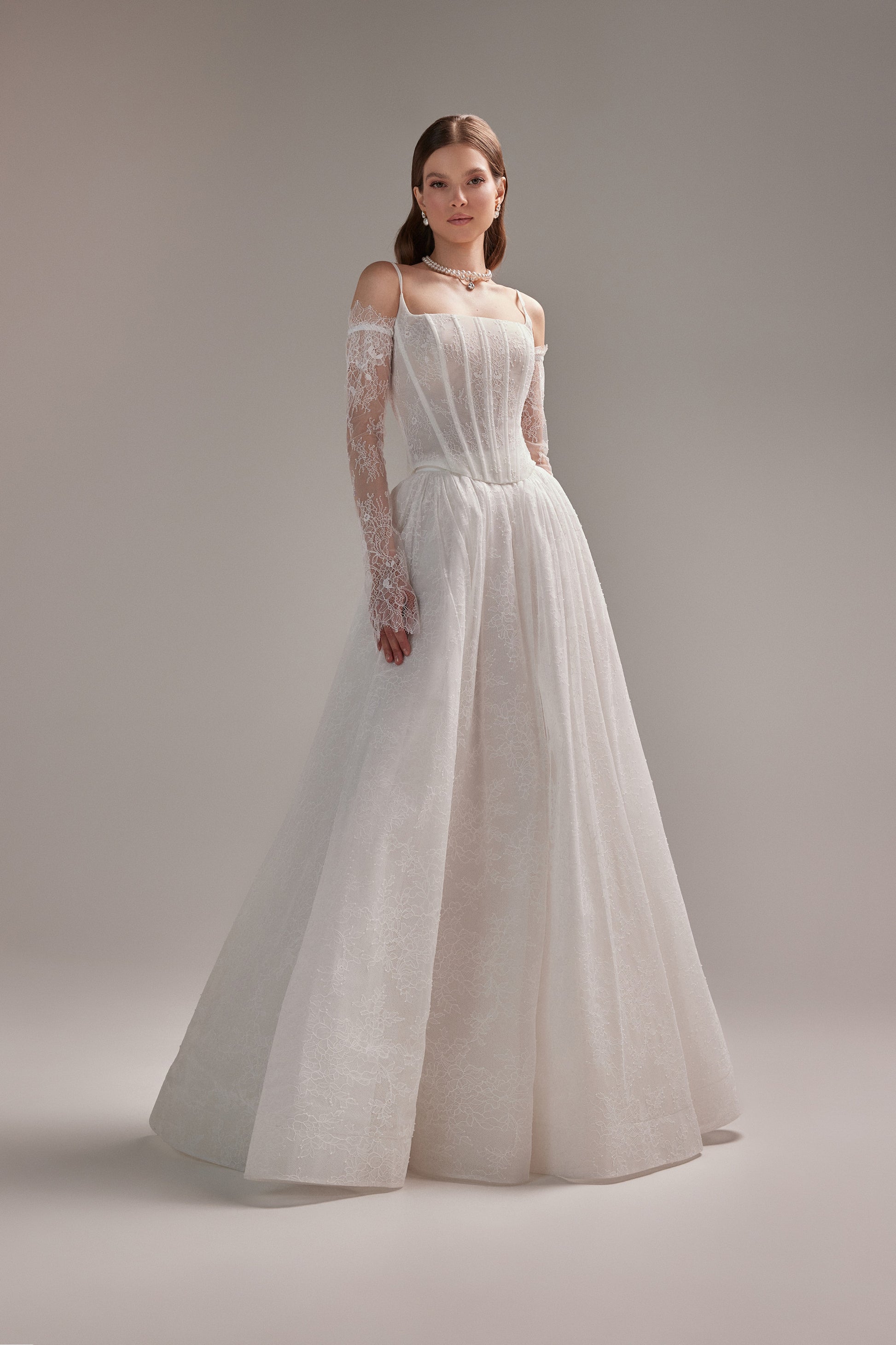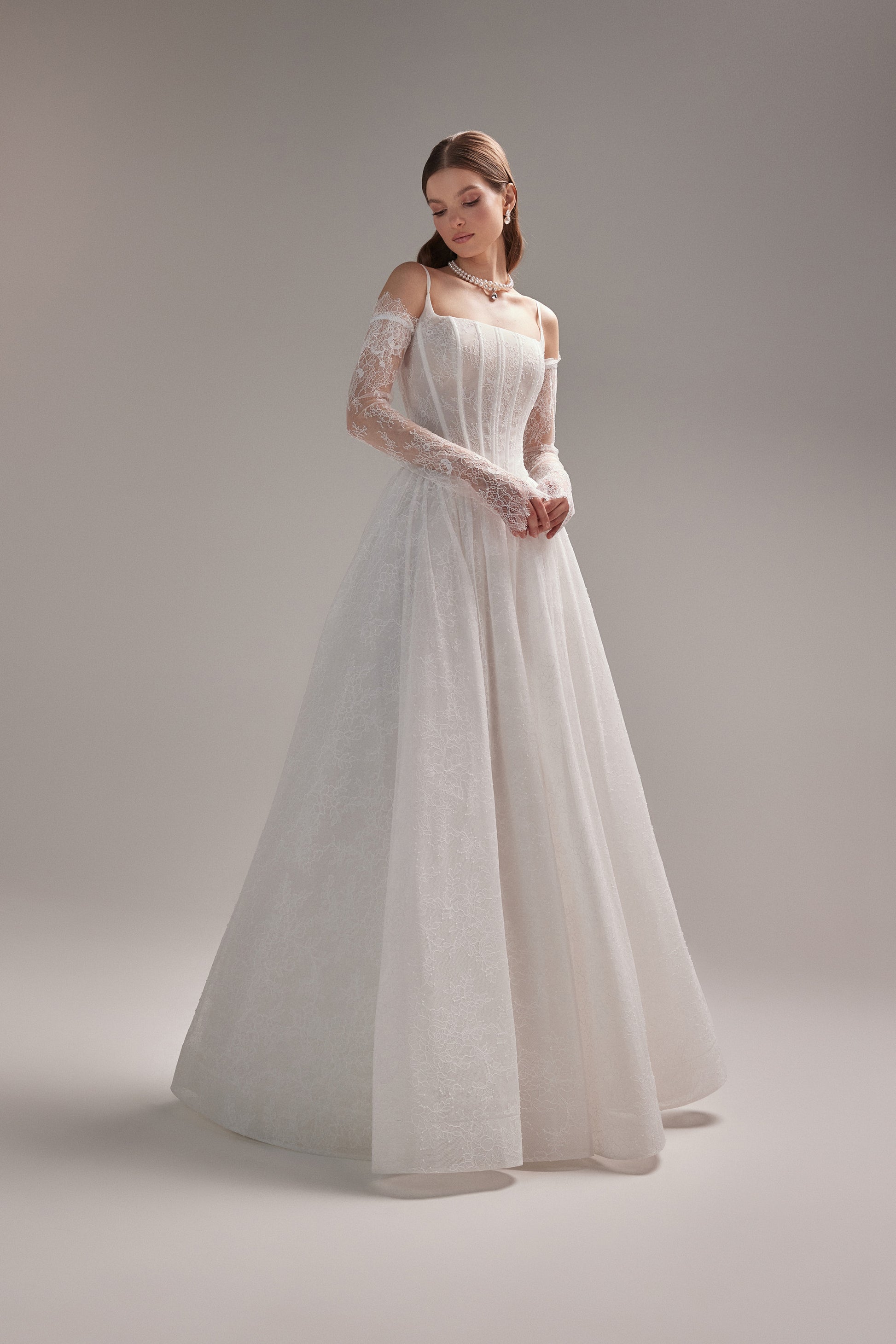 Enchanting detachable Chantilly lace sleeves add an air of royal elegance to any dress. Choose these exquisite sleeves to elevate your special day.