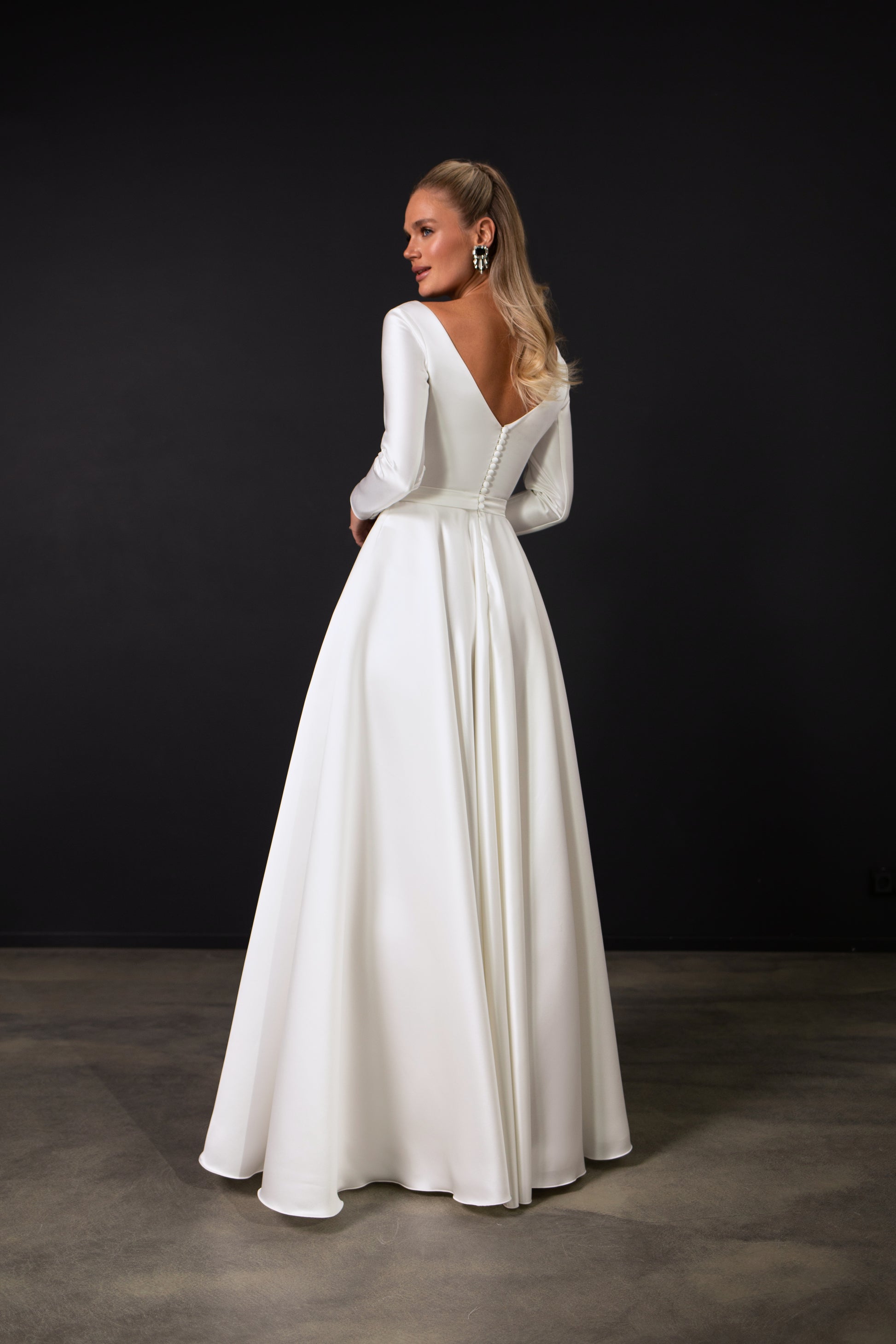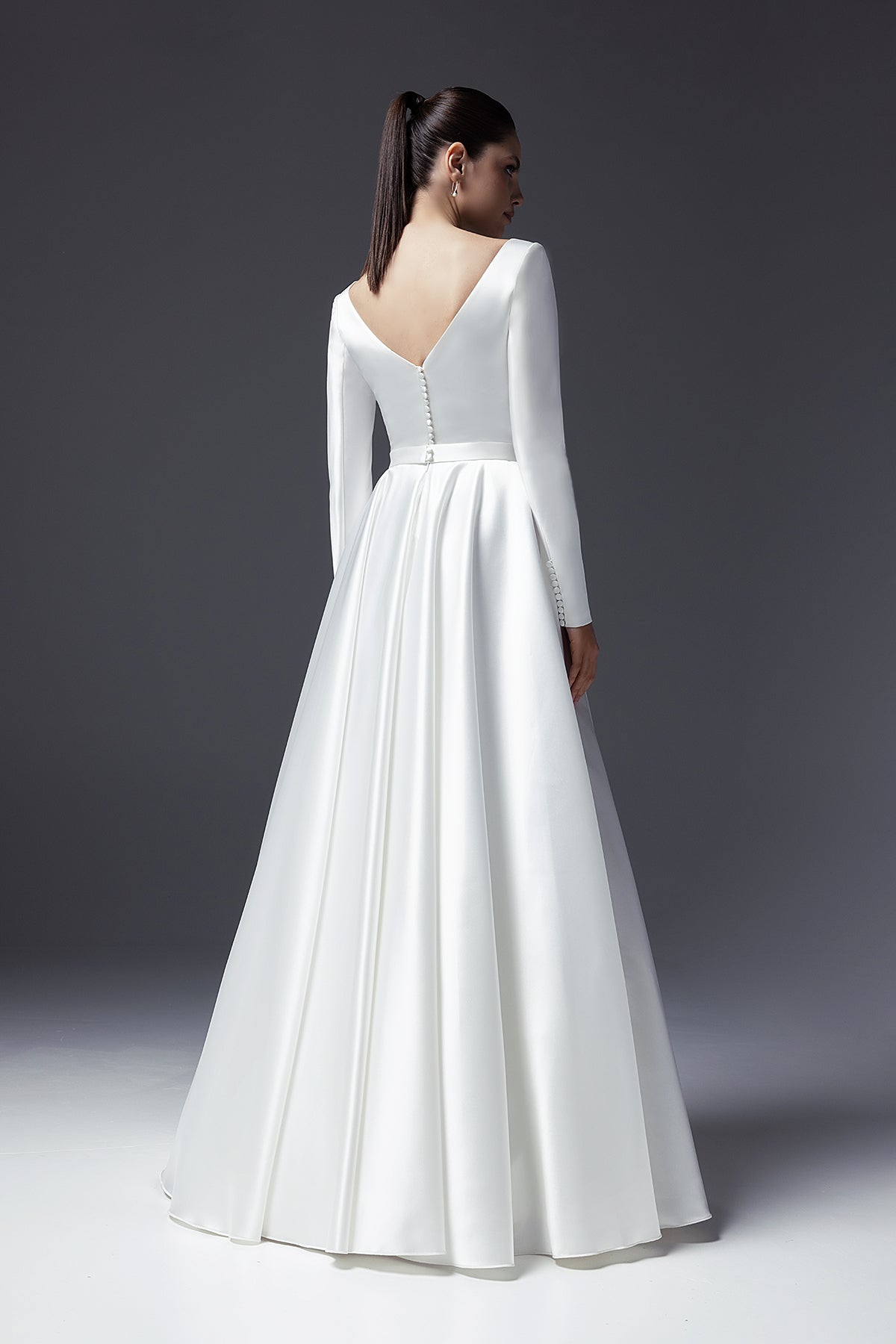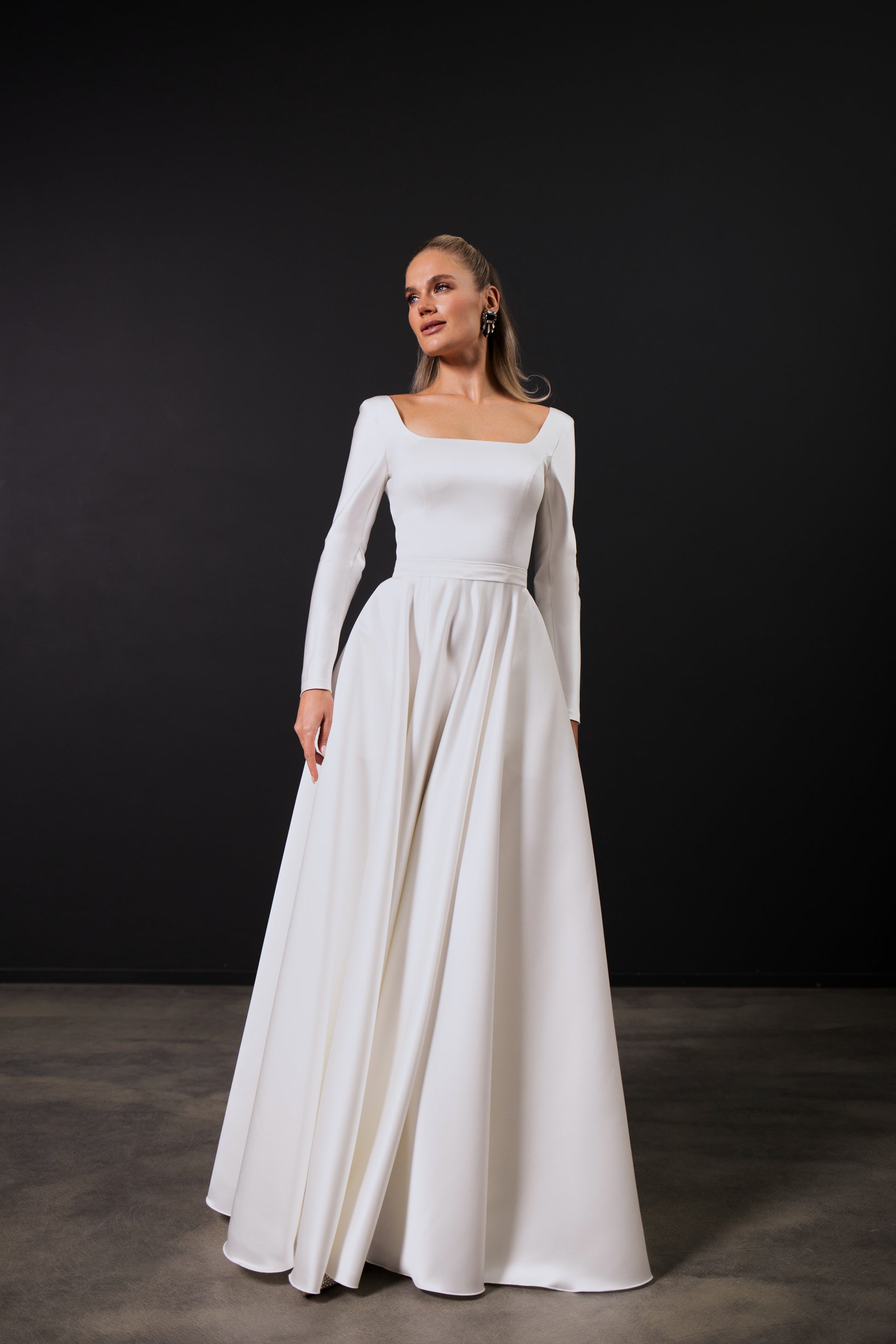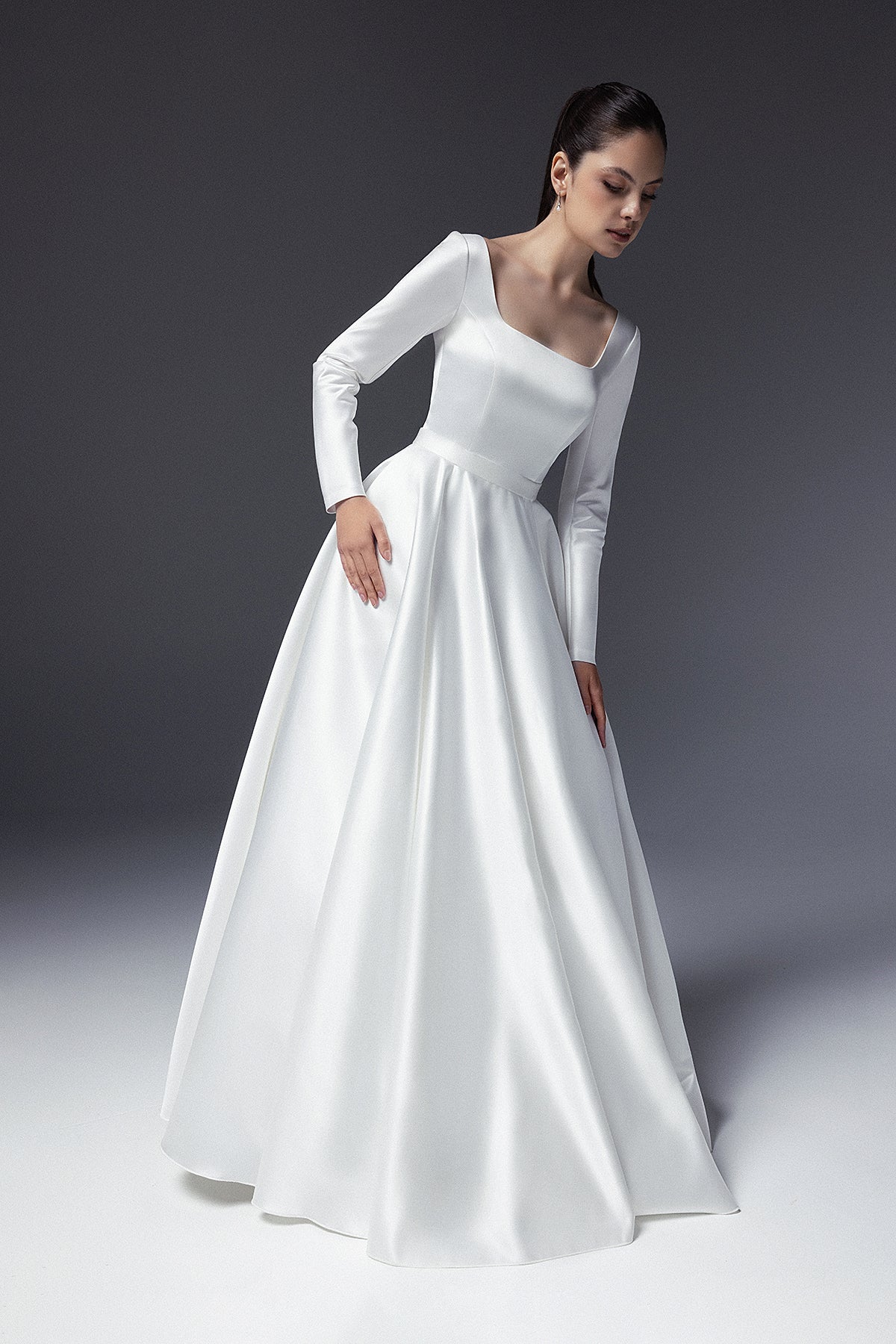 Classy Satin Wedding Dress With Long Sleeves Elizabeth