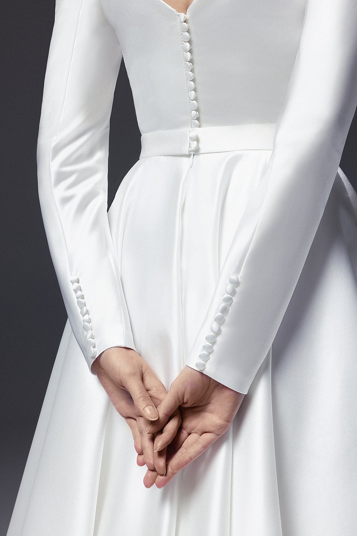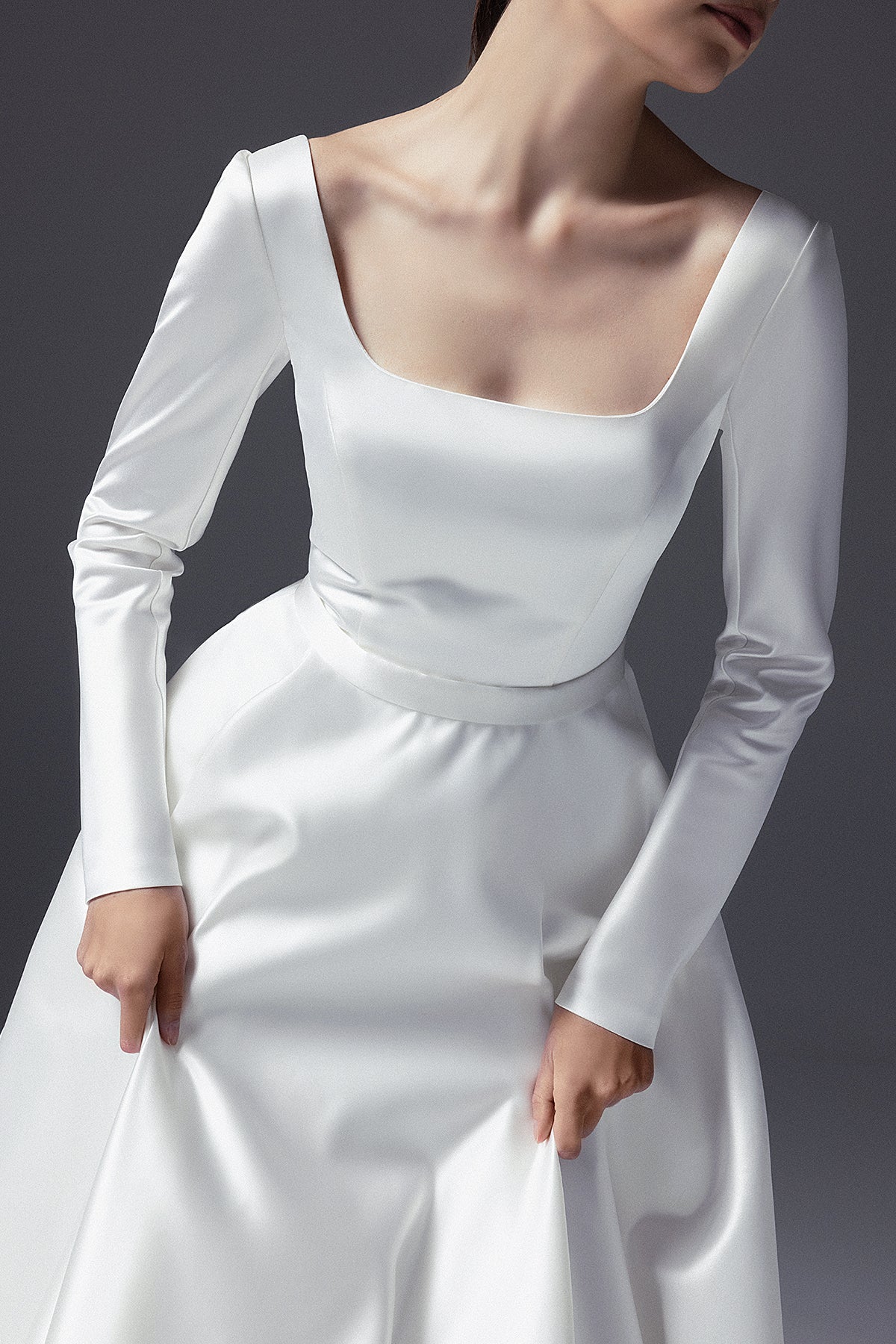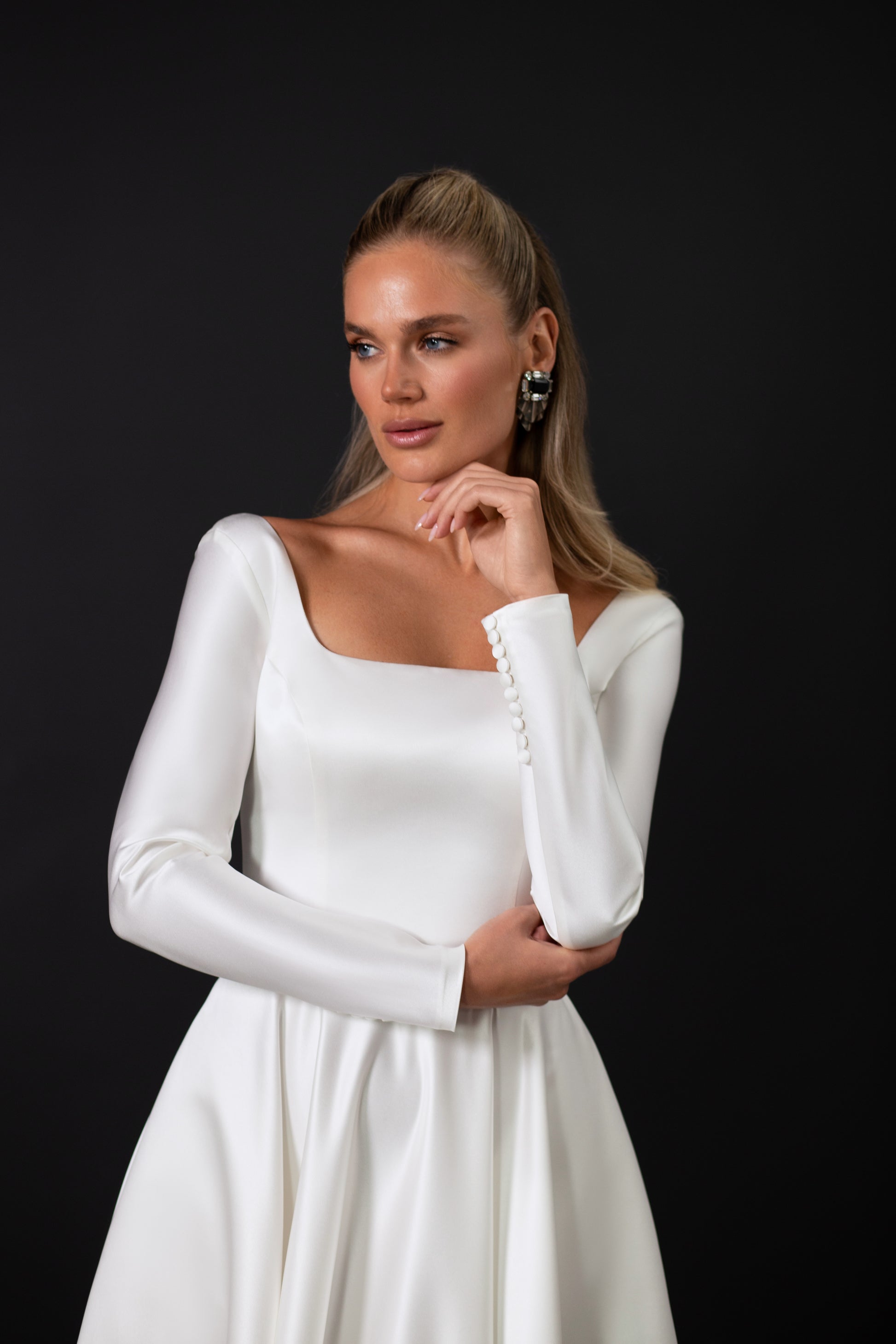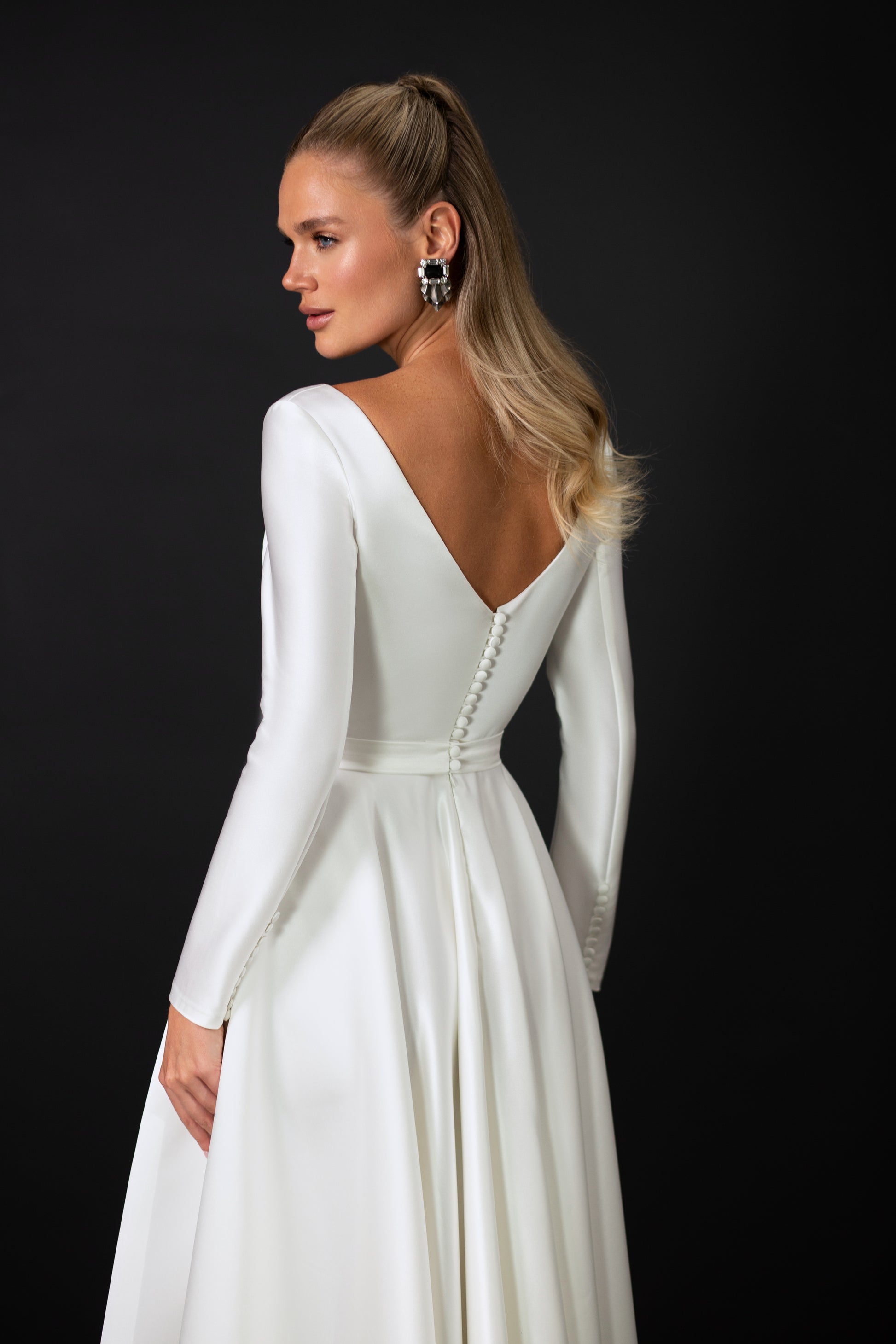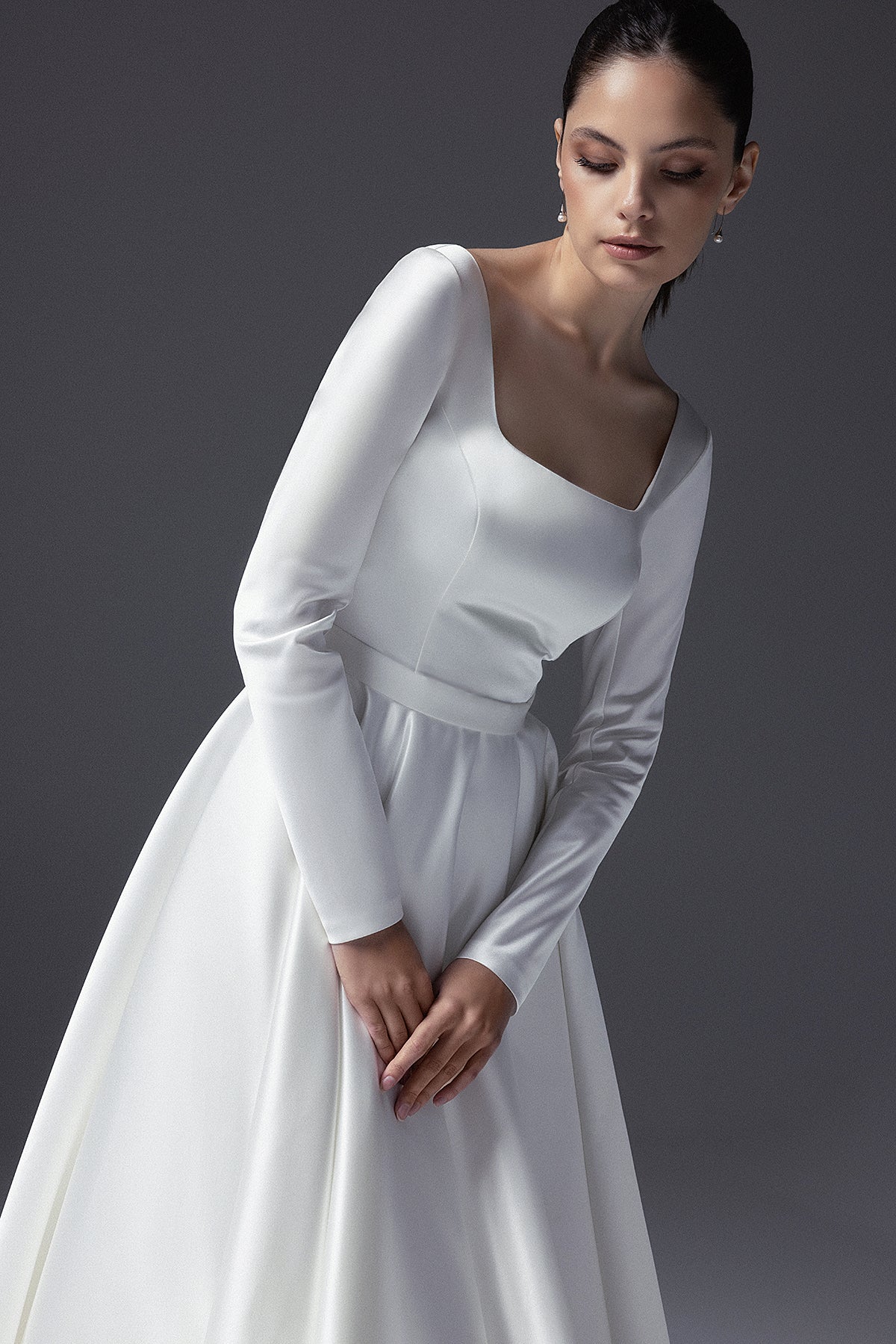 Classy Satin Wedding Dress With Long Sleeves Elizabeth