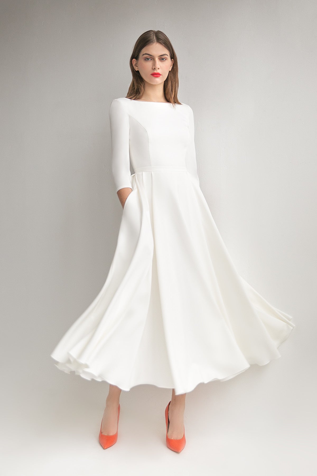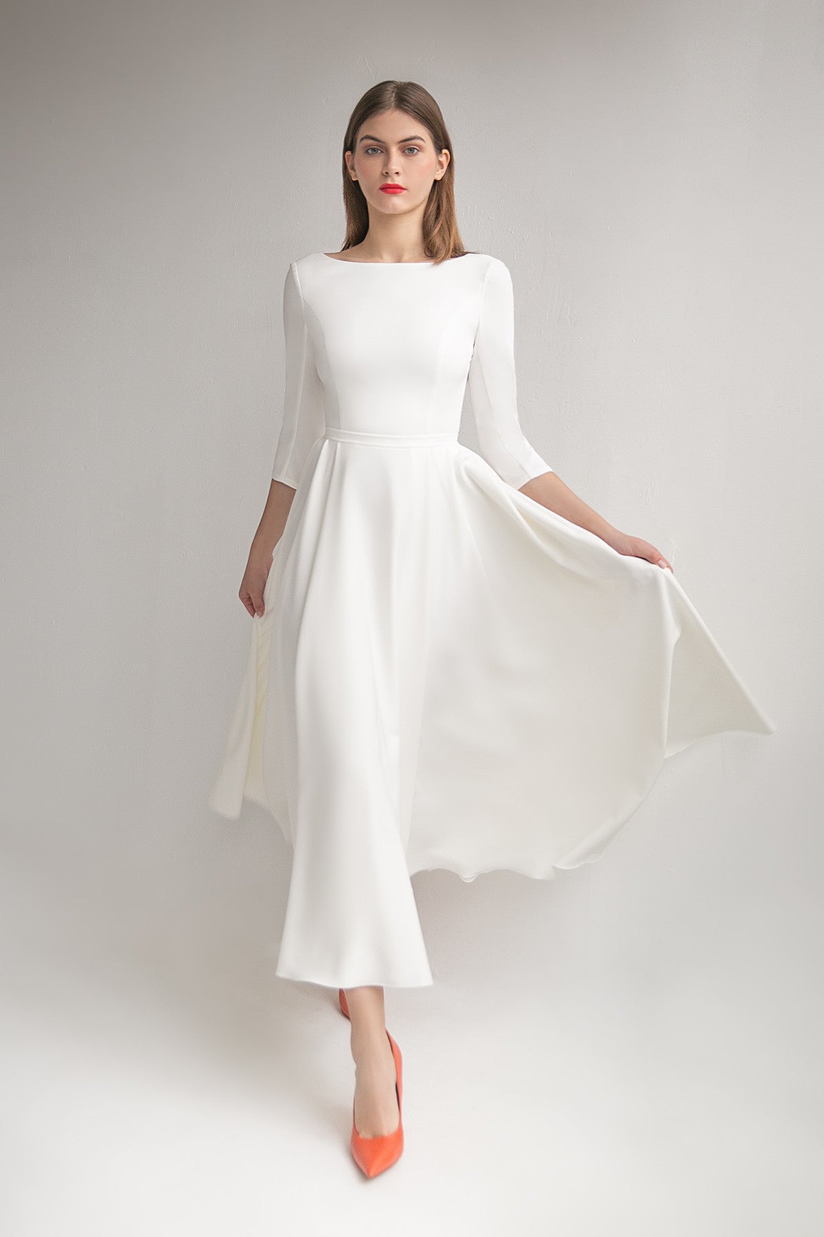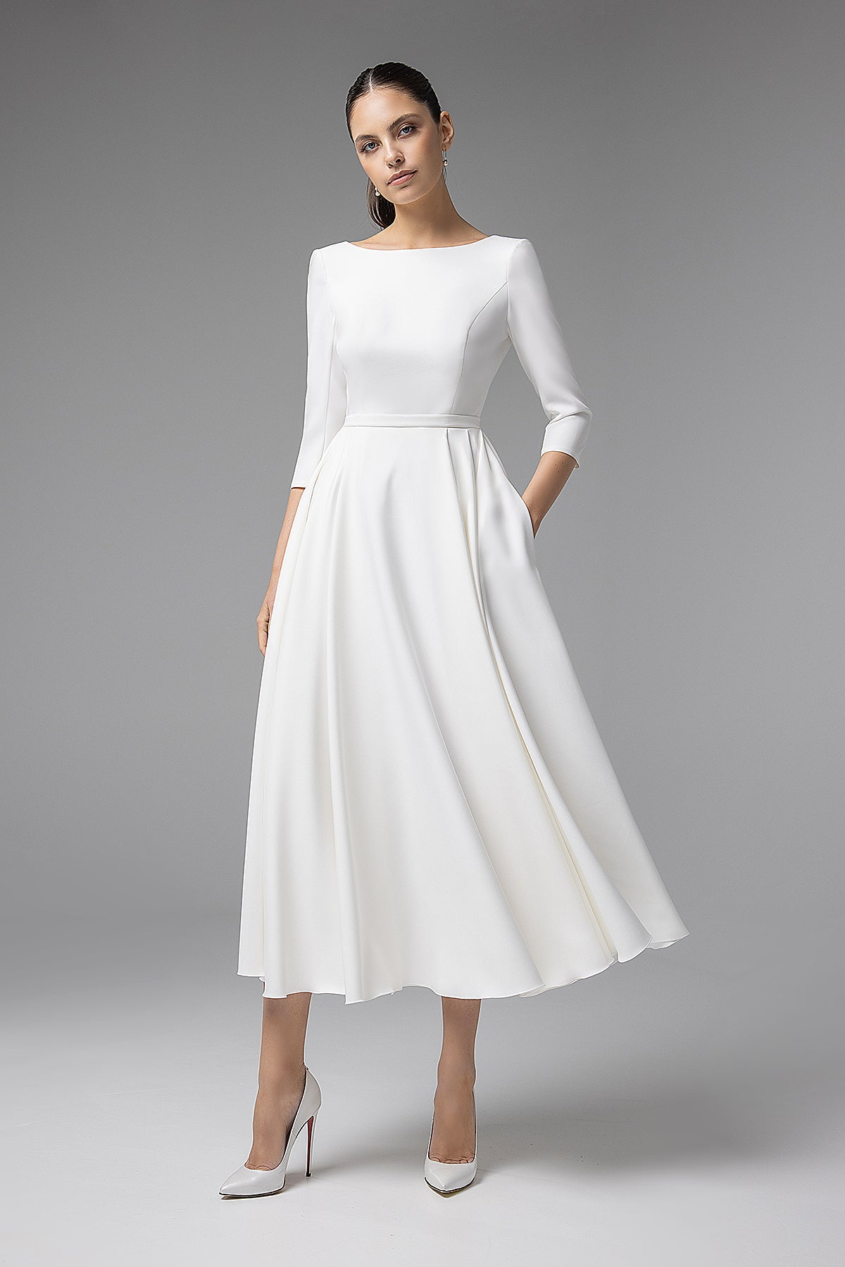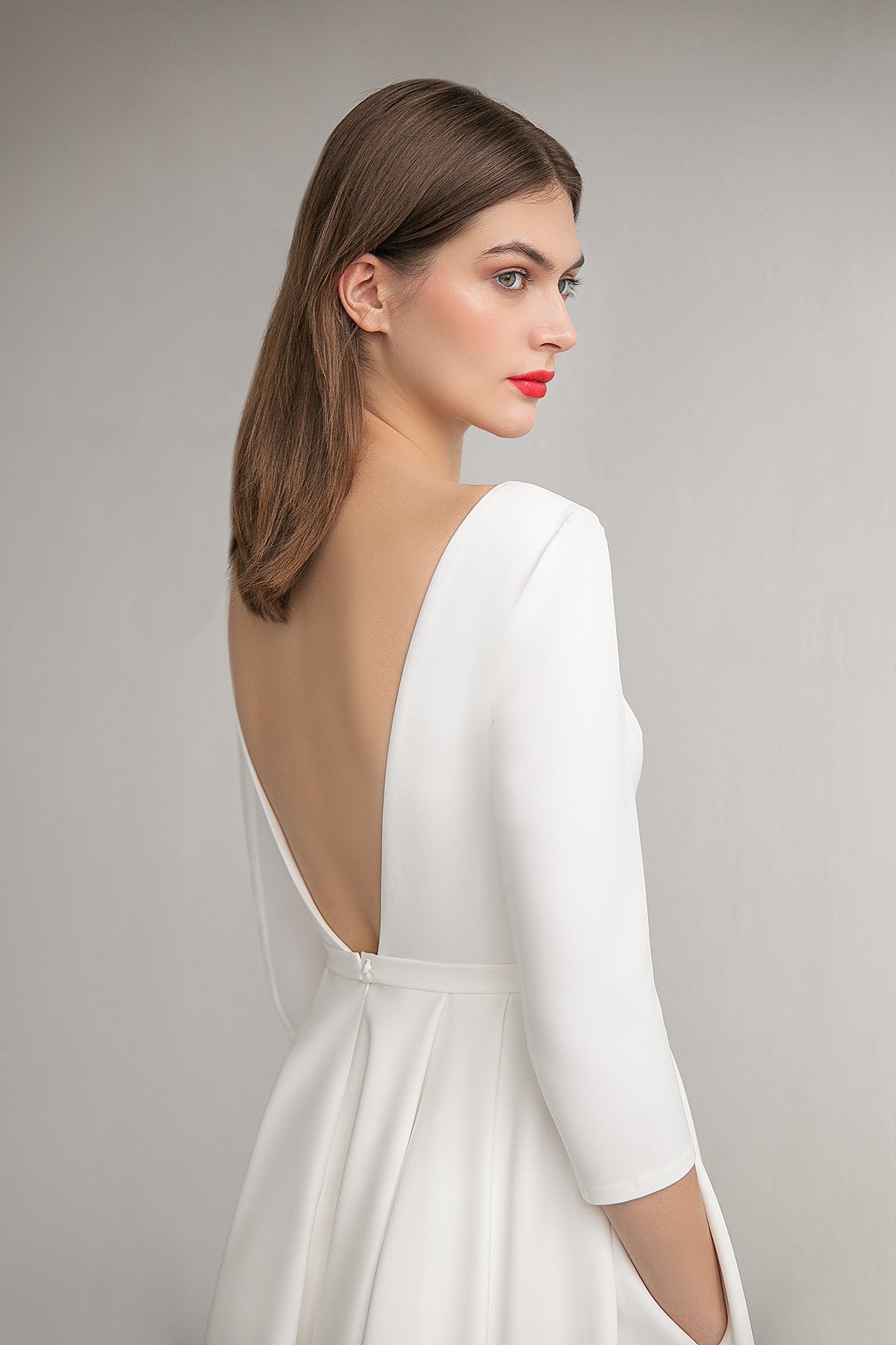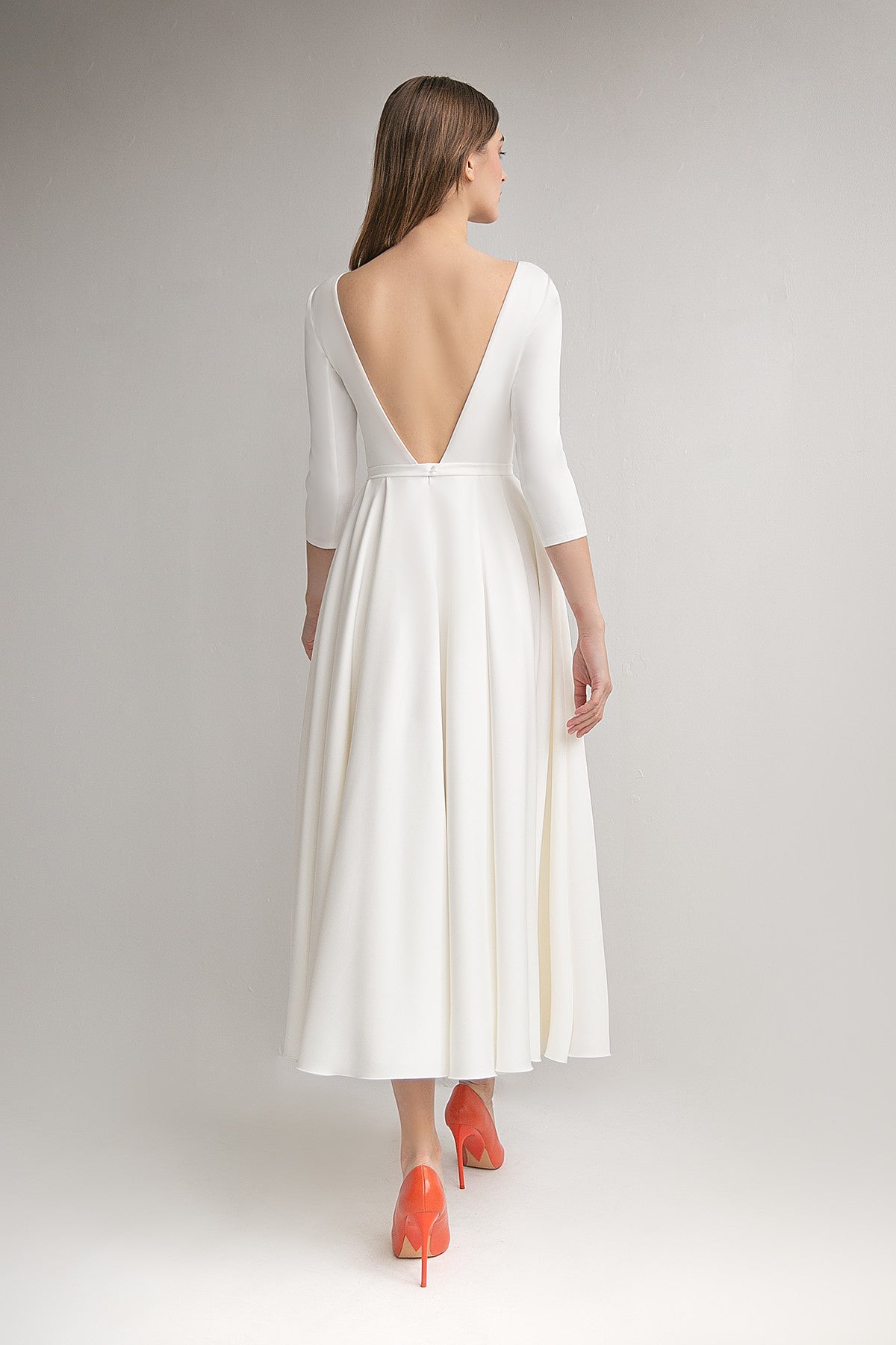 Tea Length Crepe Wedding Dress With Open Back Julie midi