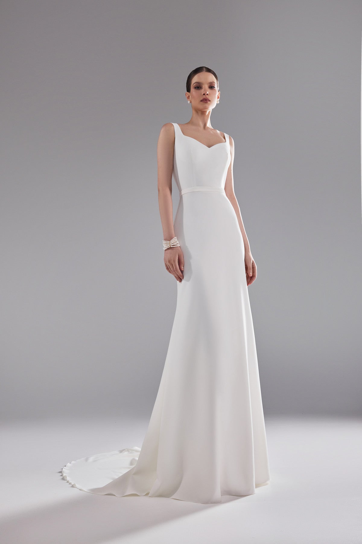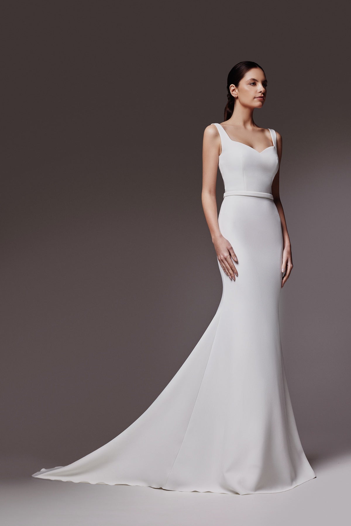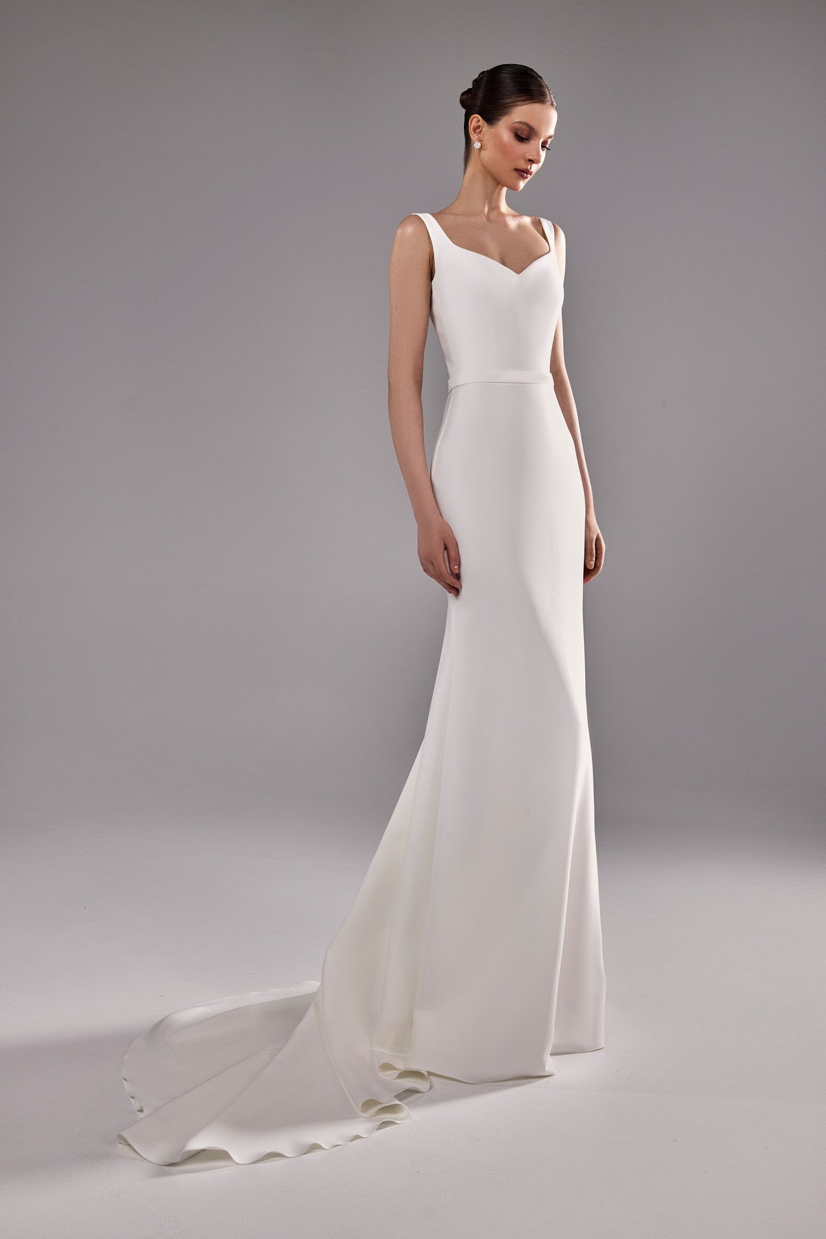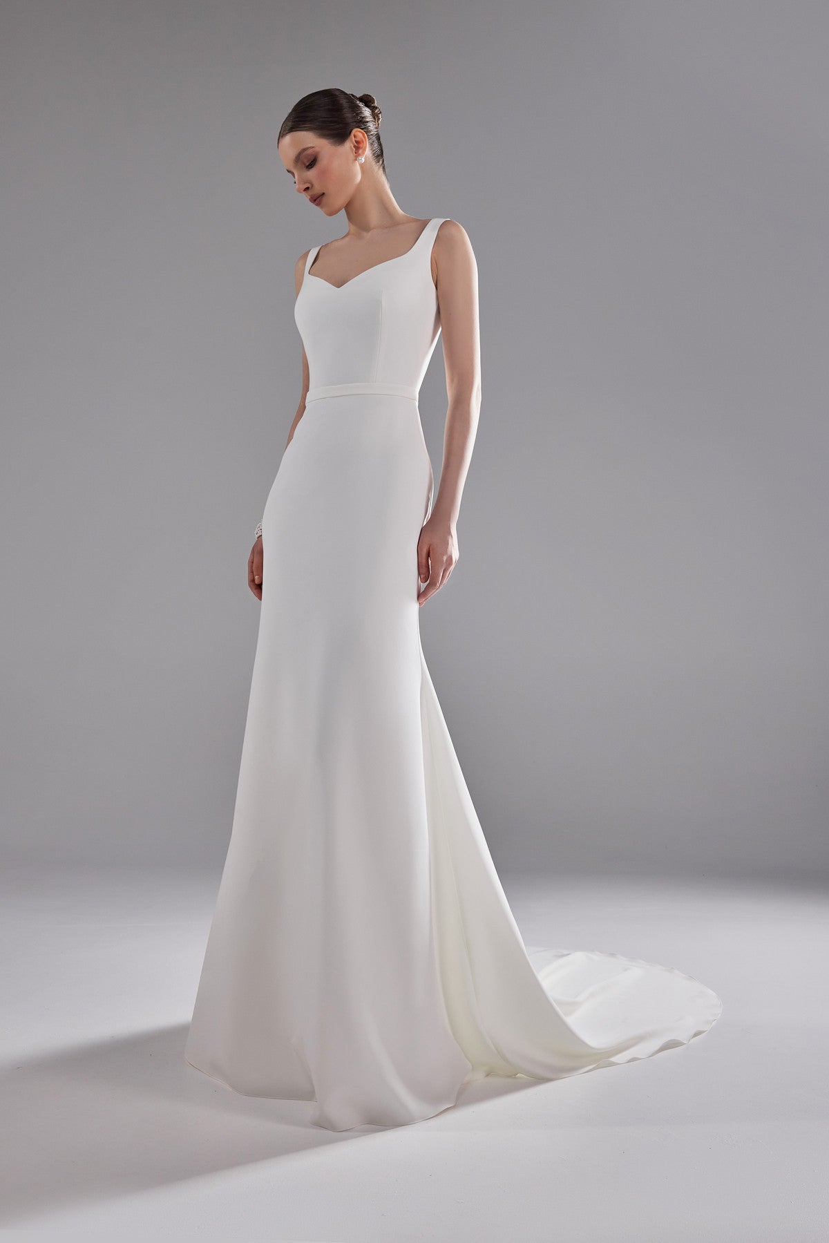 Crepe Fit & Flare Silhouette Wedding Dress With Long Train Justina