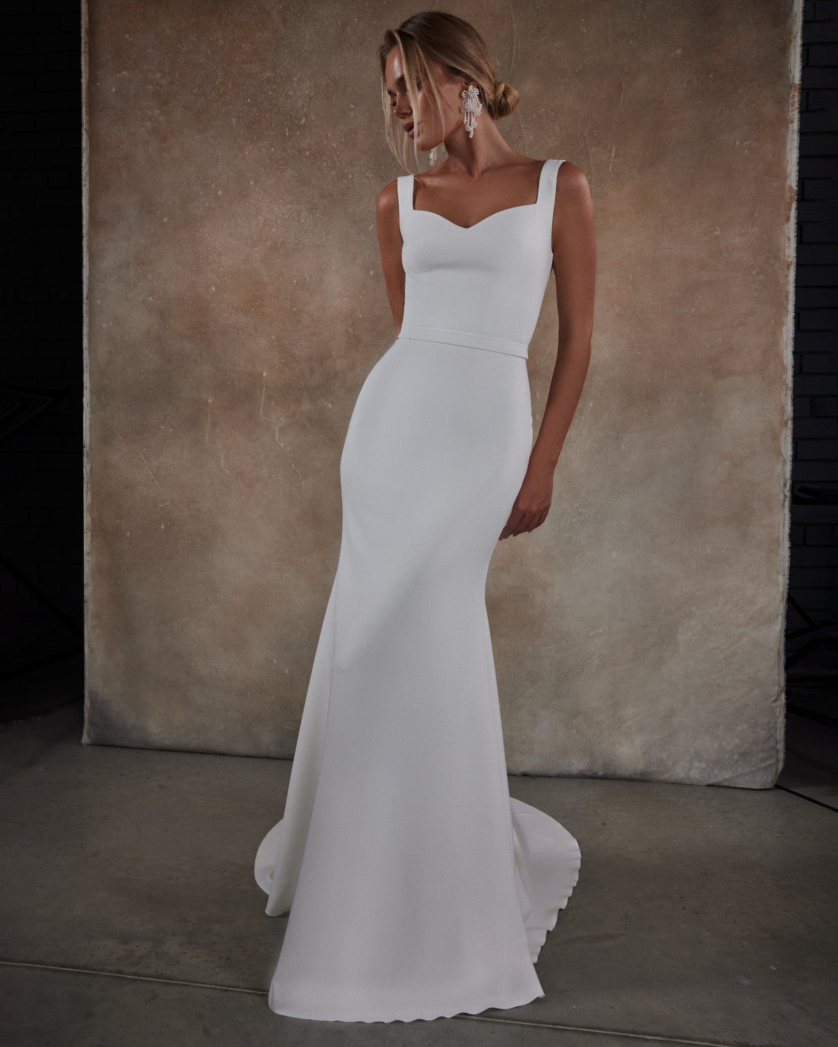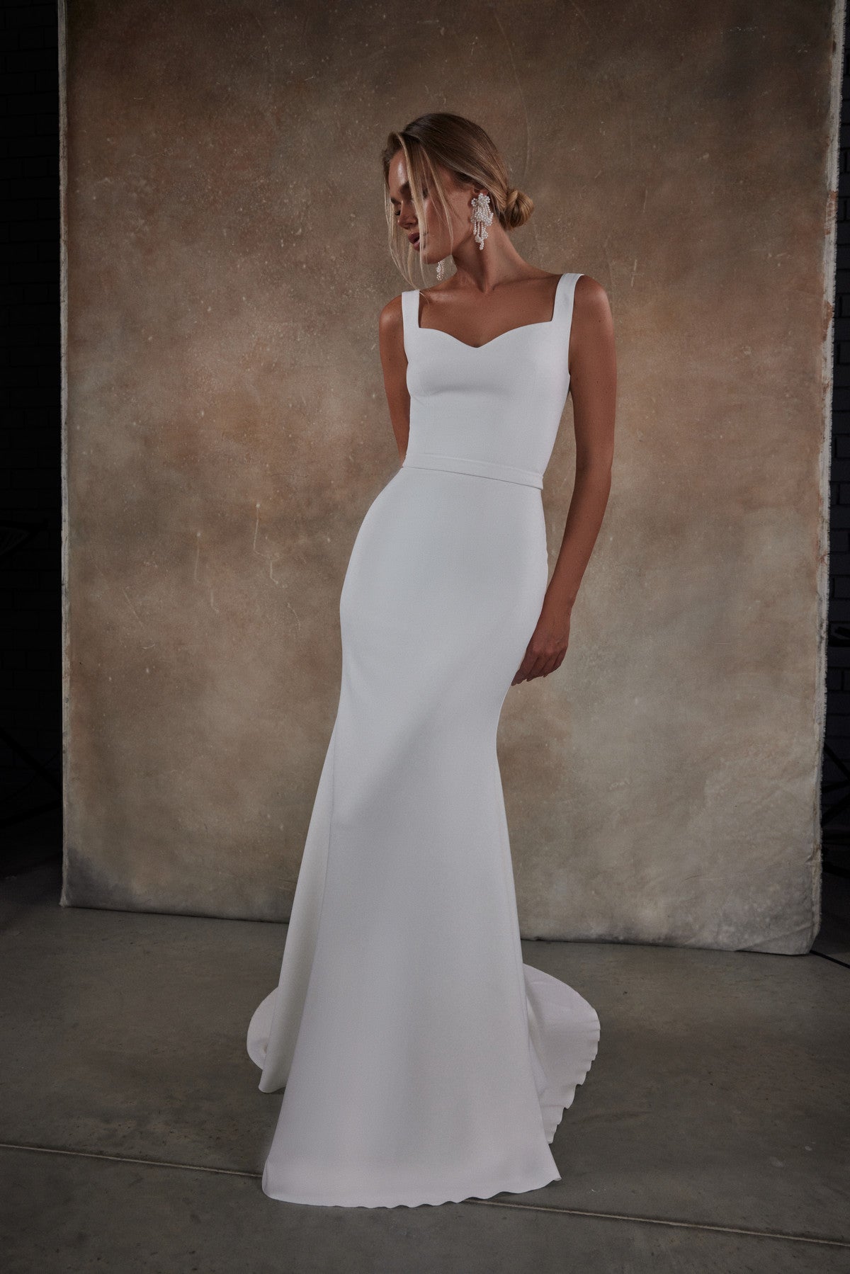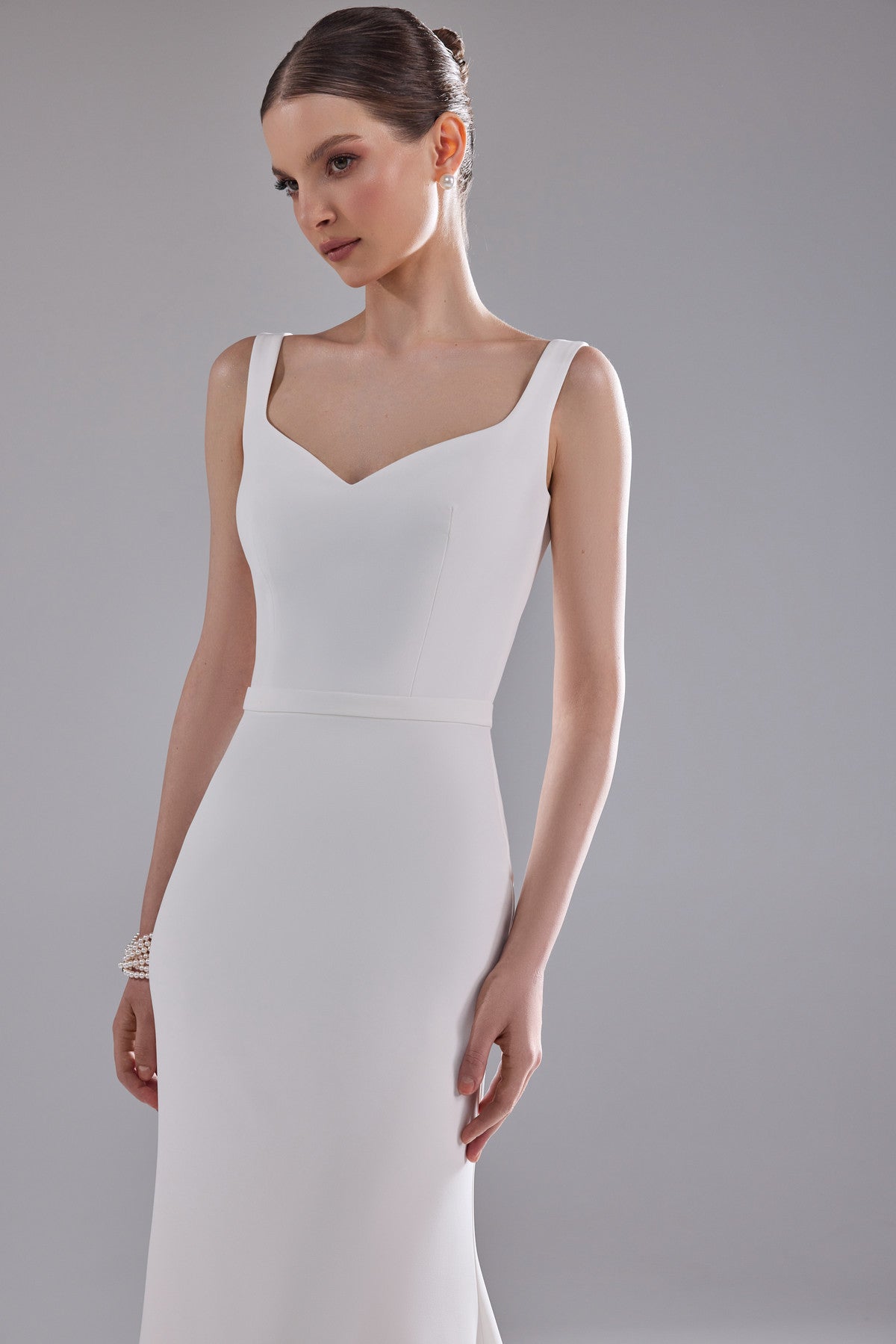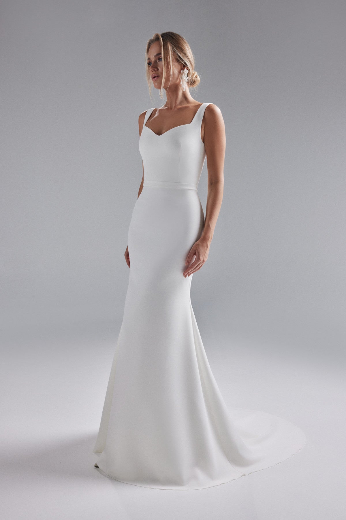 Crepe Fit & Flare Silhouette Wedding Dress With Long Train Justina