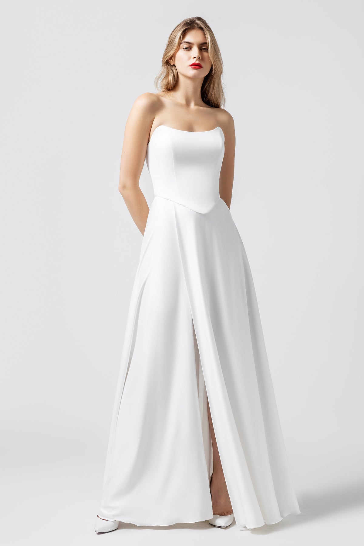 Custom-size gown is created based on customer measurements. To ensure a better fit, we recommend ordering the Custom Size option. Your dress will be individually tailor-made to fit your body shape. Our easy-to-use online Measurement Guide will help you set up your measurement profile within 10-15 minutes. Our tailors will review each measurement profile and alert you if any adjustments are needed. Please note that our custom sizing options should provide you with a good fit, especially for brides who are in between sizes. However, anticipate needing some local alterations for the perfect fit, whether you are purchasing a Standard size or a Custom size gown.