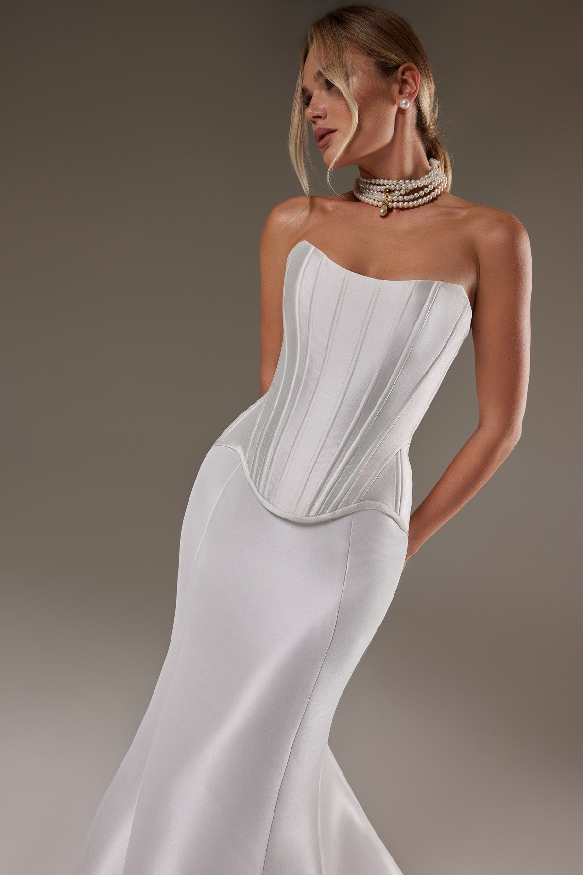 Custom-size gown is created based on customer measurements. To ensure a better fit, we recommend ordering the Custom Size option. Your dress will be individually tailor-made to fit your body shape. Our easy-to-use online Measurement Guide will help you set up your measurement profile within 10-15 minutes. Our tailors will review each measurement profile and alert you if any adjustments are needed. Please note that our custom sizing options should provide you with a good fit, especially for brides who are in between sizes. However, anticipate needing some local alterations for the perfect fit, whether you are purchasing a Standard size or a Custom size gown.