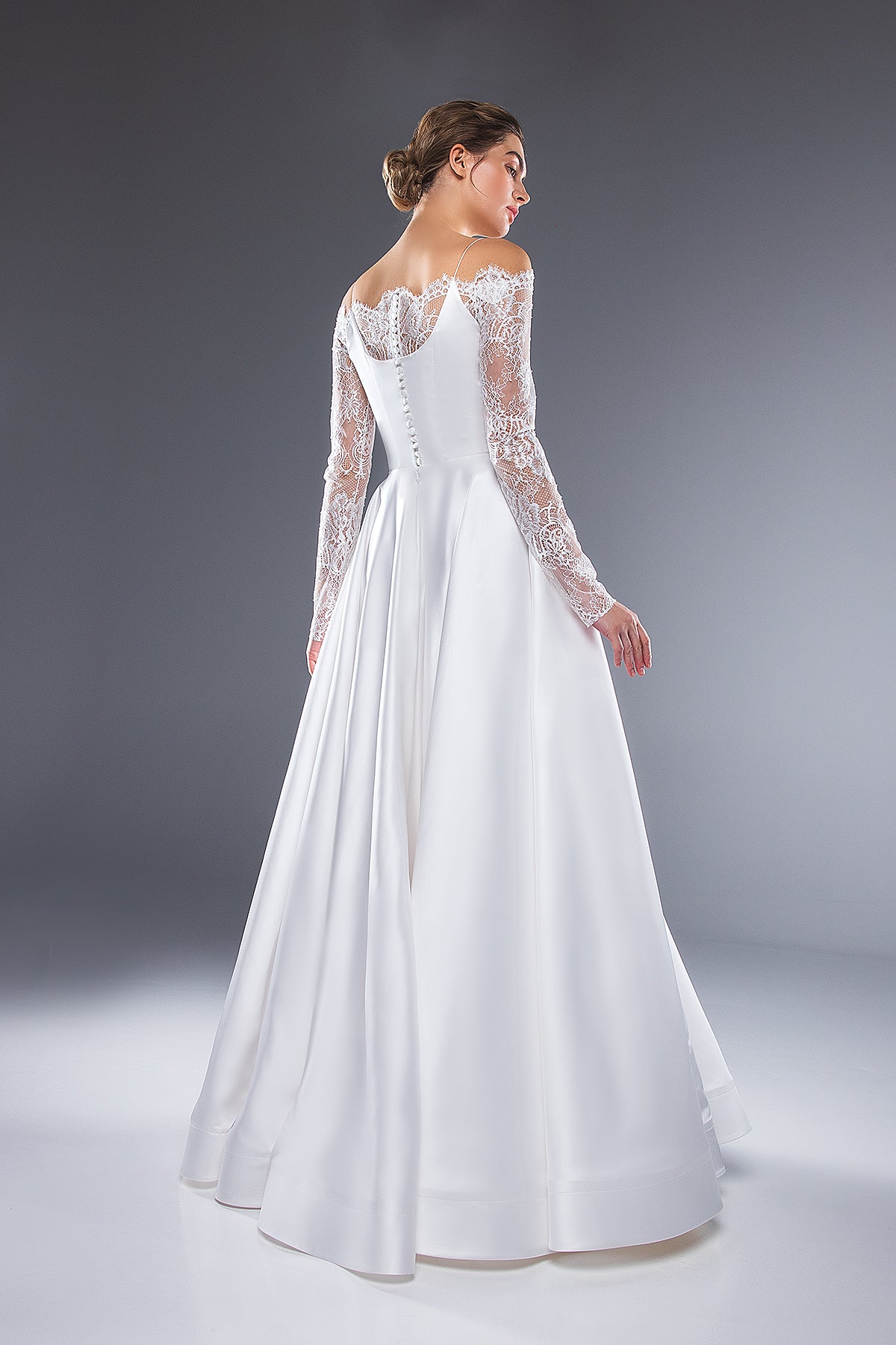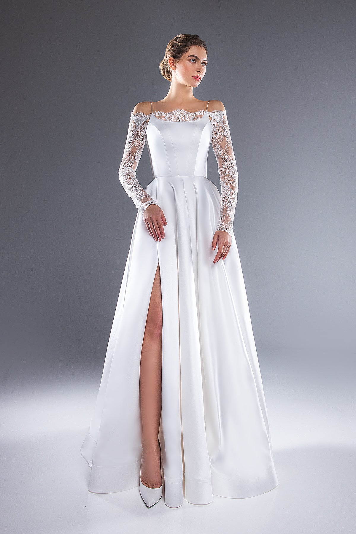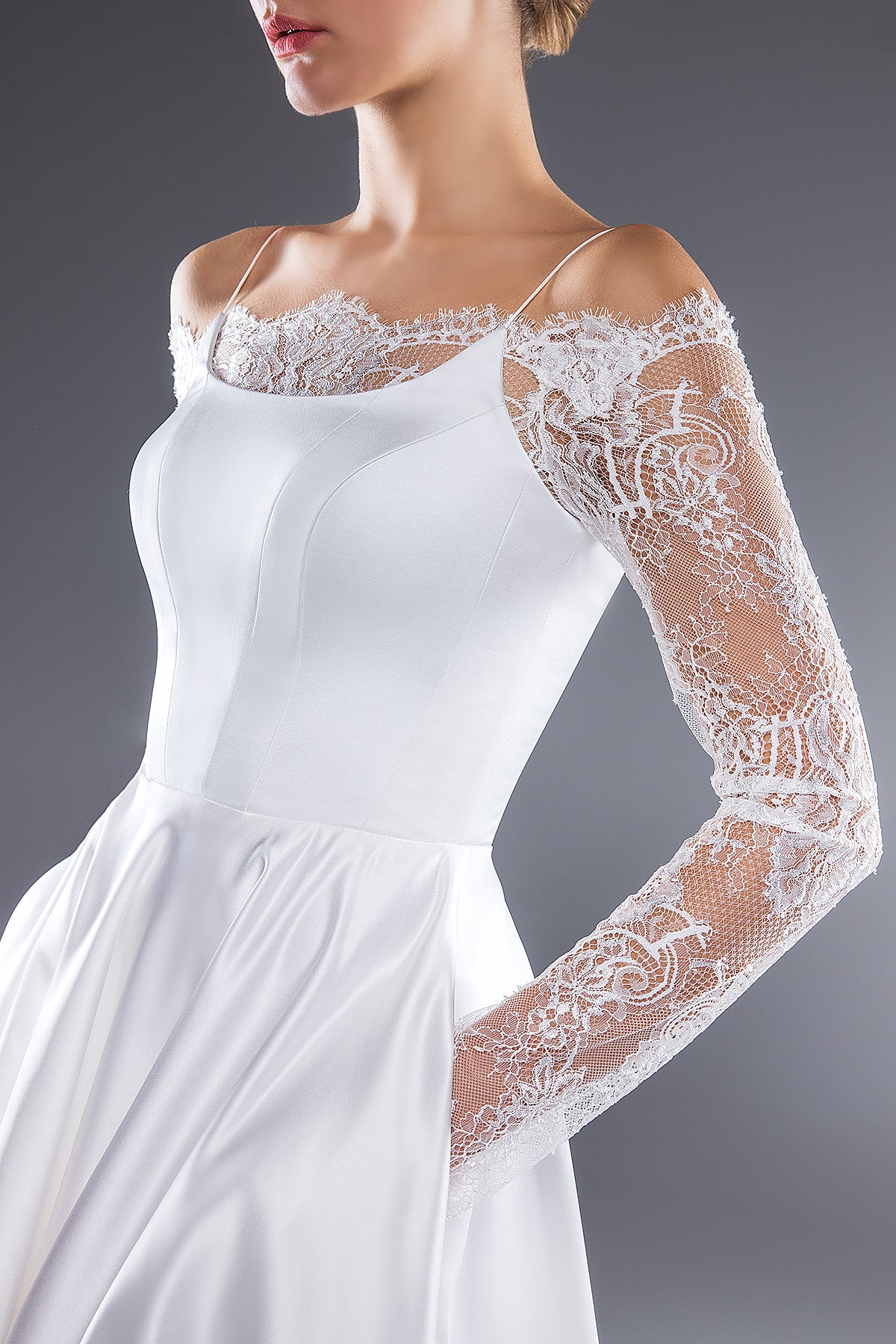 Modern Satin Wedding Dress With Lace Sleeves Miranda