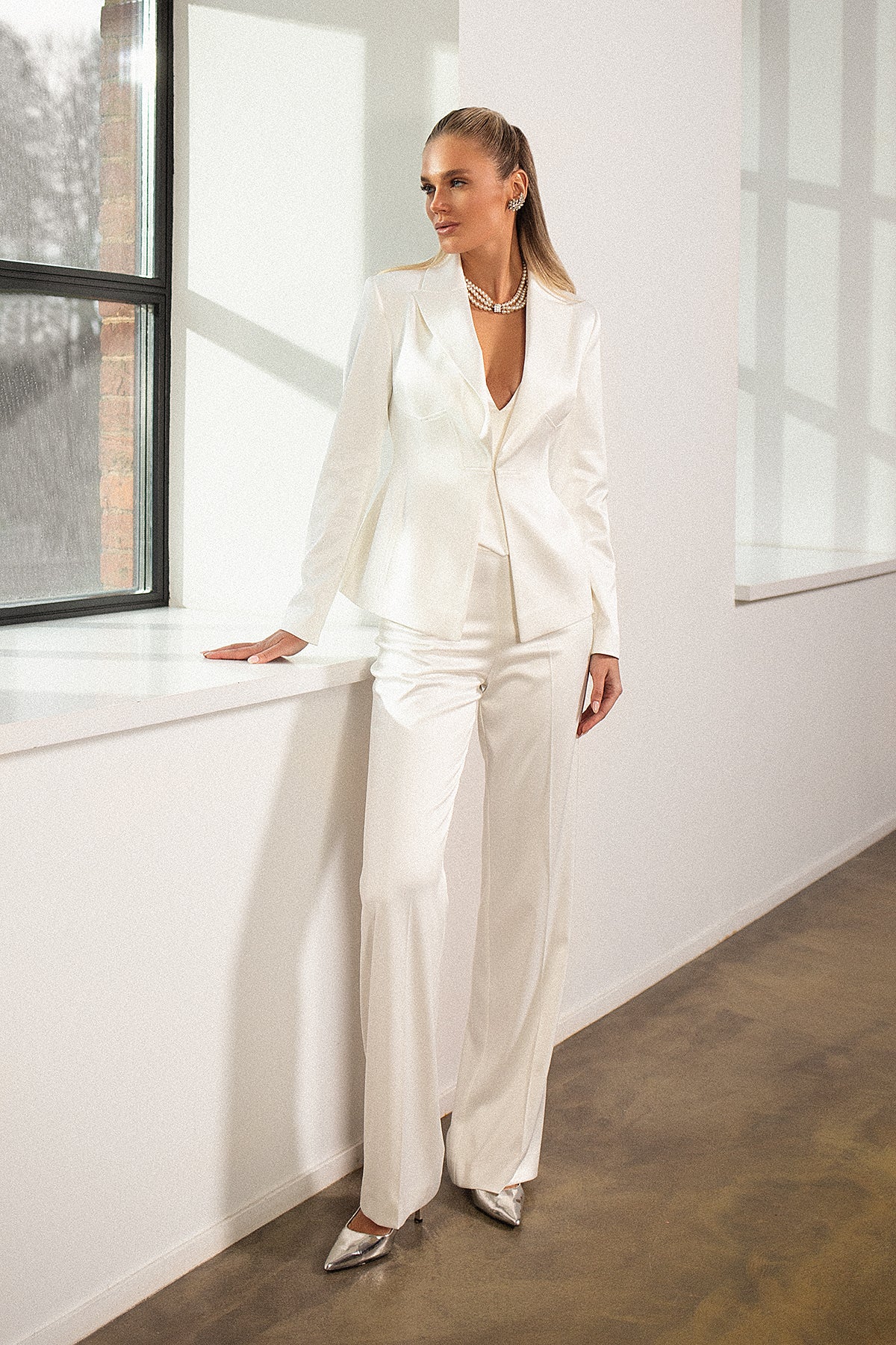 Wedding suits for women are on the rise. Tailoring has taken over women's clothing in the past few years, creeping into dress codes everywhere, from offices to dinner parties. Made from luxurious stretch satin, this set includes gently-flared pants and a sculpted one-button blazer with statement details. A satin drop waist corset completes the look - it's a great investment that will be worth every penny!