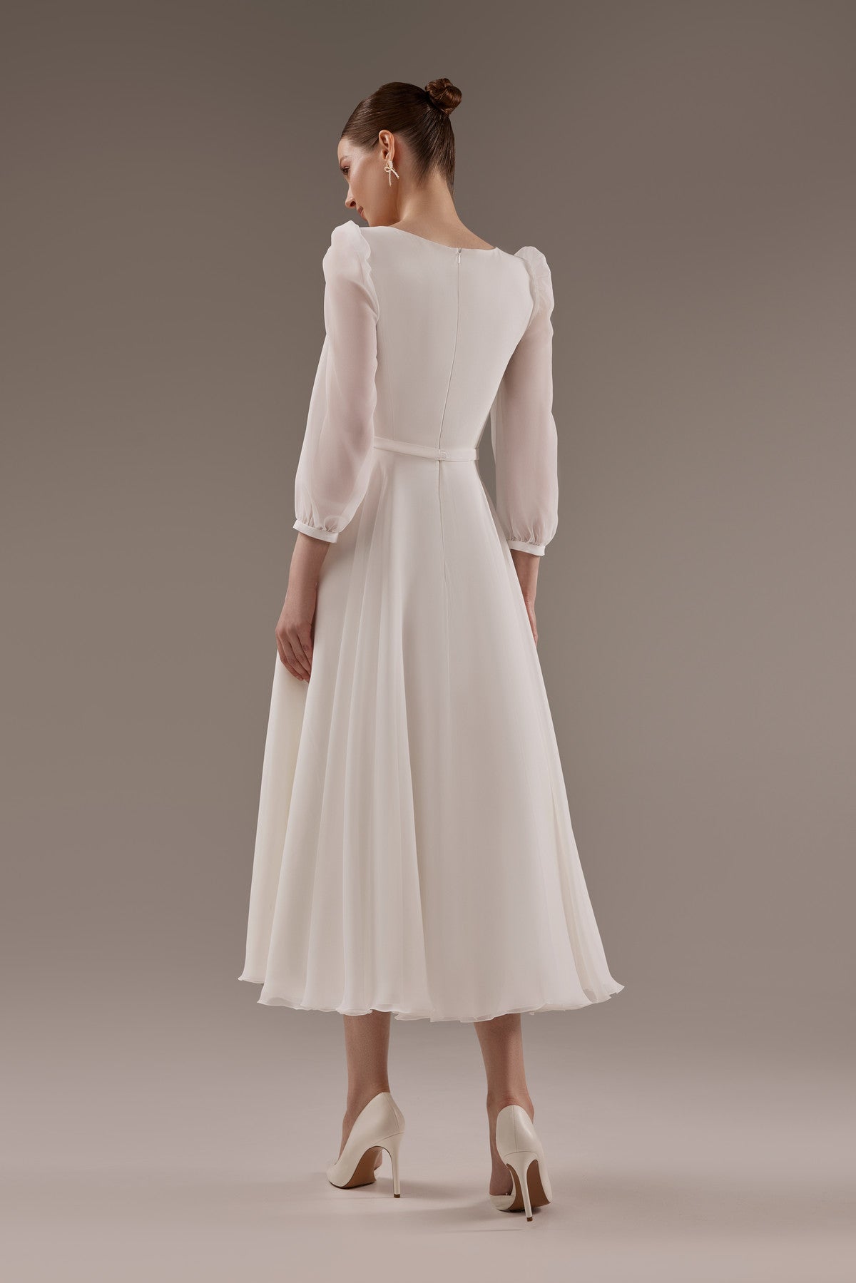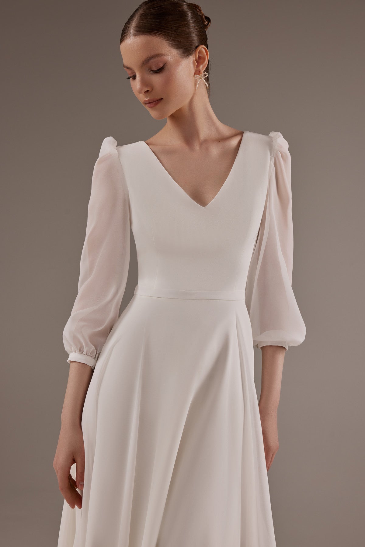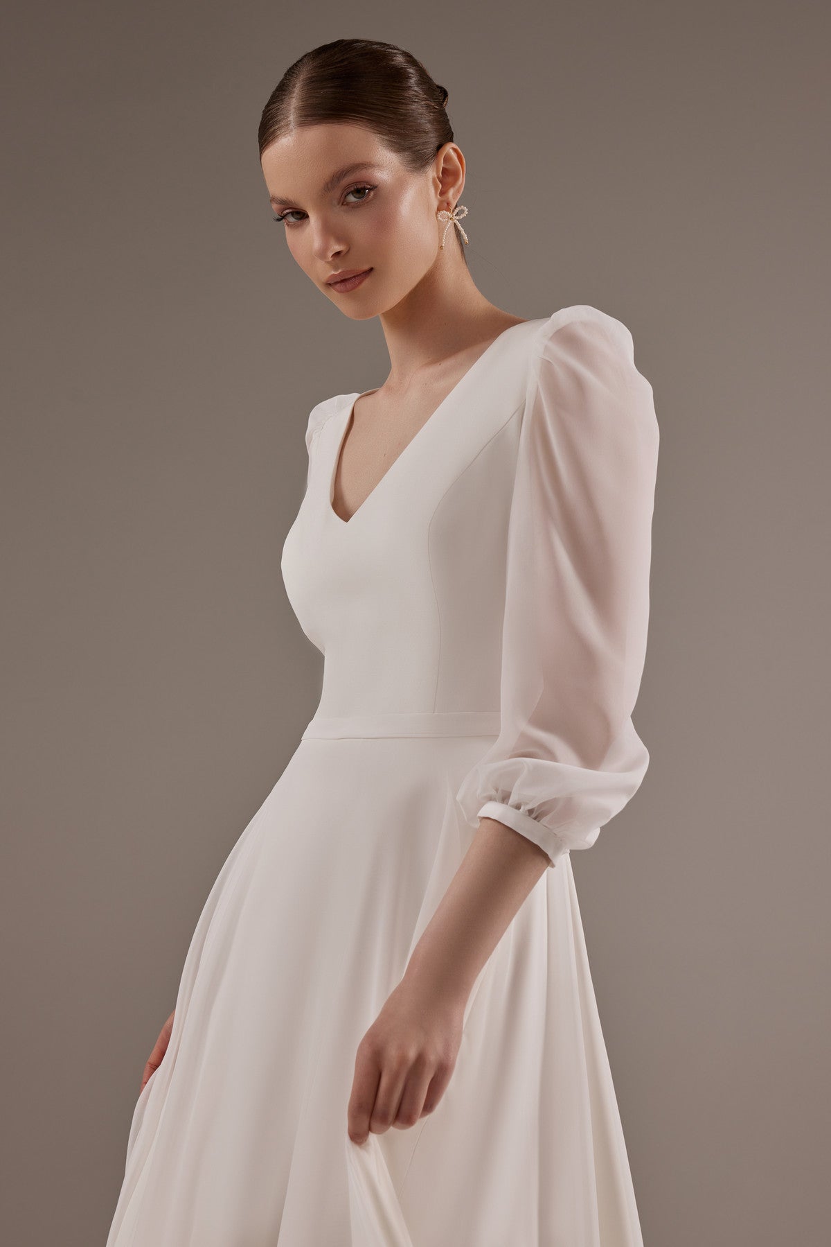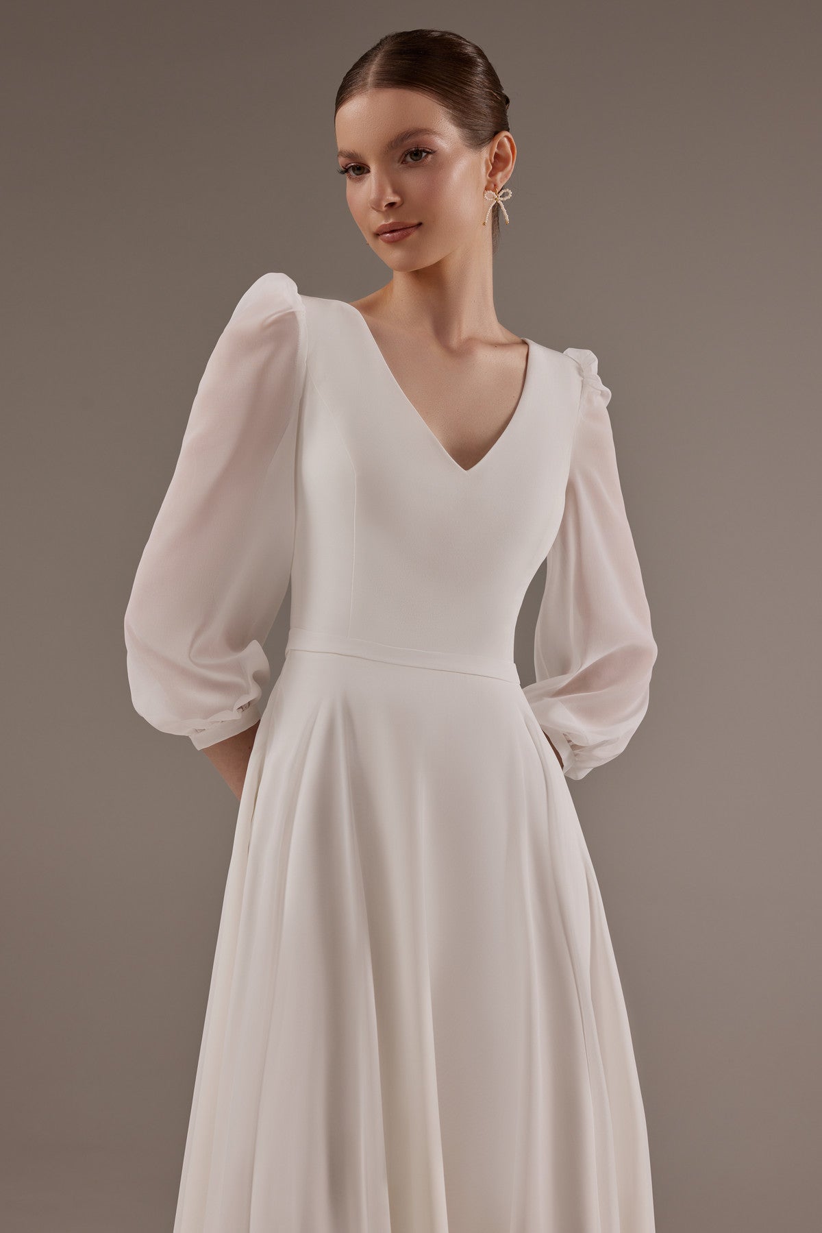 Modest A-line Midi Wedding Dress Valerie with Chiffon Sleeves