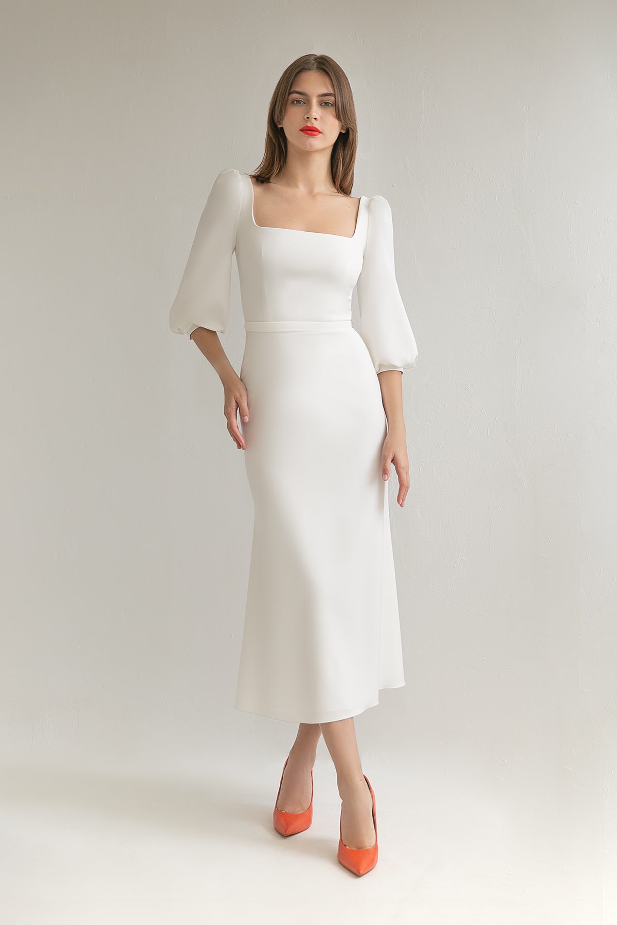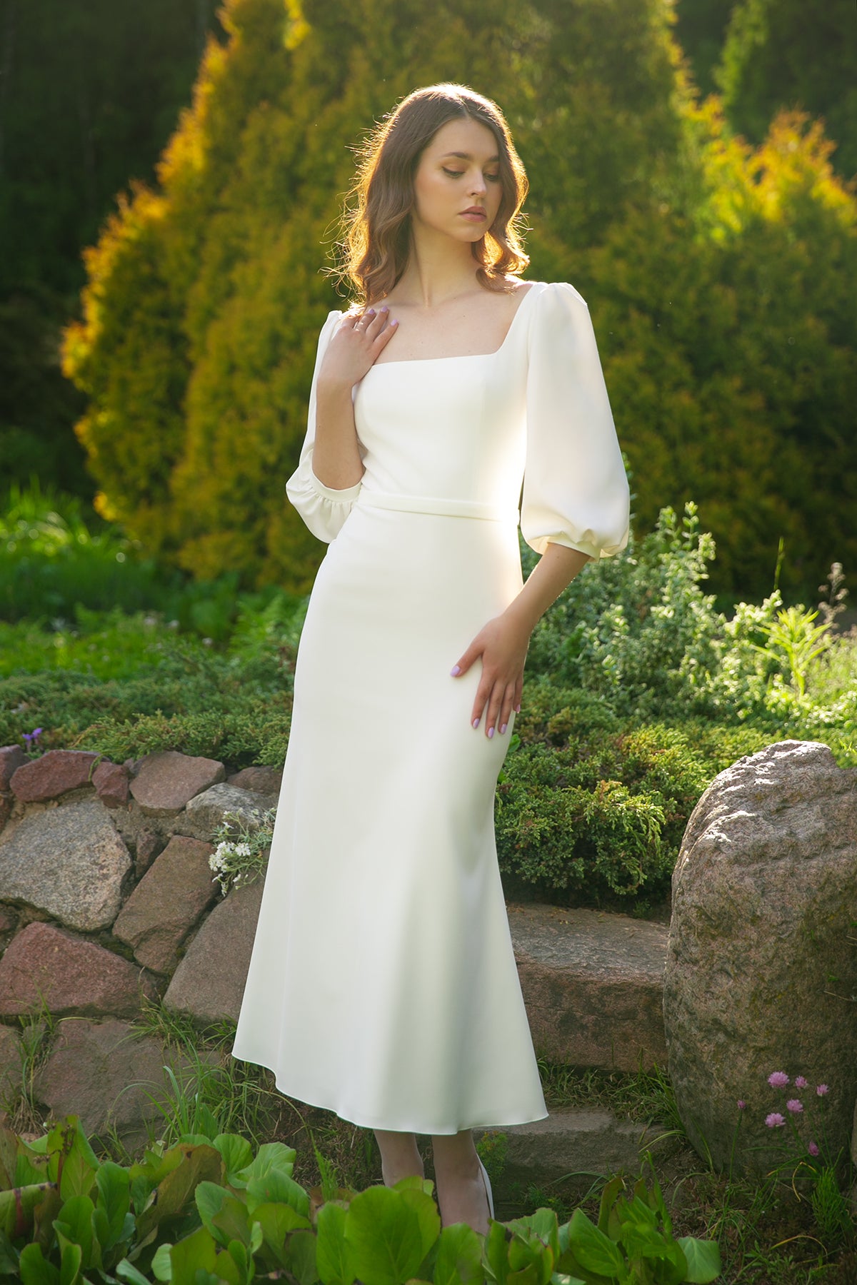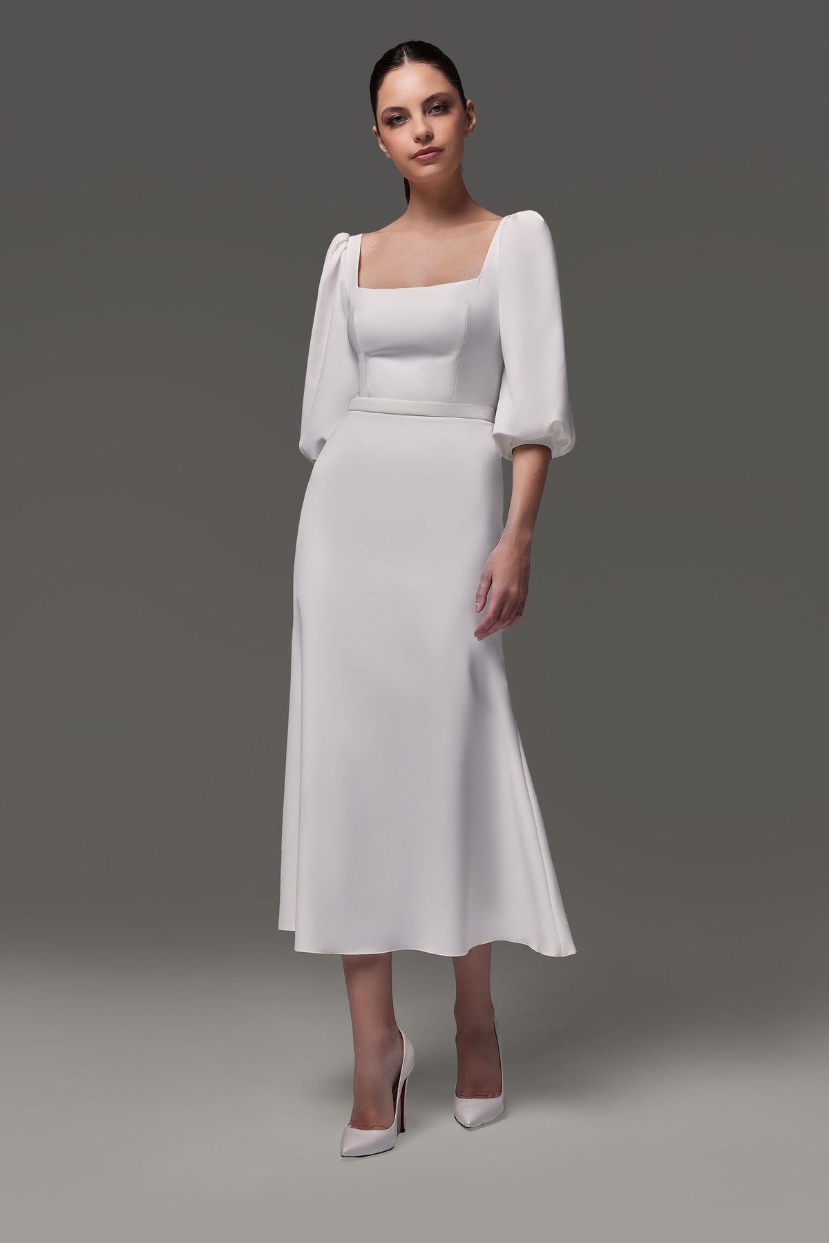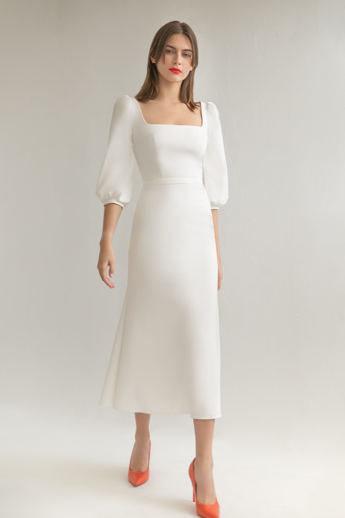 Midi Square Neck Wedding Dress With Bishop Sleeves Tilda