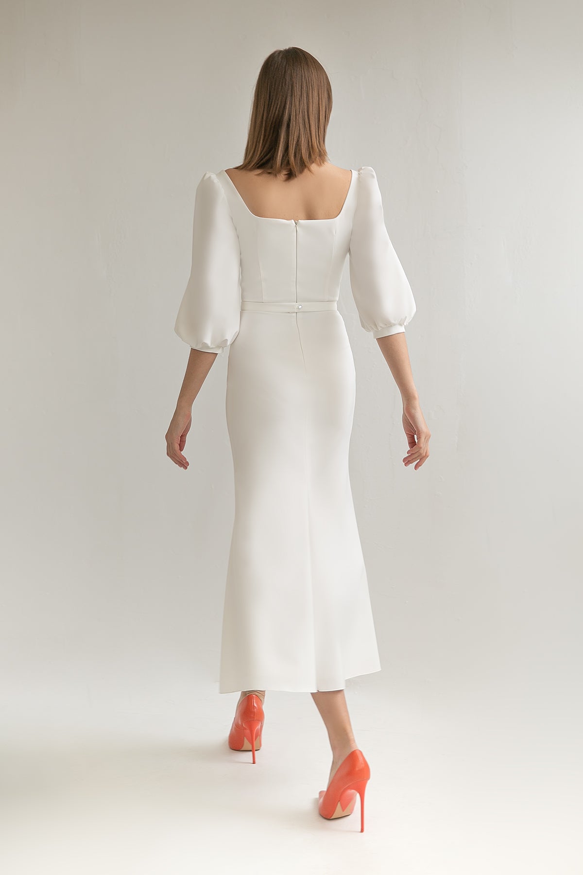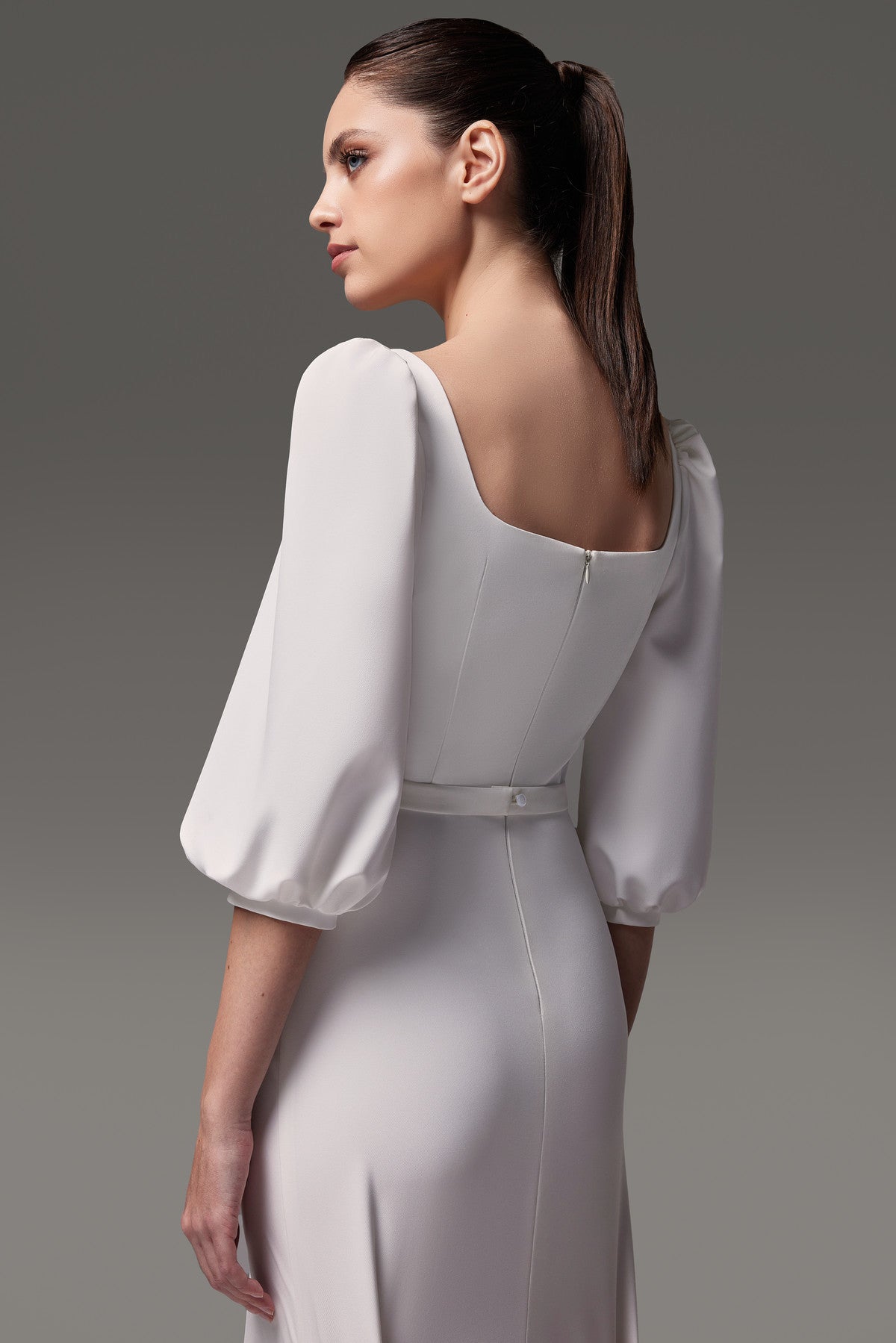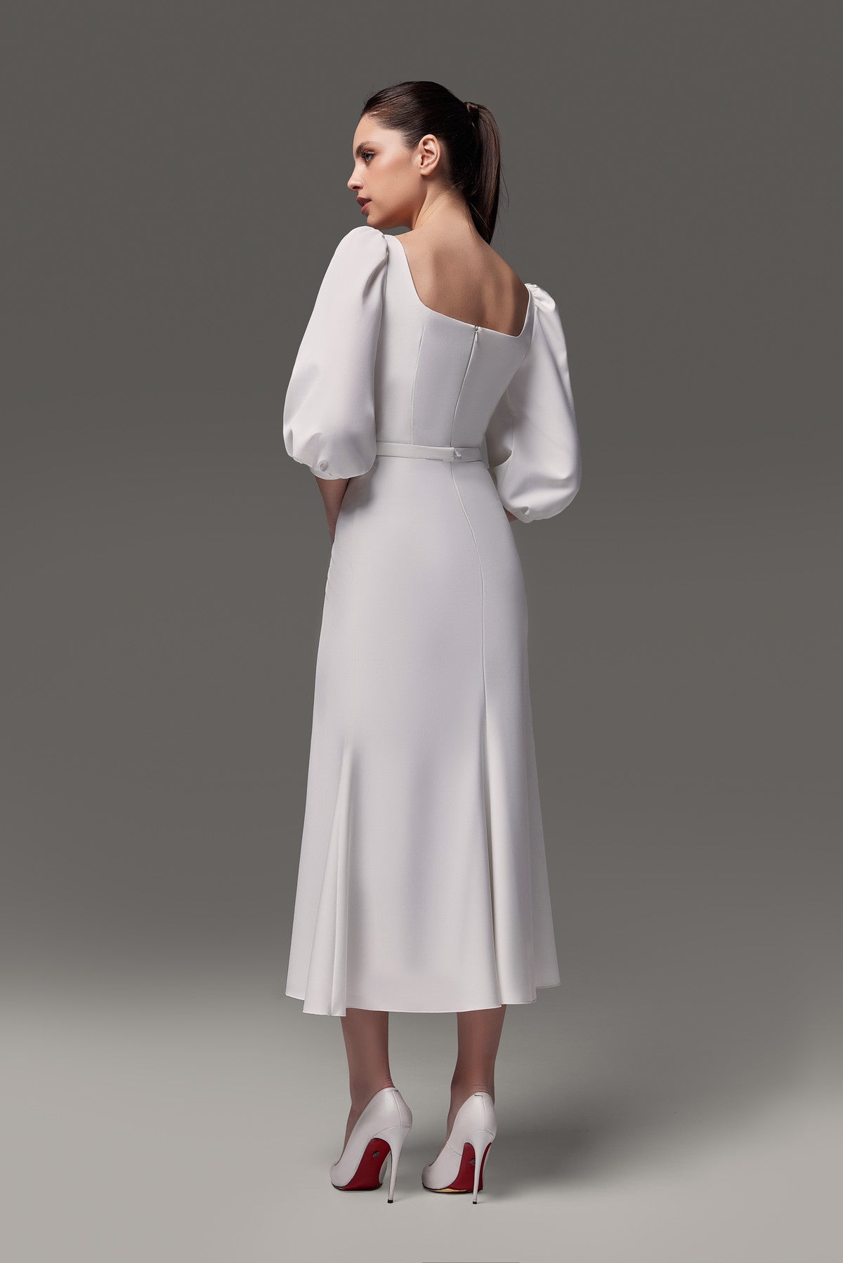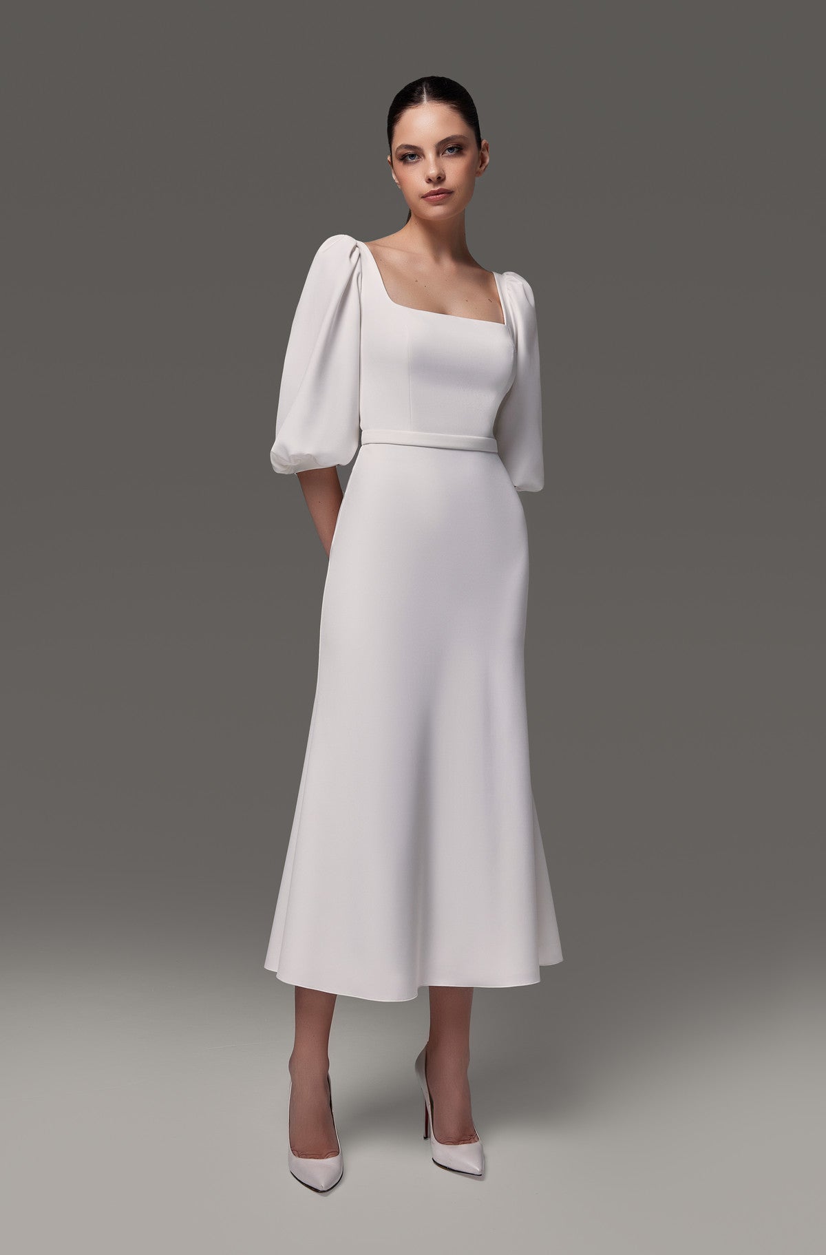 Midi Square Neck Wedding Dress With Bishop Sleeves Tilda