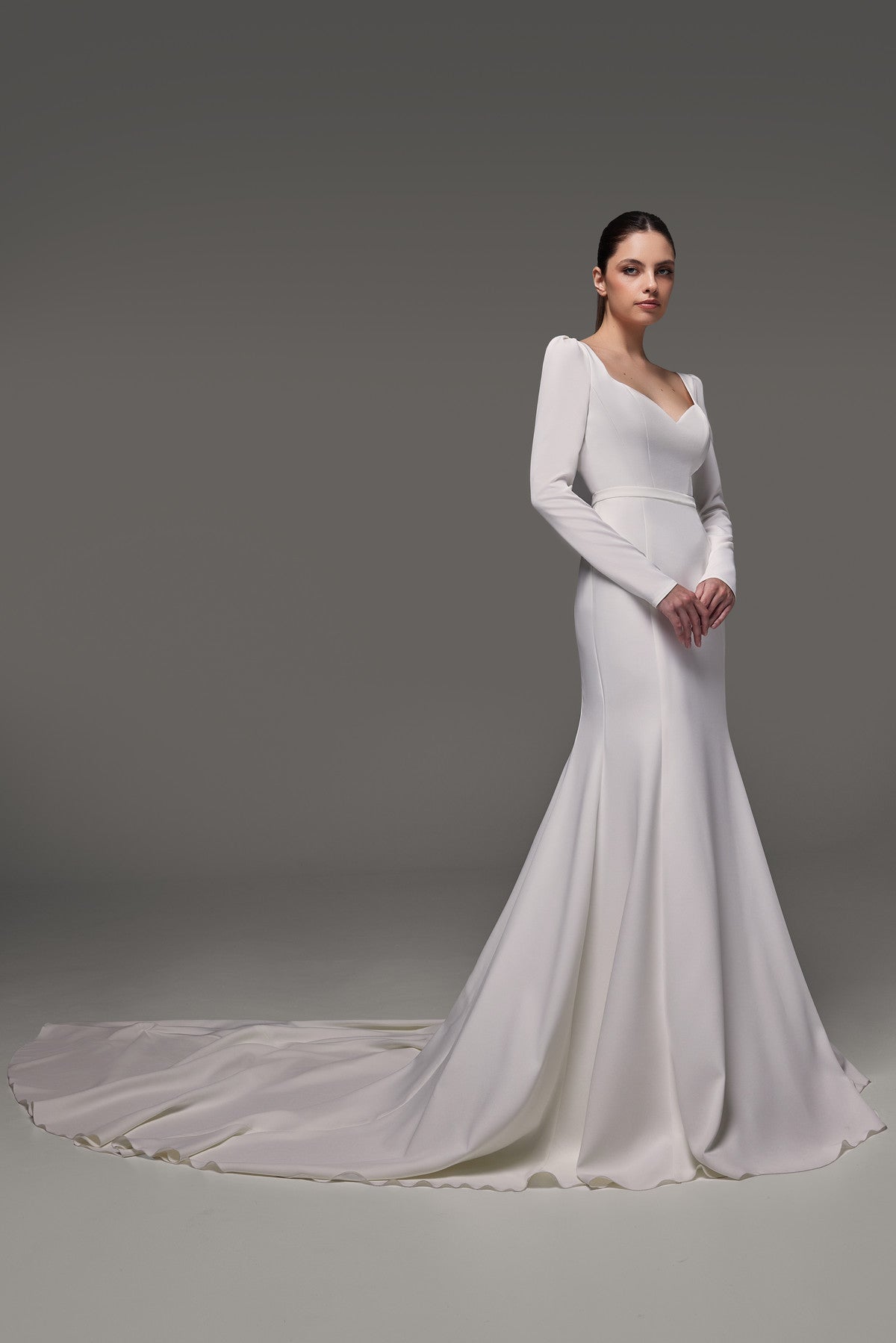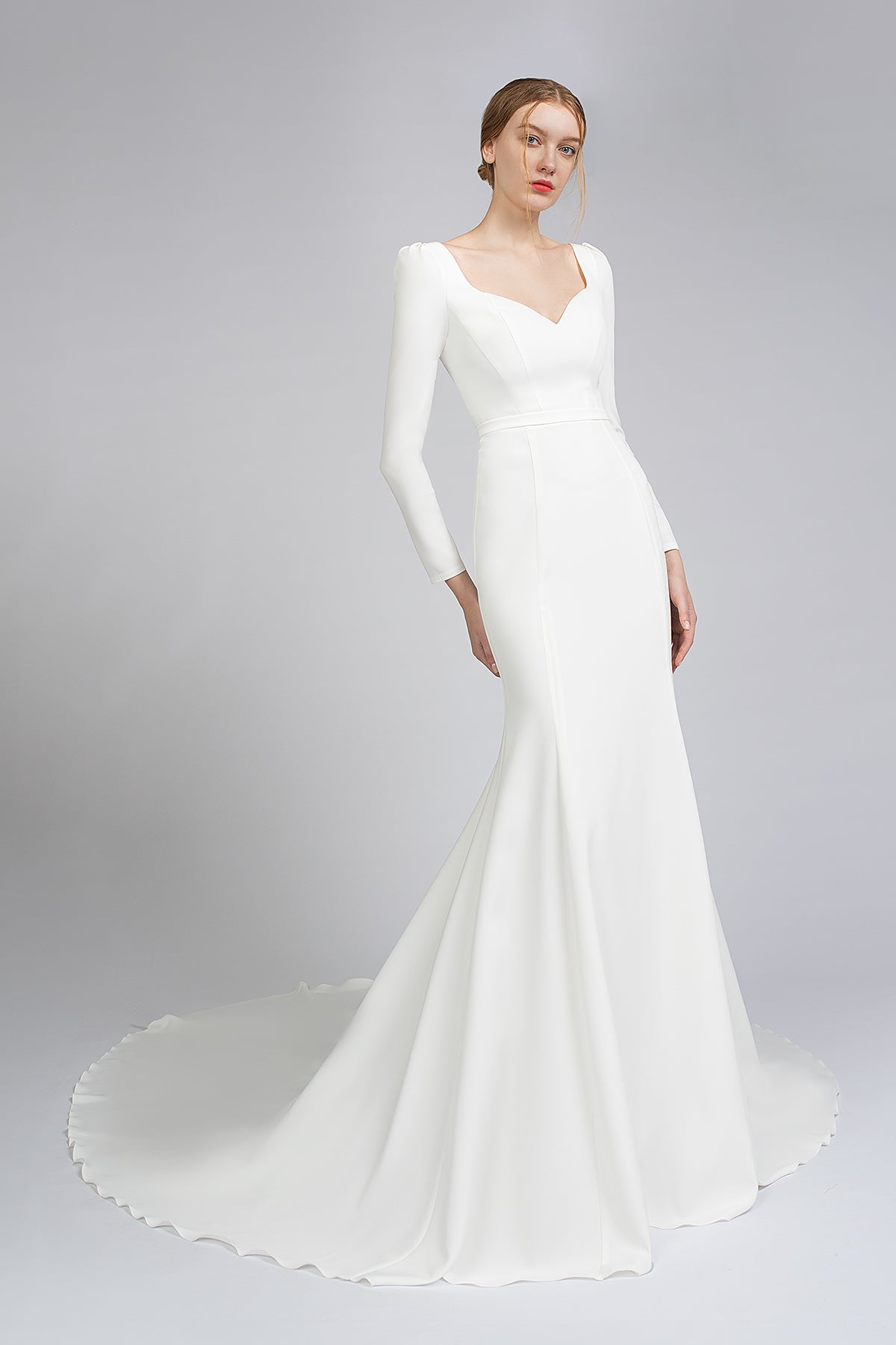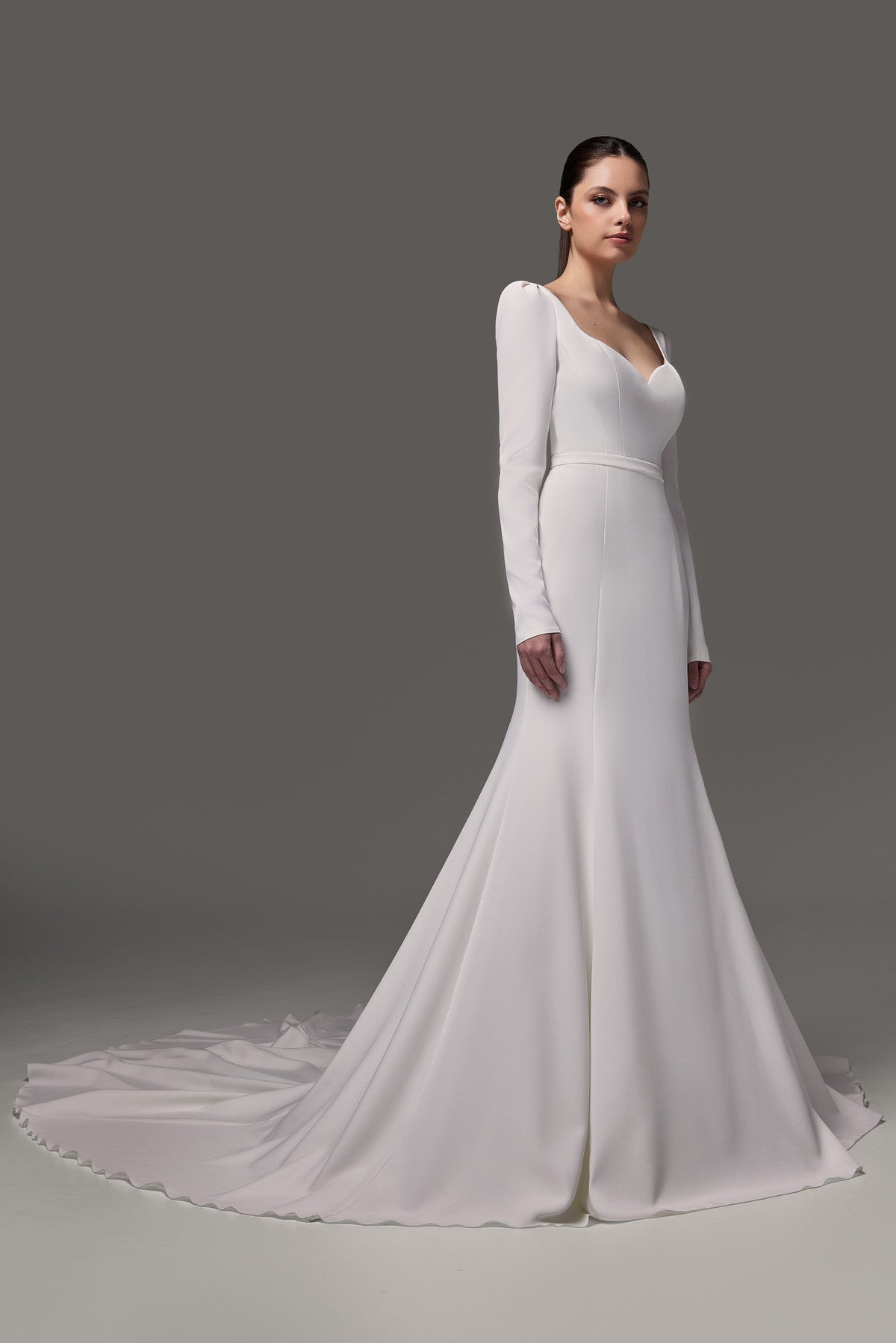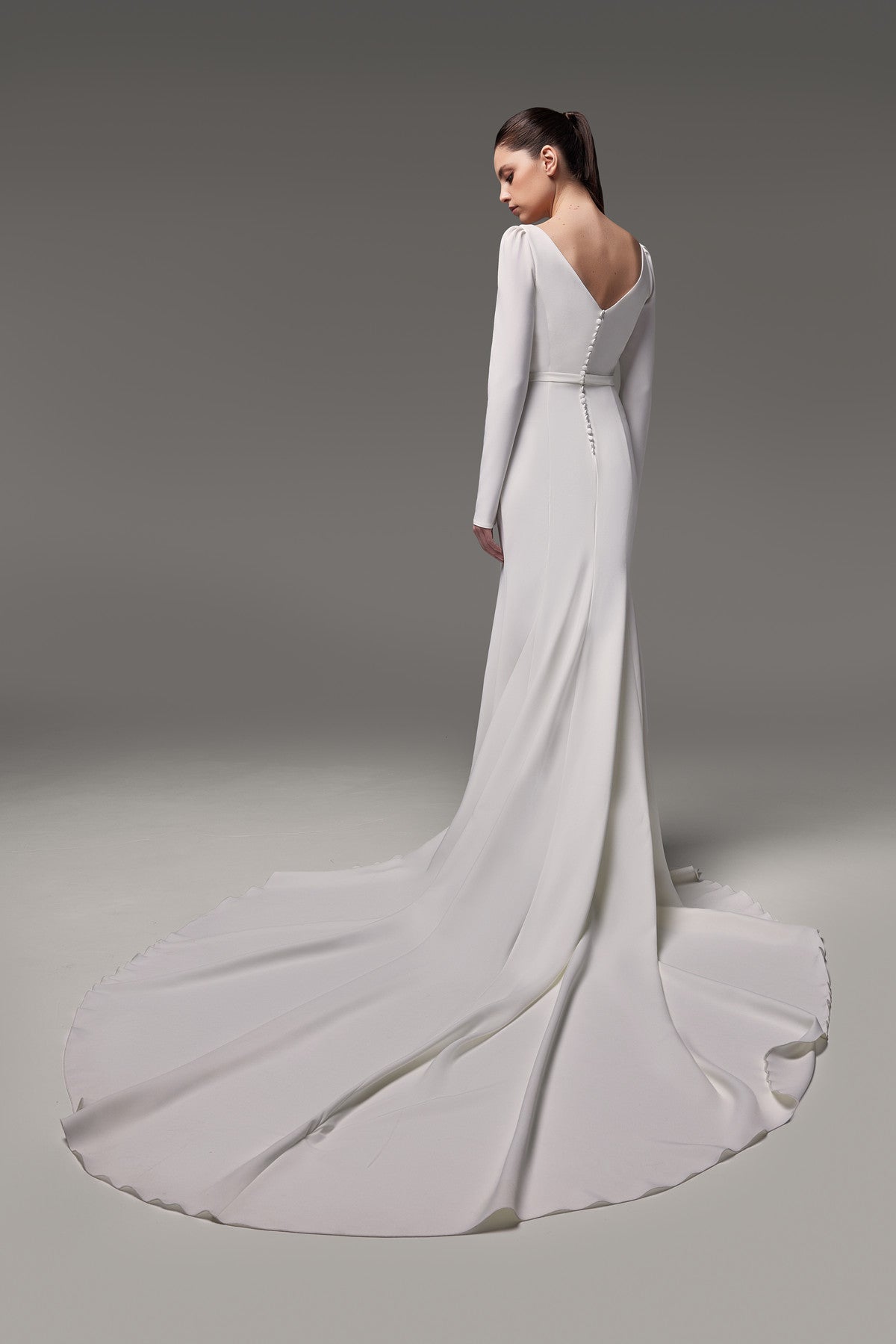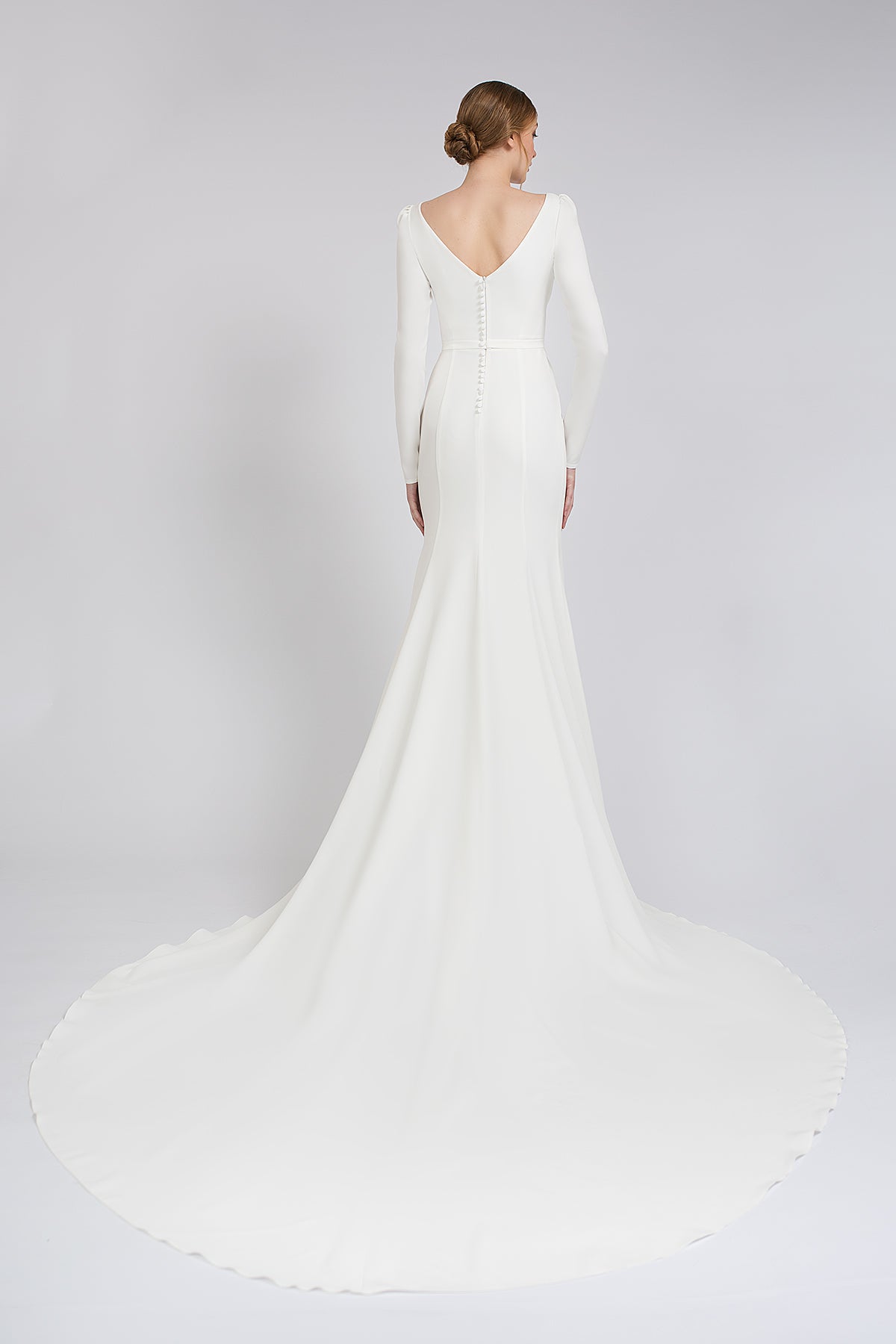 Crepe Wedding Dress With Long Sleeves and Cathedral Train Noomi