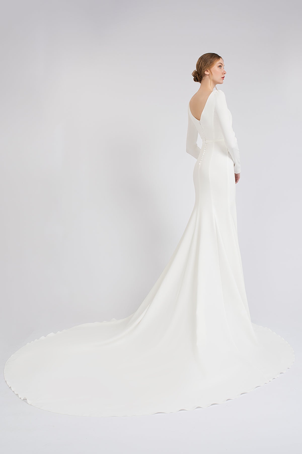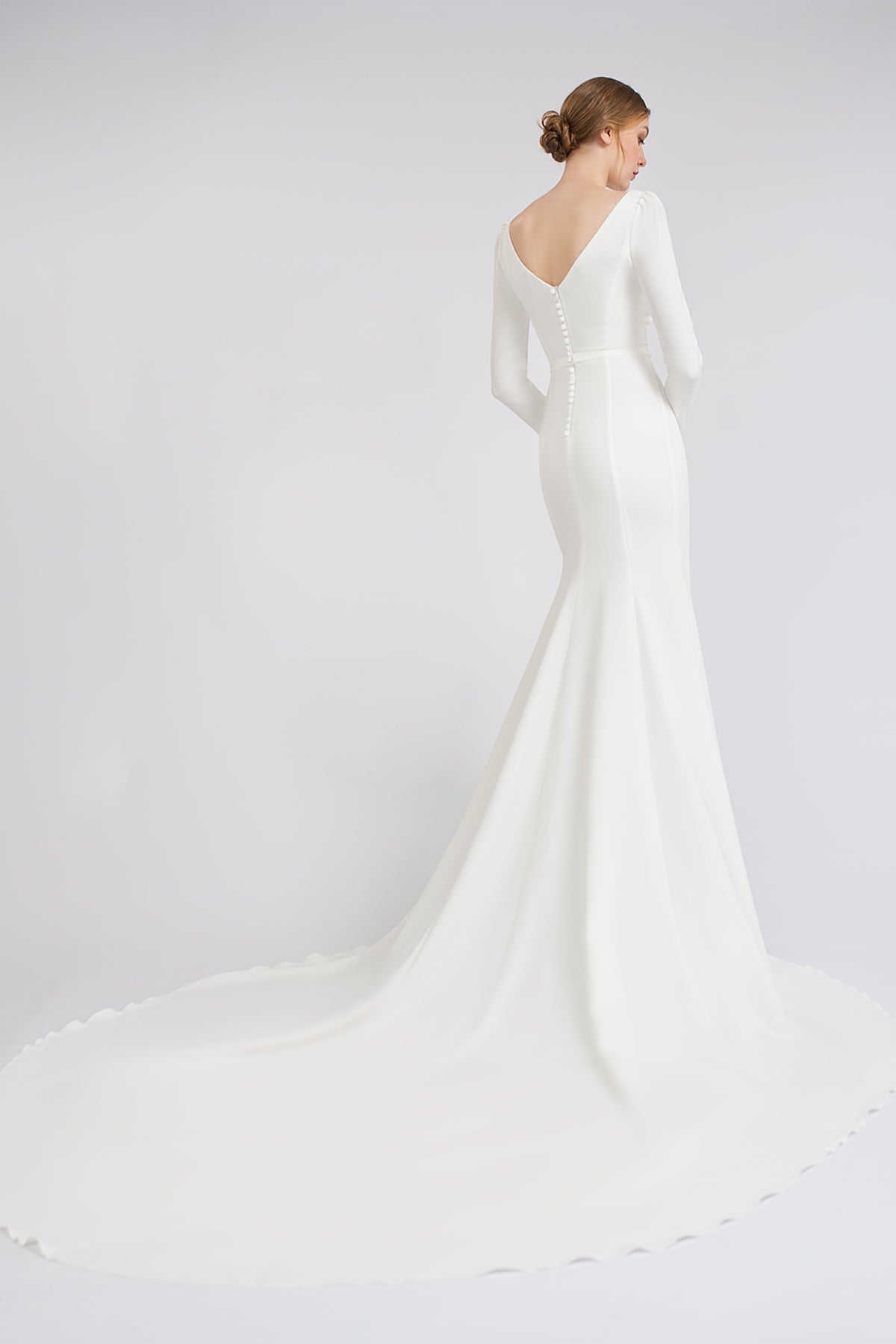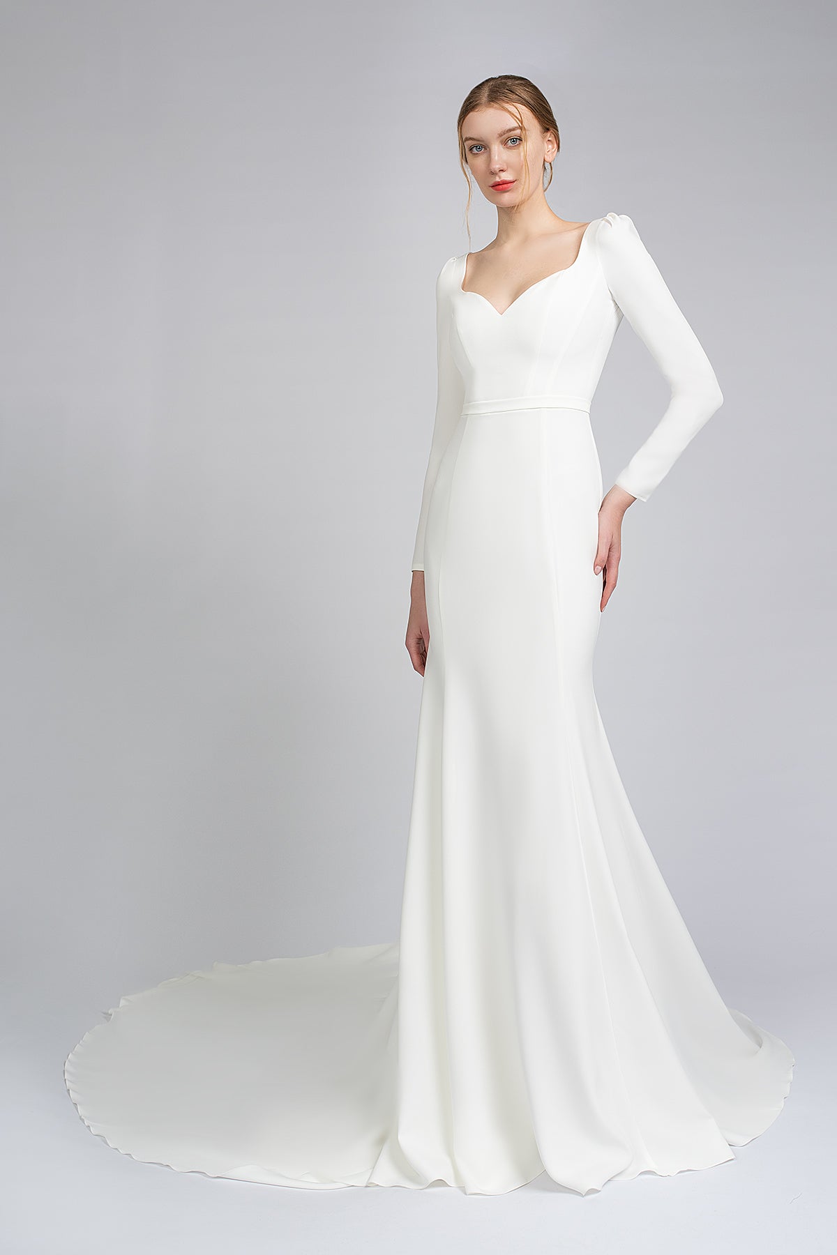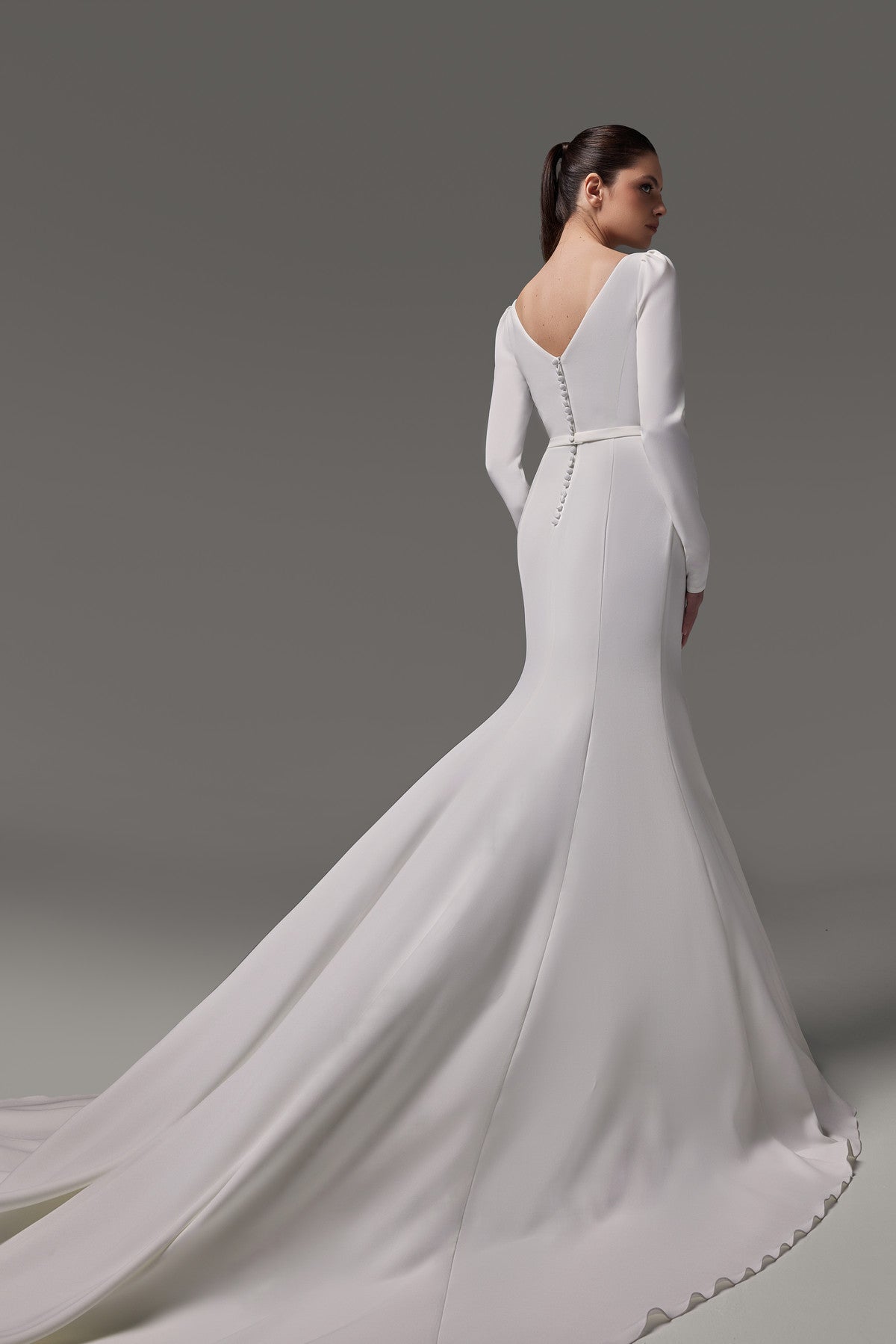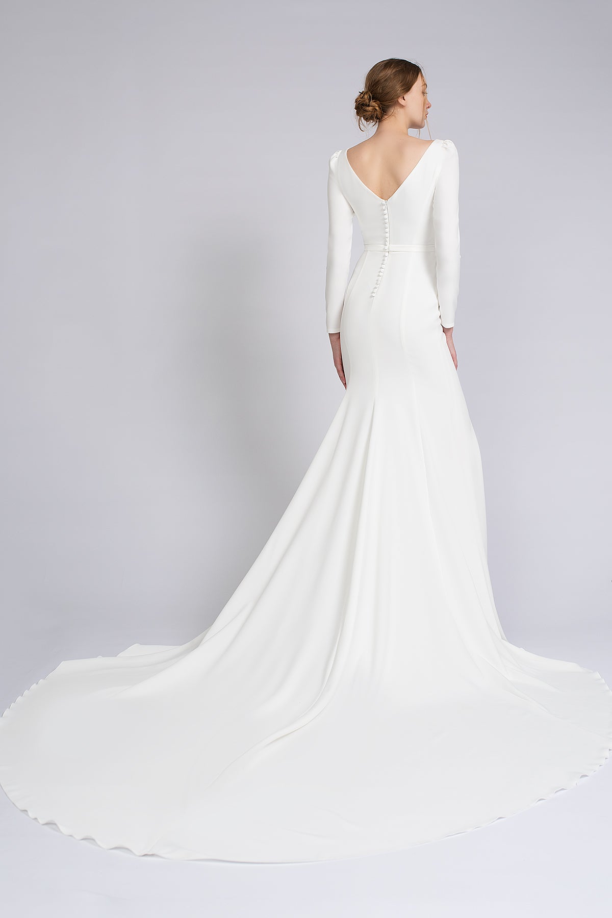 Crepe Wedding Dress With Long Sleeves and Cathedral Train Noomi