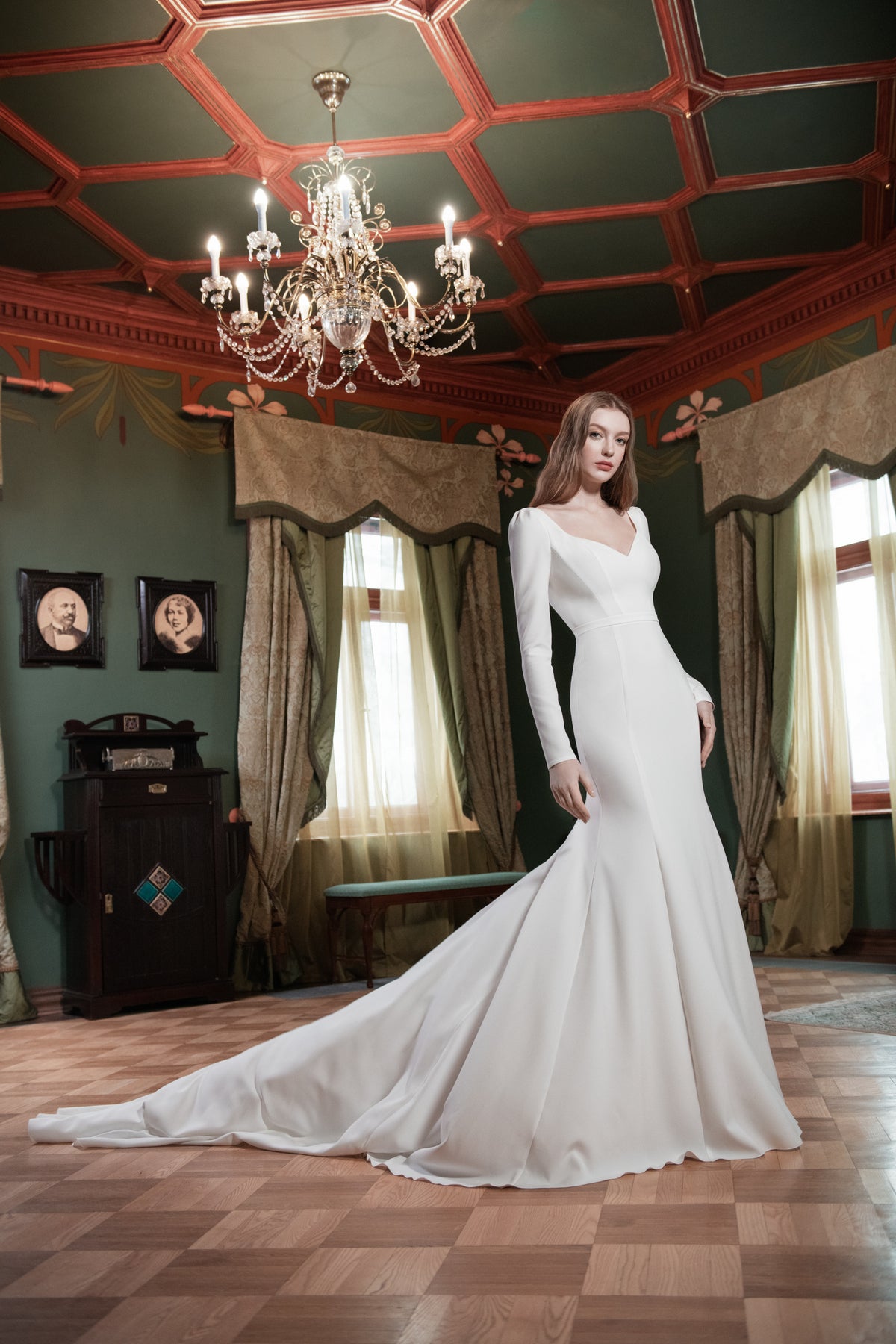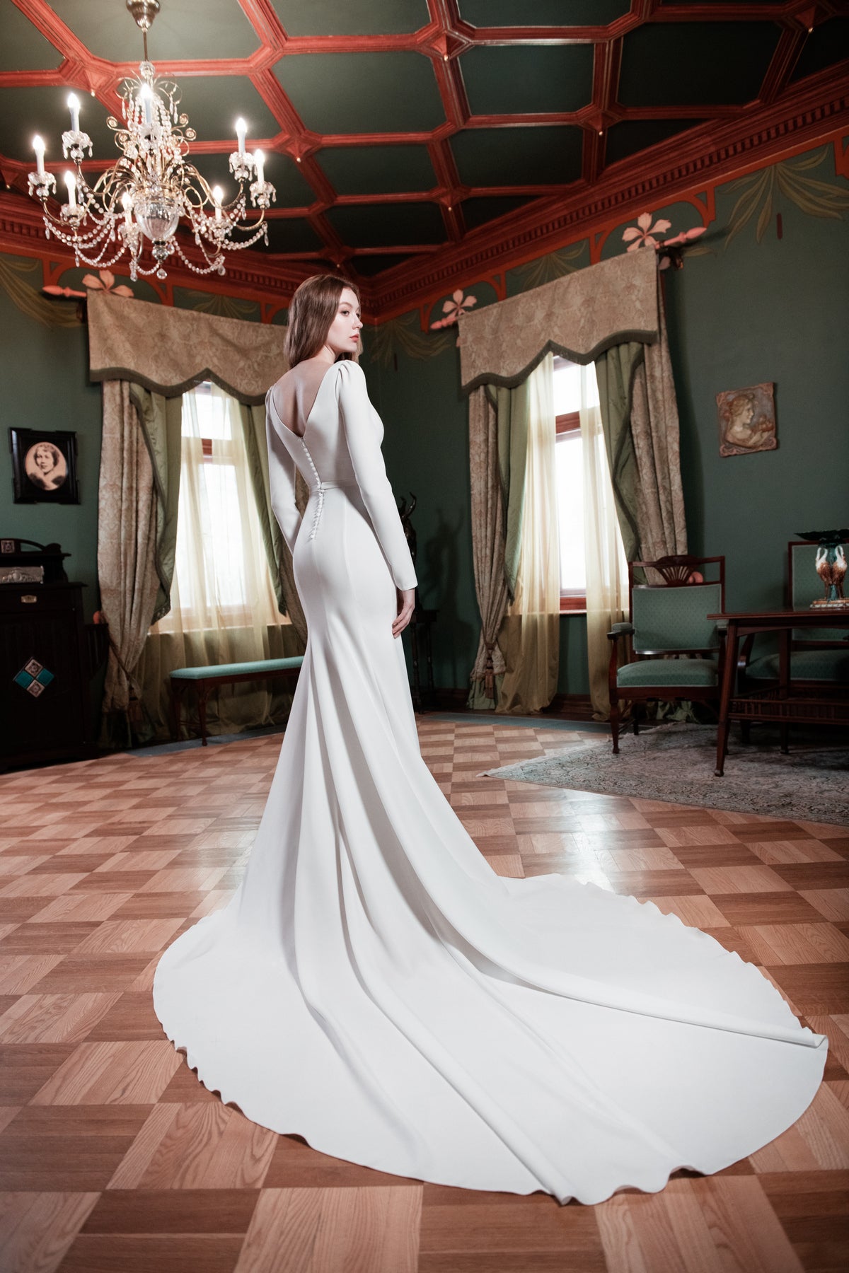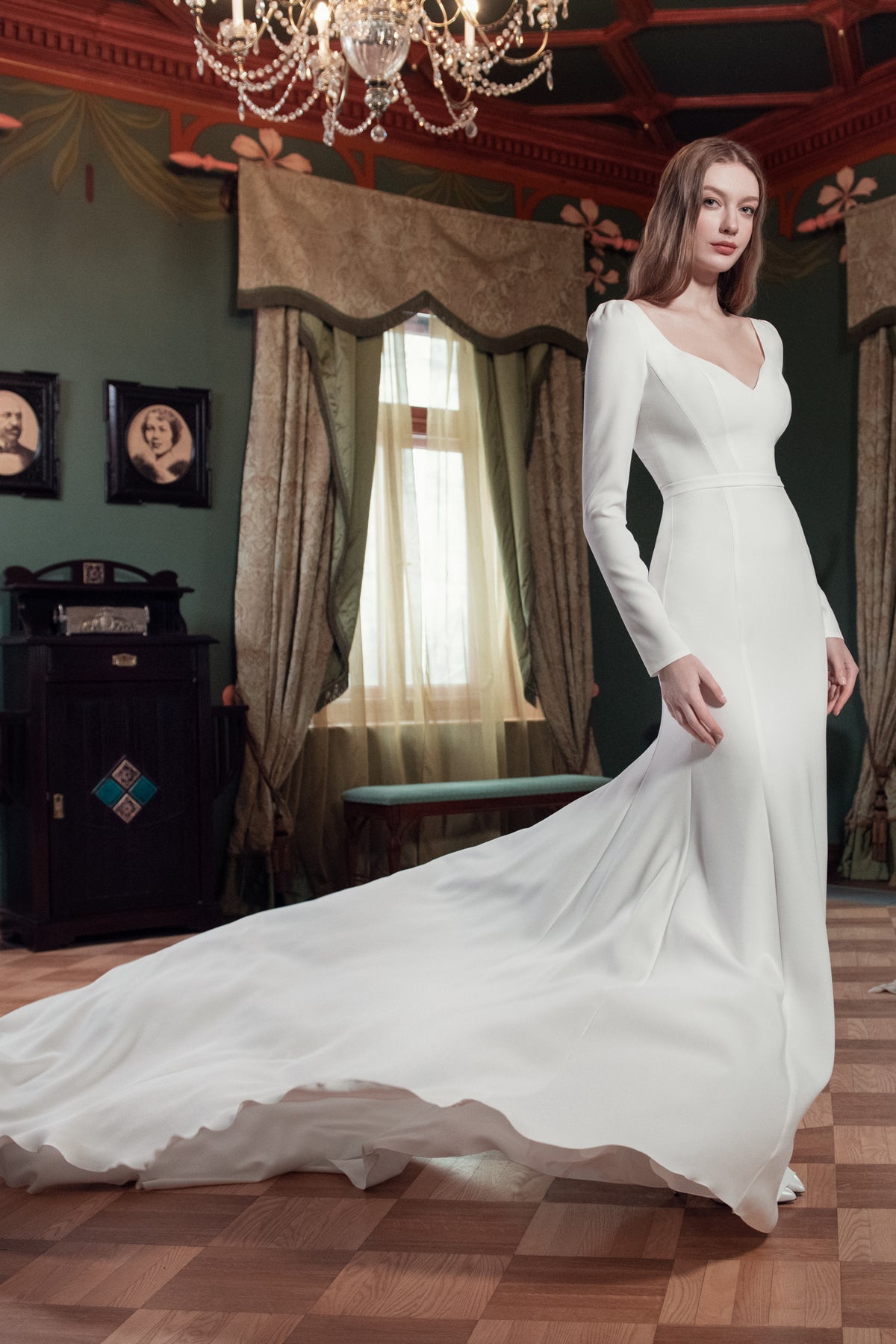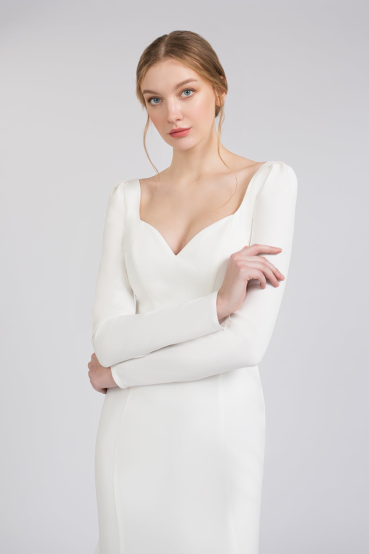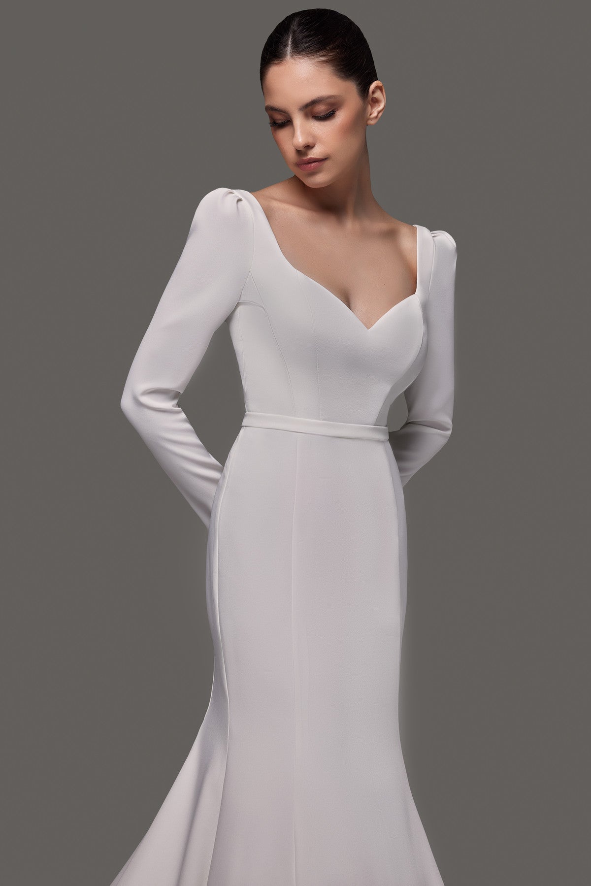 Crepe Wedding Dress With Long Sleeves and Cathedral Train Noomi