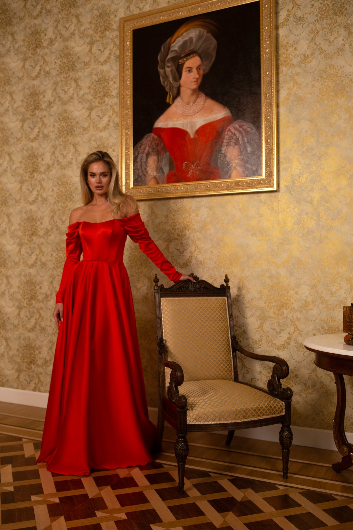 Off-Shoulder Red Maxi Evening Gown Tiana