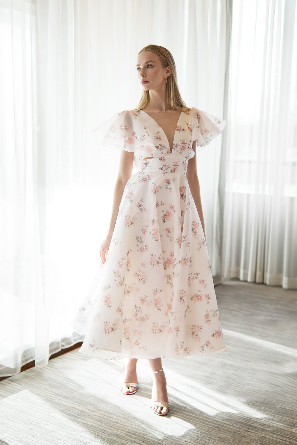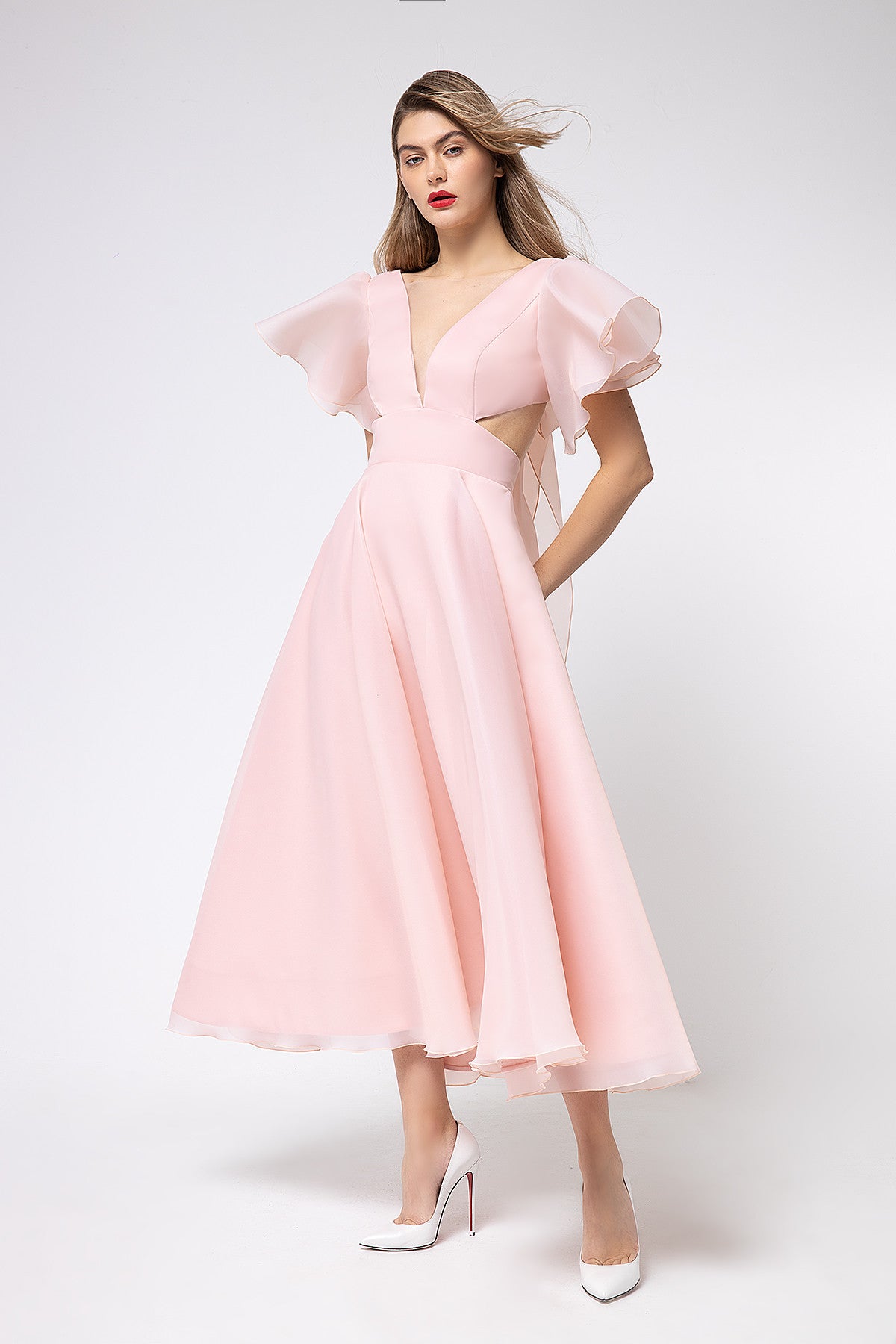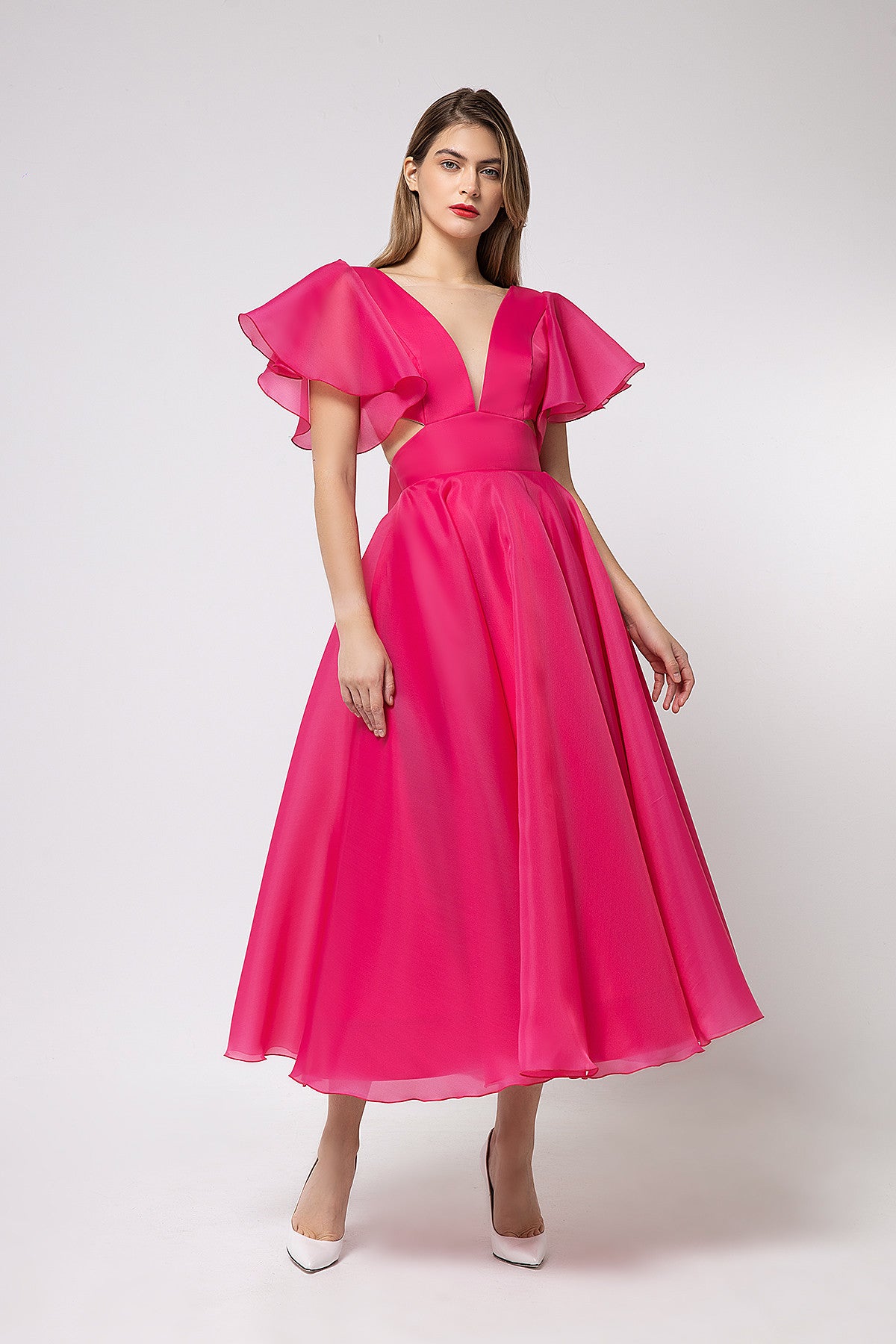 Organza Midi Plunging Neckline Cut Out Dress Eulalia