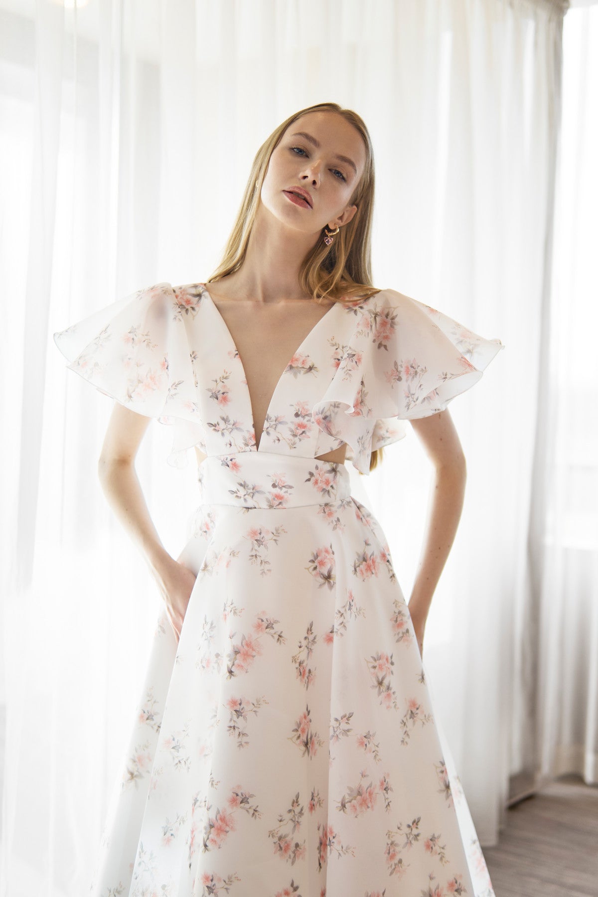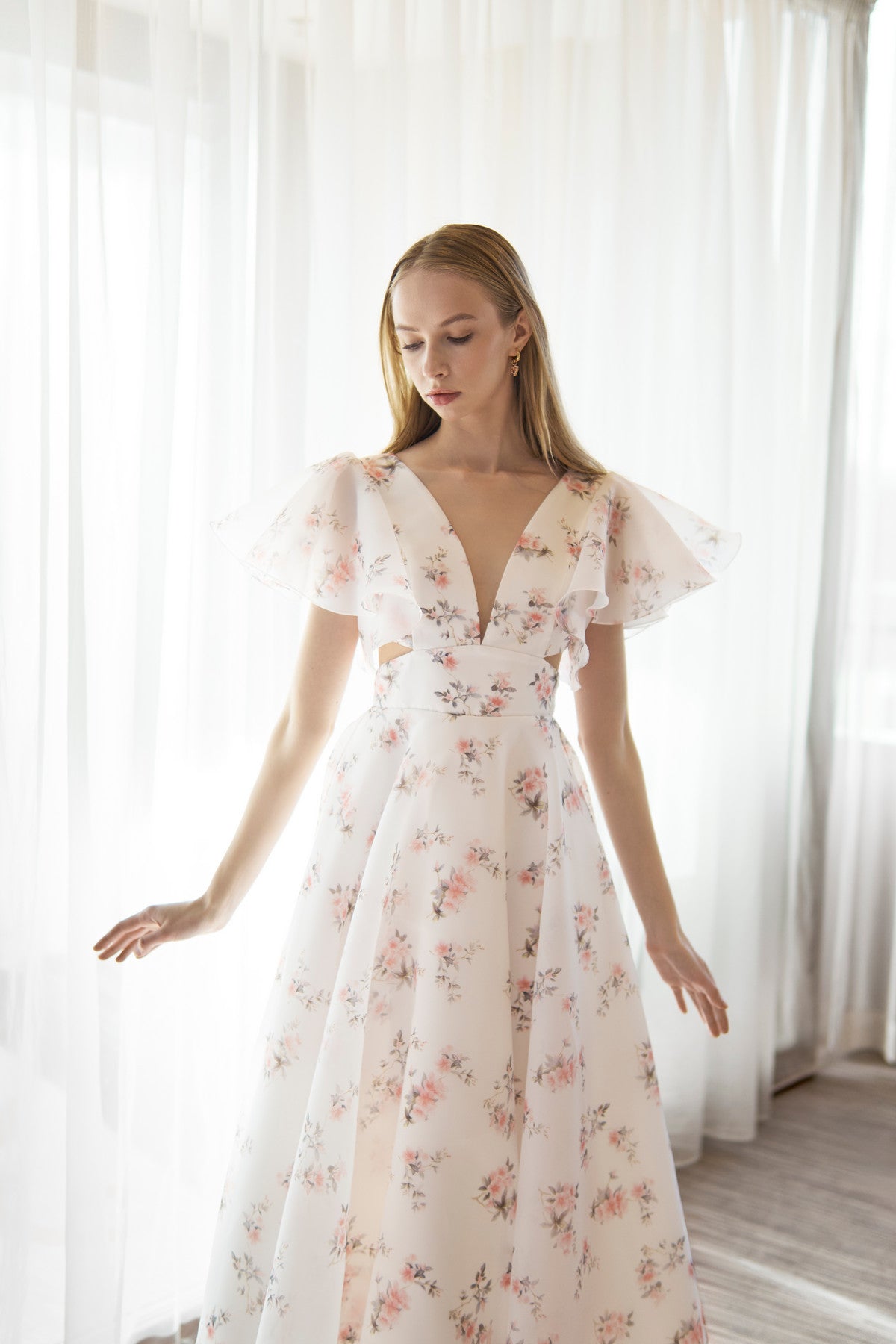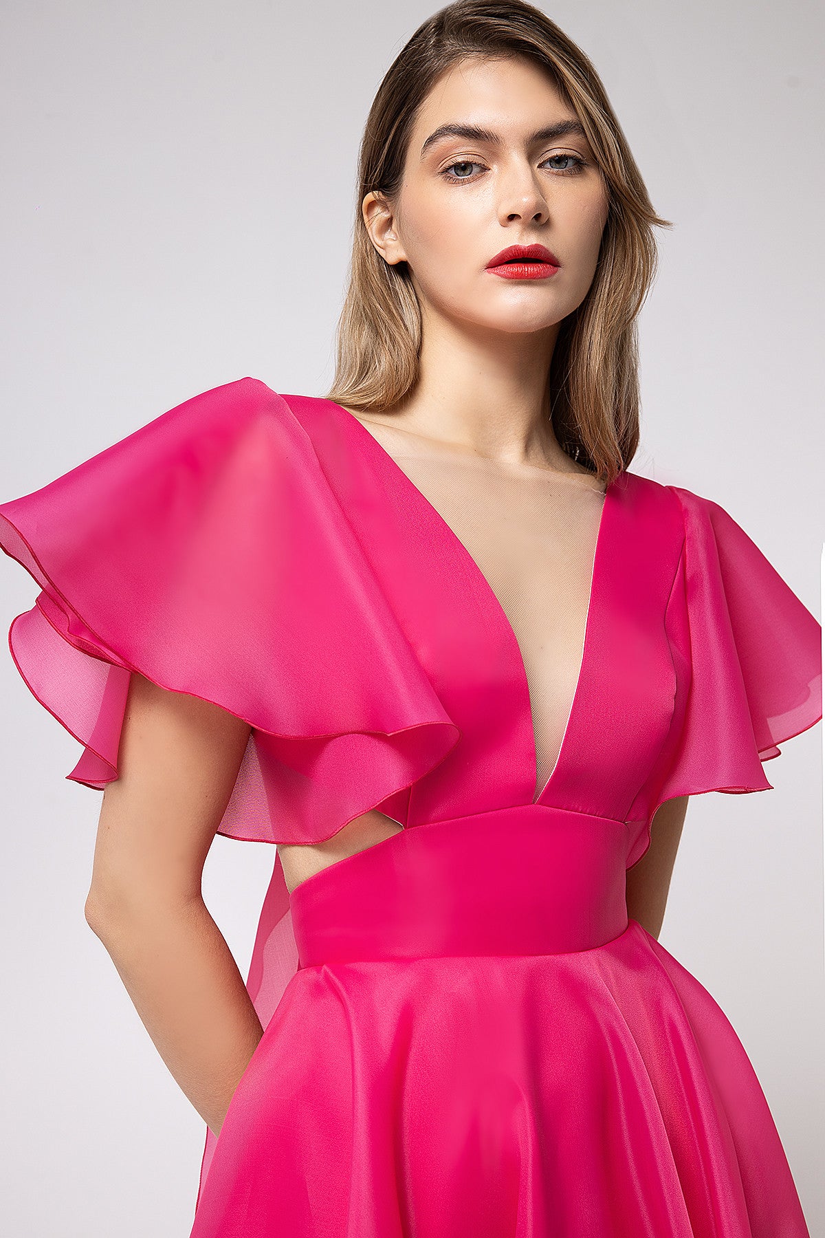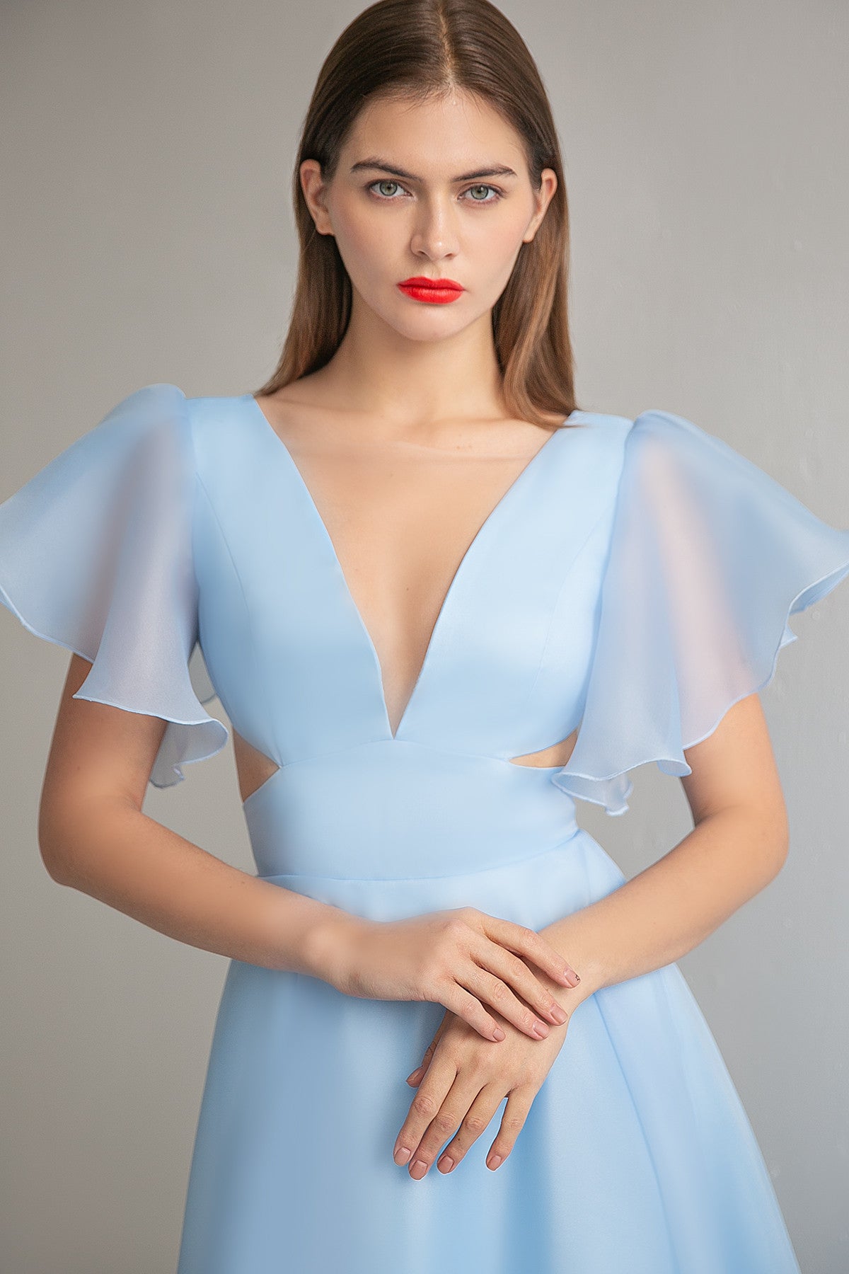 Organza Midi Plunging Neckline Cut Out Dress Eulalia