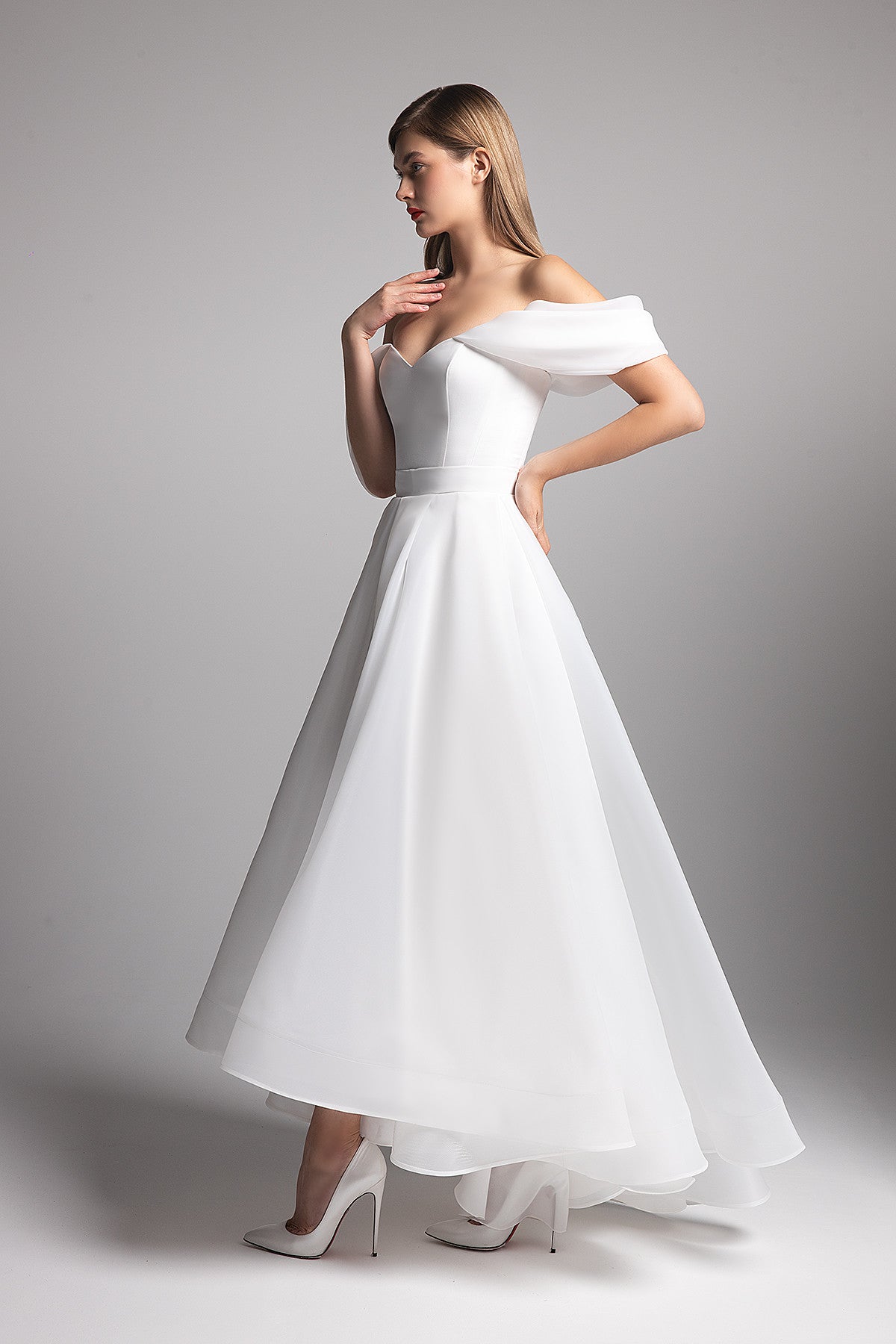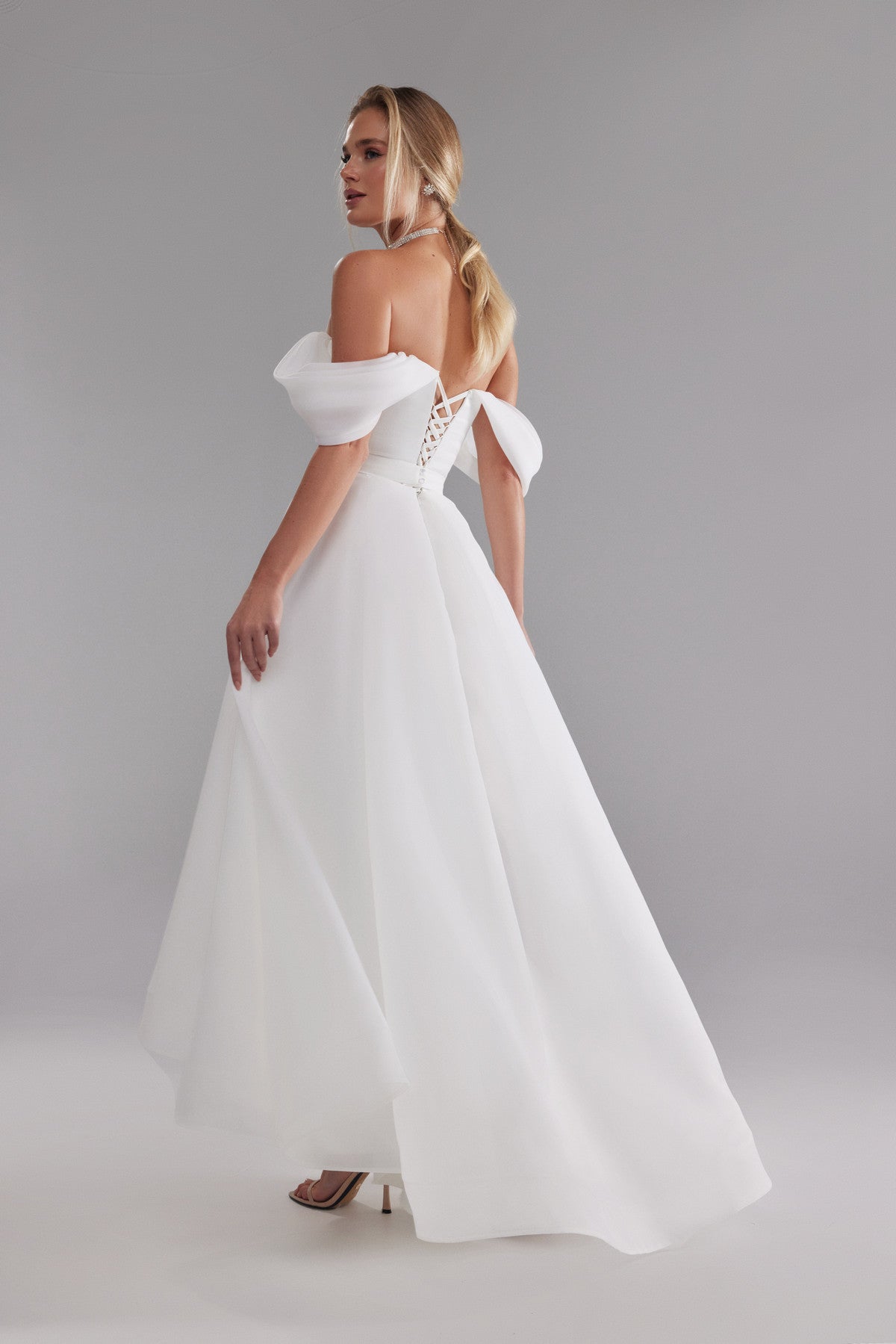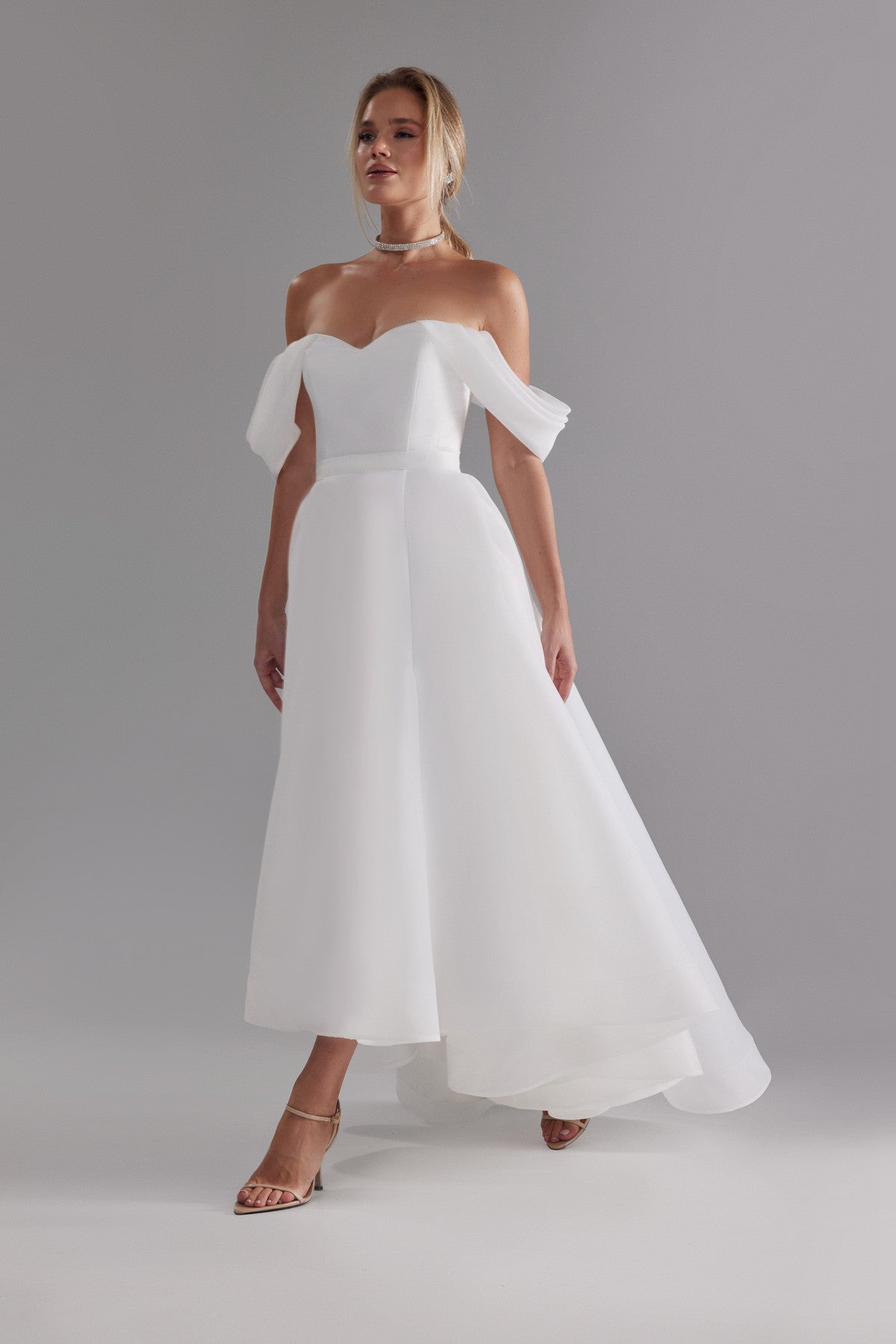 Romantic White Off-The-Shoulder Midi Dress Romilda