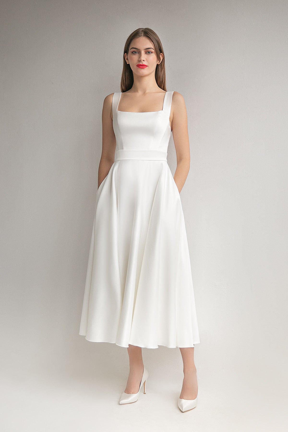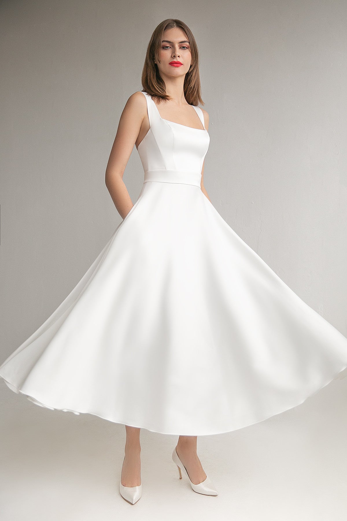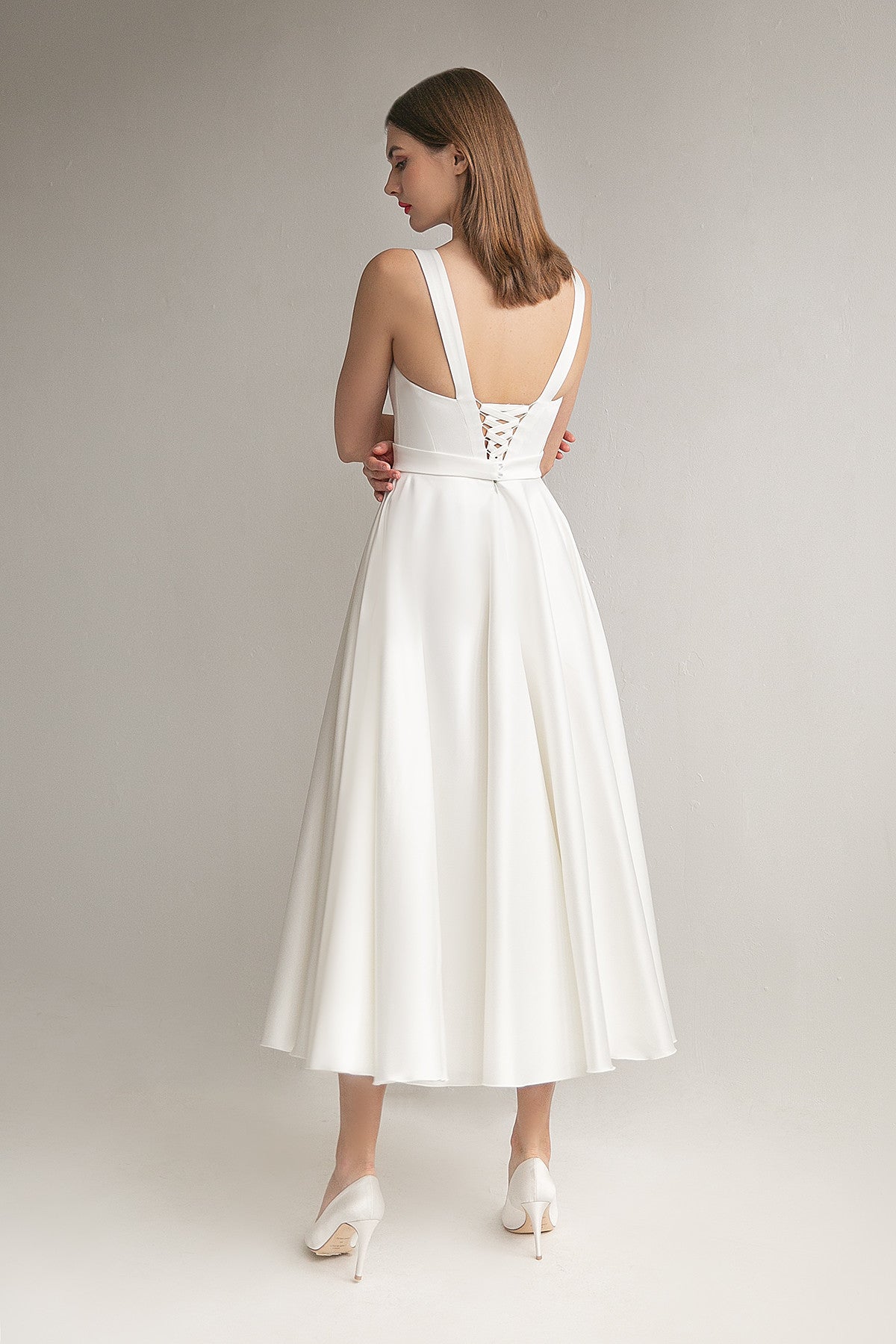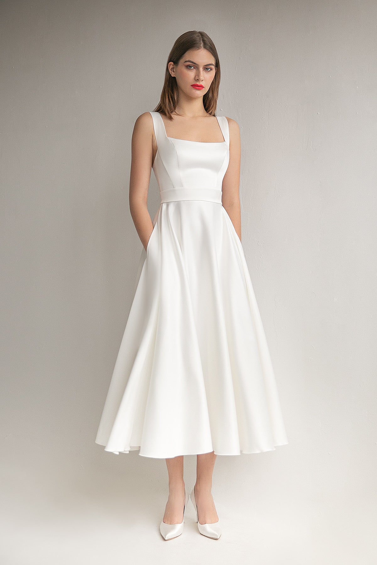 Satin A-line Silhouette Midi Wedding Dress Mila